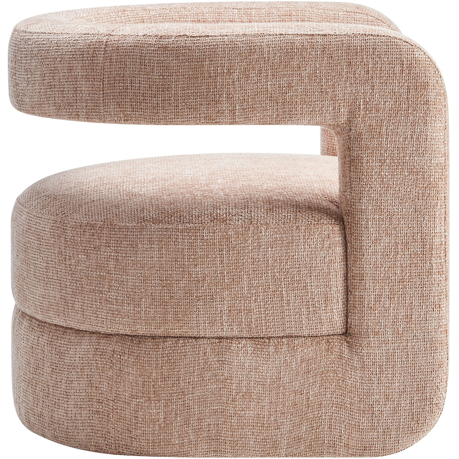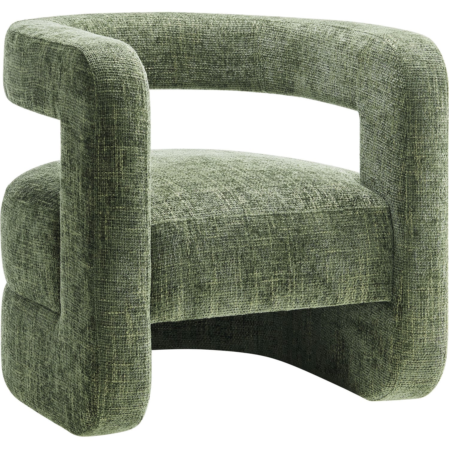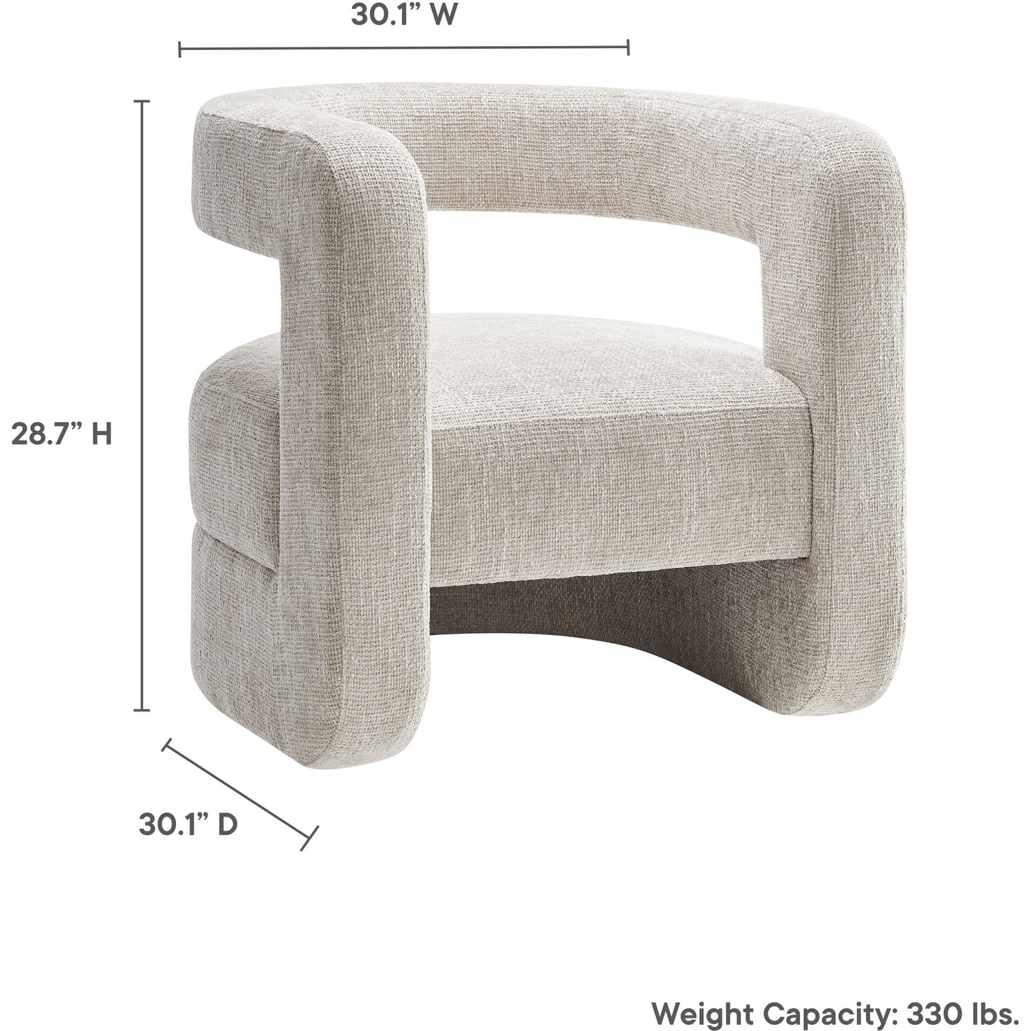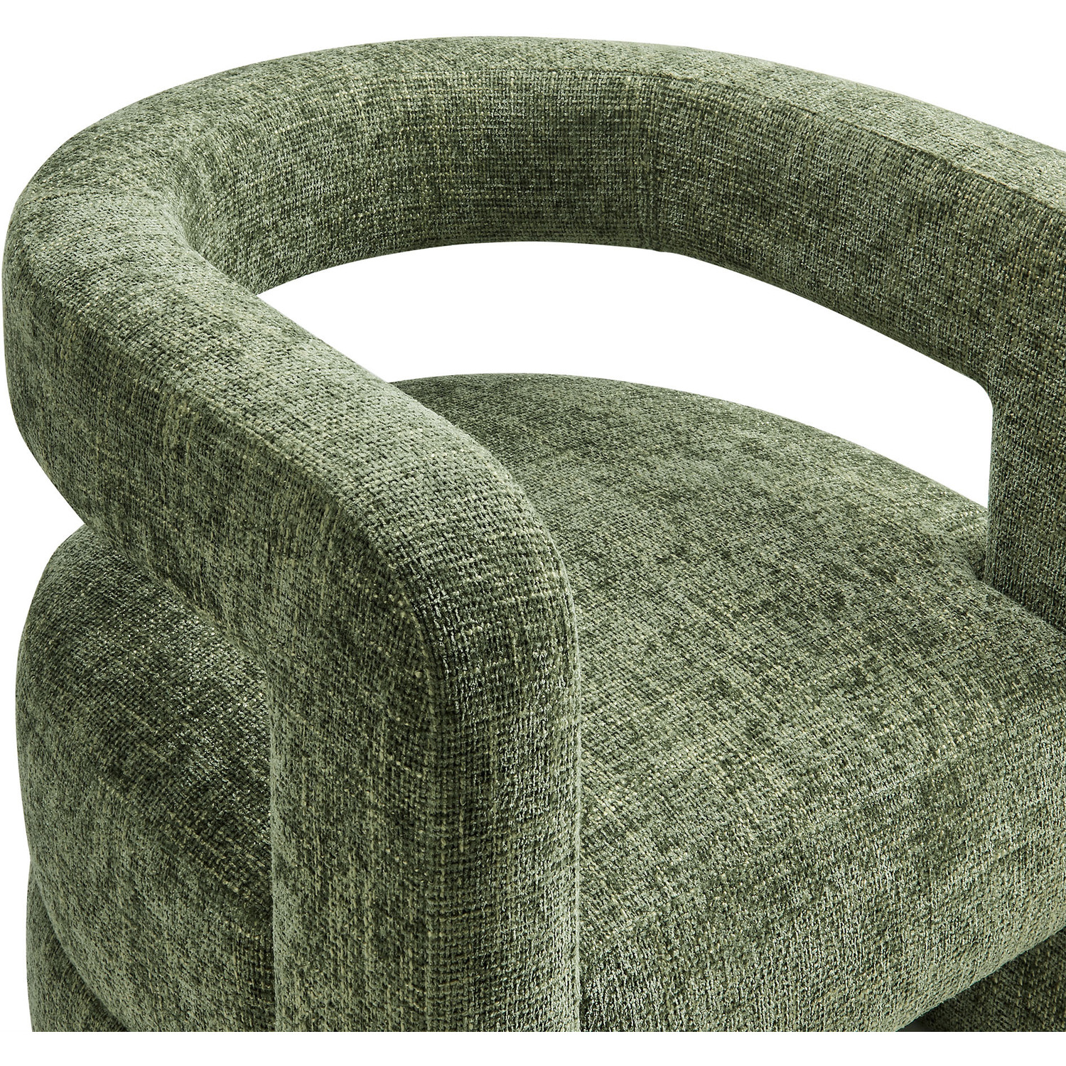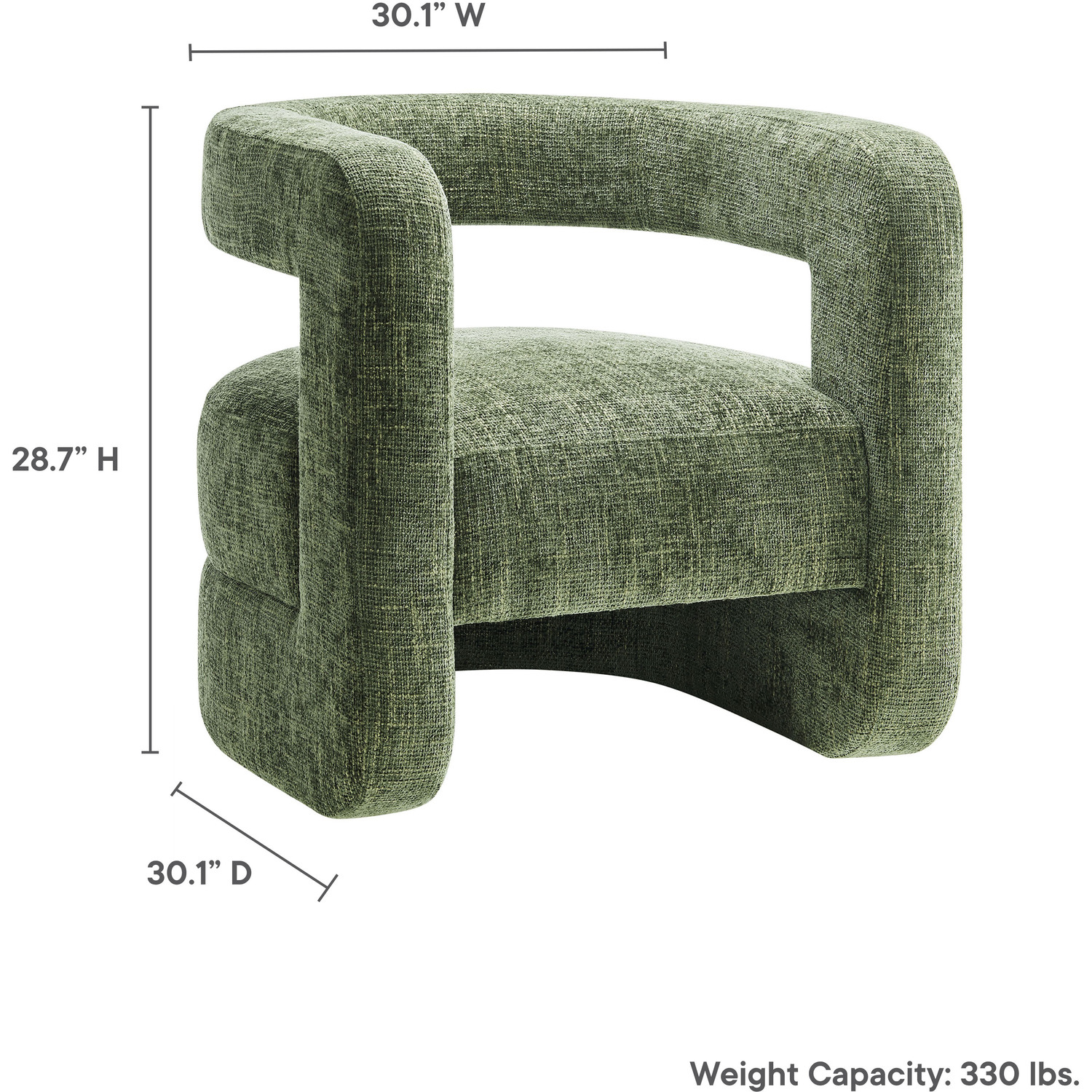 Redefine your decor with the chic and contemporary Jaylin Chenille Accent Chair. Its striking U-shaped frame makes this unique barrel chair an eye-catching addition to any space. The open-back design and thick, curved arms create a distinctive floating appearance that is both contemporary and inviting, while its plush circular seat nestles perfectly within the rounded frame. Padded with dense foam and covered in luxurious chenille fabric, this wide armchair has sinuous spring support, for a durable and cozy seating experience. Featuring non-marking foot pins that protect your floors, this round accent chair arrives fully assembled. Whether used as a bedroom accent chair, a cozy reading chair, or a living room single sofa chair, the Jaylin Chenille U Shaped Club Chair complements various decor themes with its versatile elegance. Weight Capacity: 330 lbs.Chenille Upholstery