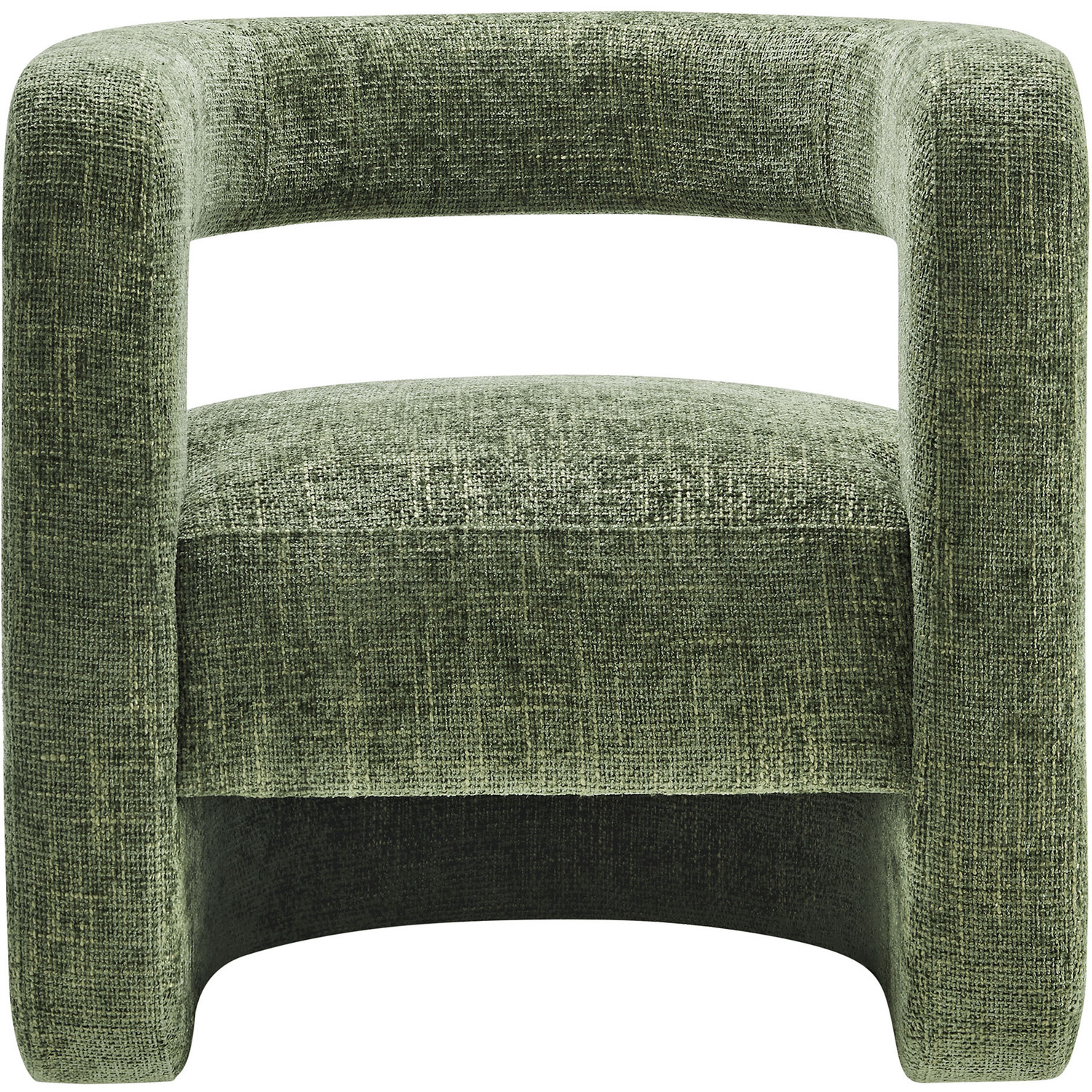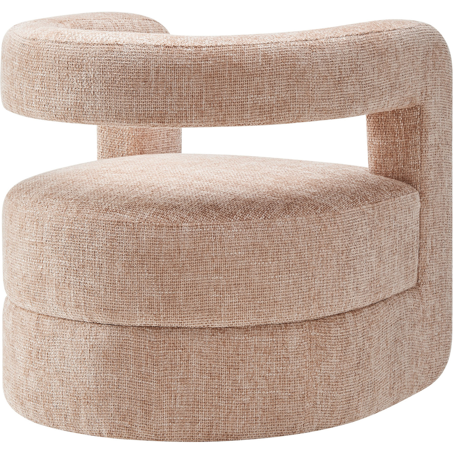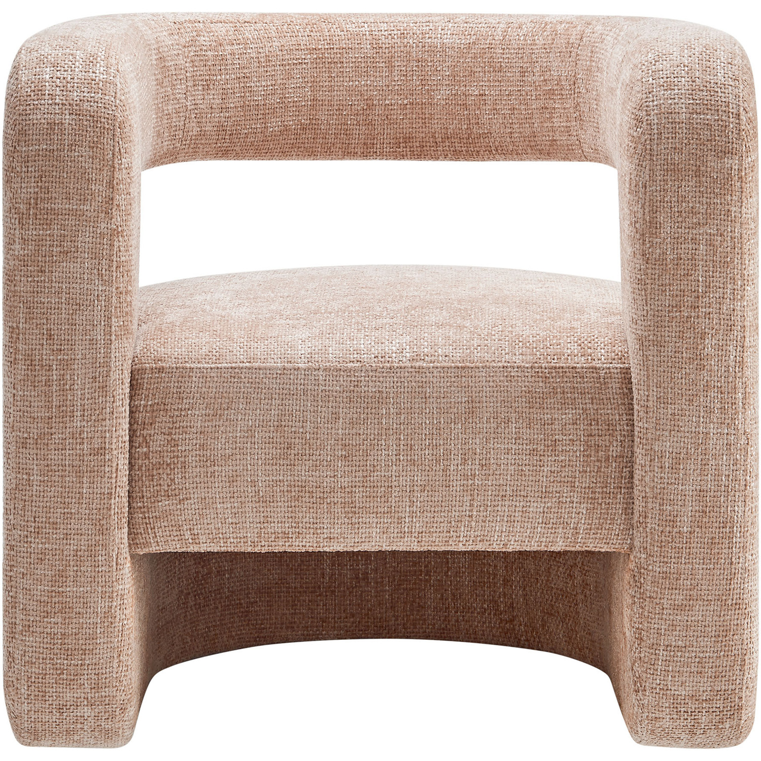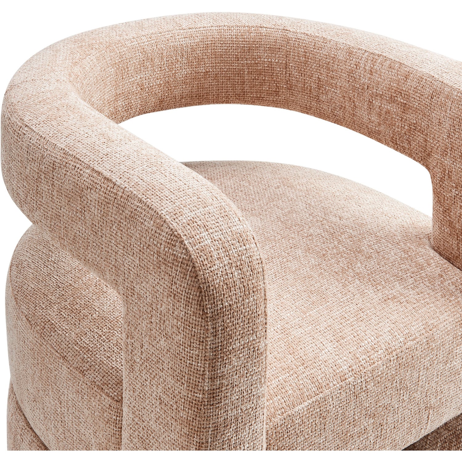 Redefine your decor with the chic and contemporary Jaylin Chenille Accent Chair. Its striking U-shaped frame makes this unique barrel chair an eye-catching addition to any space. The open-back design and thick, curved arms create a distinctive floating appearance that is both contemporary and inviting, while its plush circular seat nestles perfectly within the rounded frame. Padded with dense foam and covered in luxurious chenille fabric, this wide armchair has sinuous spring support, for a durable and cozy seating experience. Featuring non-marking foot pins that protect your floors, this round accent chair arrives fully assembled. Whether used as a bedroom accent chair, a cozy reading chair, or a living room single sofa chair, the Jaylin Chenille U Shaped Club Chair complements various decor themes with its versatile elegance. Weight Capacity: 330 lbs.Chenille Upholstery