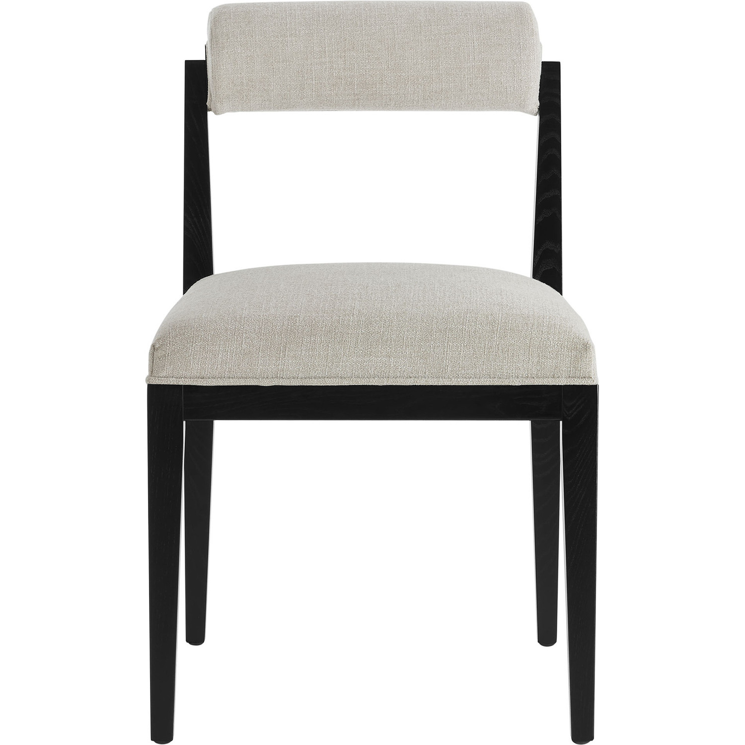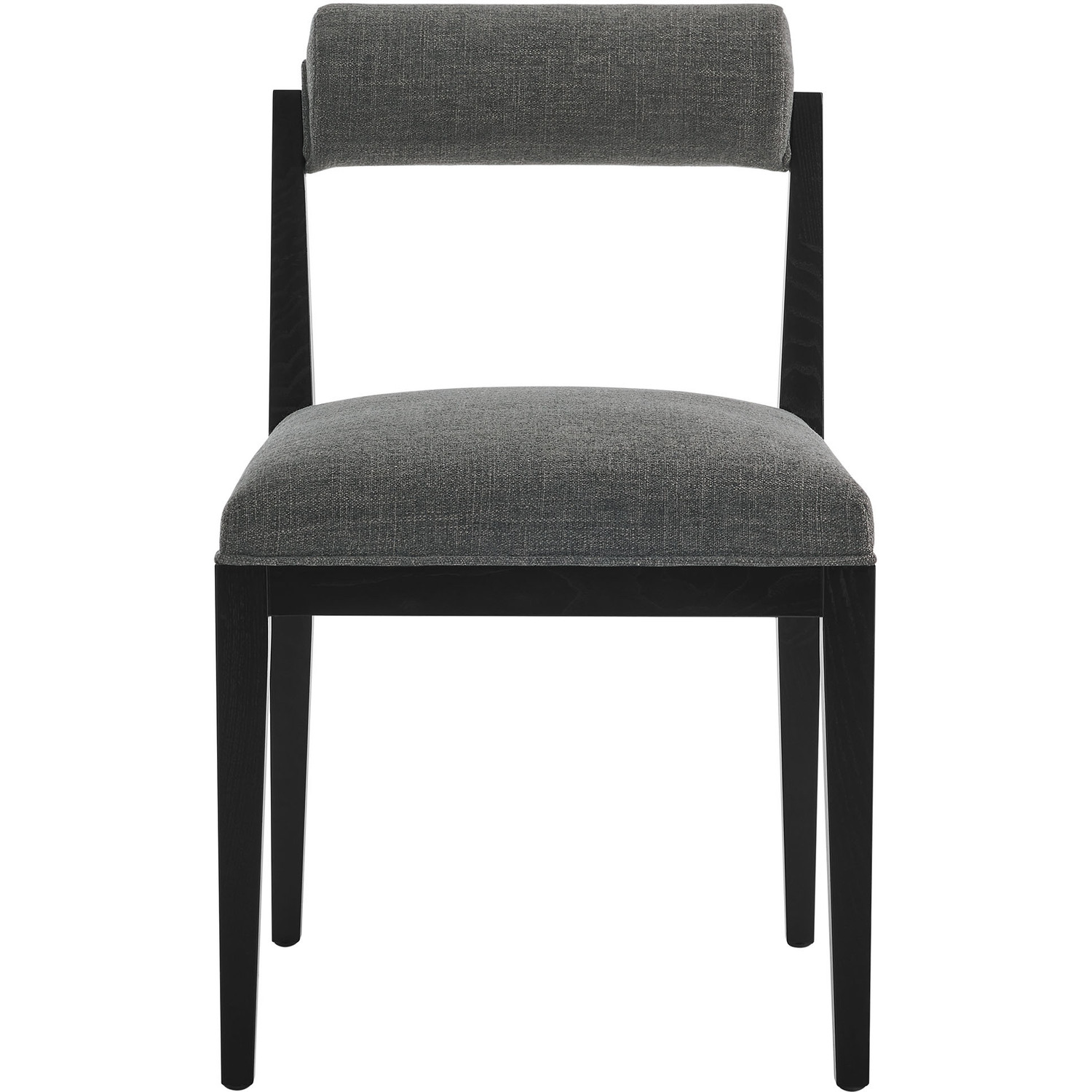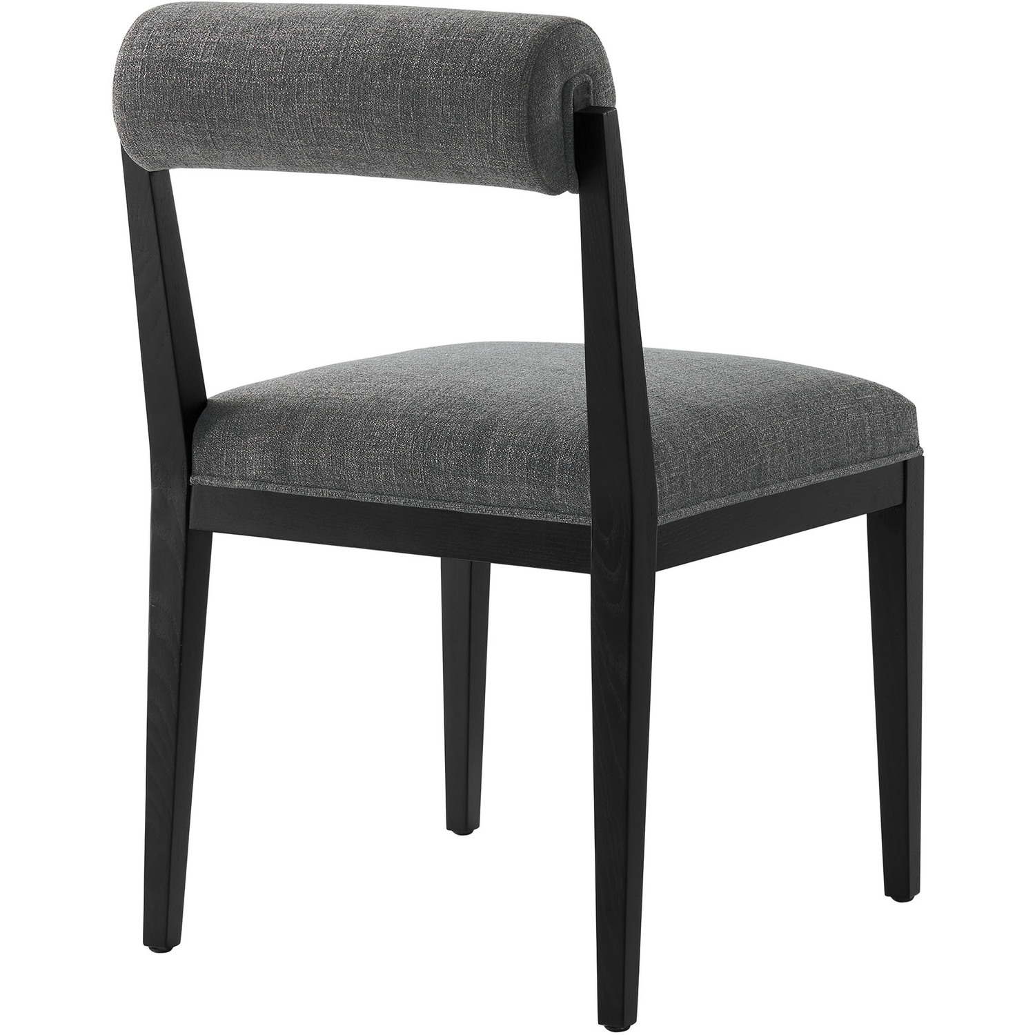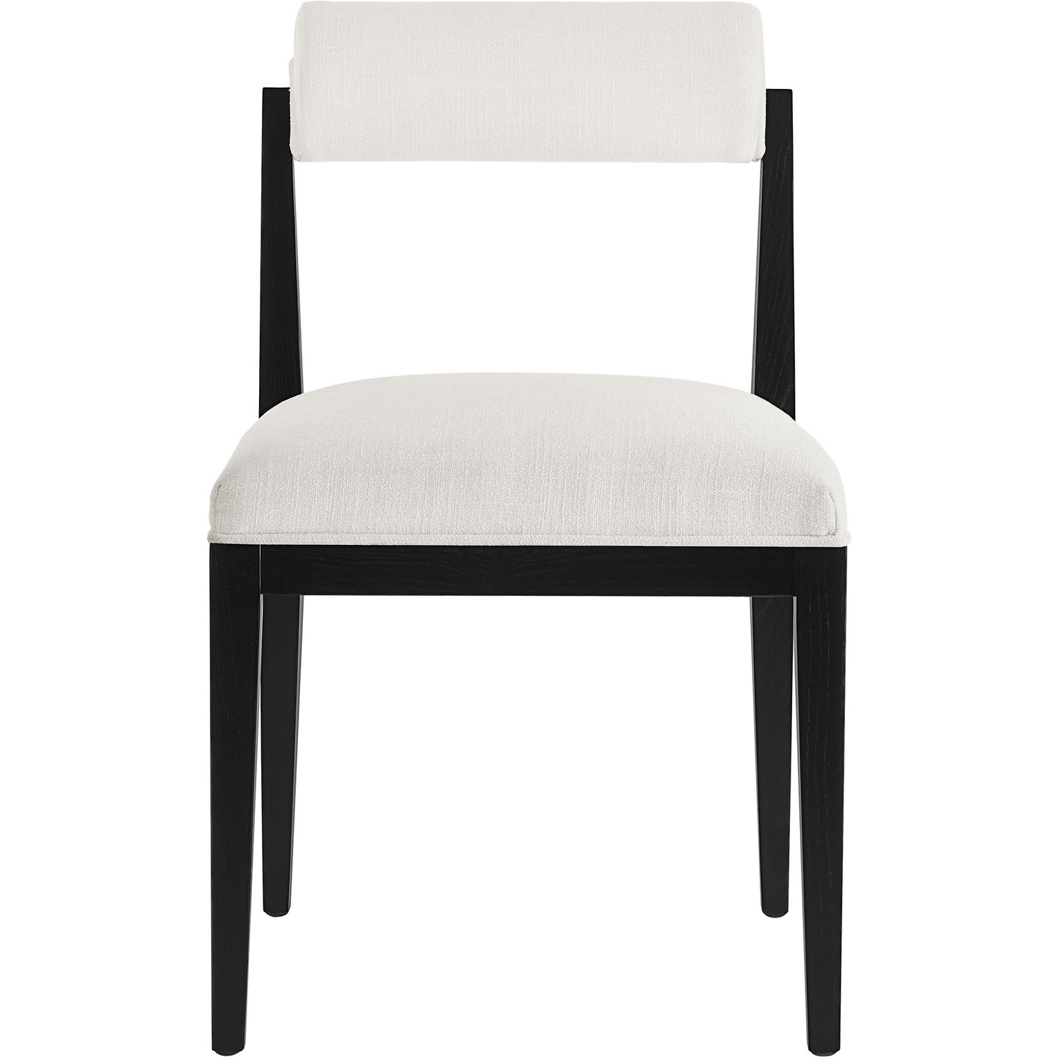 Bring the Kai Side Dining Chair into your home, a piece where bold, modern design meets plush, inviting textures. Combining chic fabric and wood, the Kai Armless Chair features sharp, angular lines and a minimalist design. It's an ideal fit for various spaces, whether as a side chair in the dining room, an accent chair in the living room, or as a stylish and comfortable kitchen chair. Built on an ash wood frame and legs, this farmhouse dining chair showcases a unique rolled backrest upholstered in premium fabric. This distinctive design element not only adds visual interest but also offers a soft, inviting texture that contrasts with the sleek lines of the wood accent chair's frame. The fixed cushion seat of this contemporary dining chair provides just the right amount of firmness for long meals and conversations. Equipped with non-marking foot pins to protect your floors, the Kai Fabric Dining Chair requires no assembly and is ready to use straight out of the box. Weight Capacity: 330 lbs.Ash Wood Frame and Legs