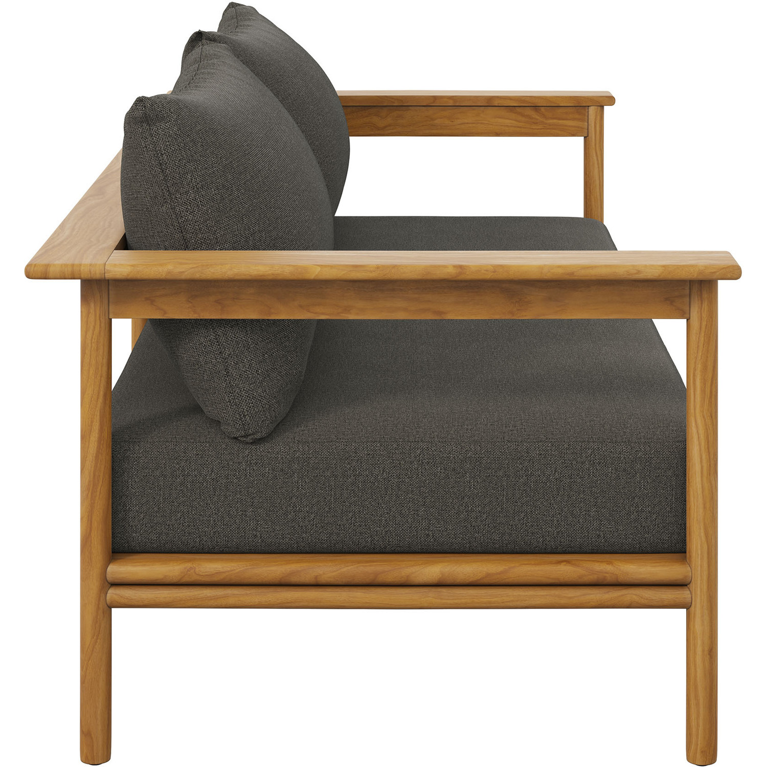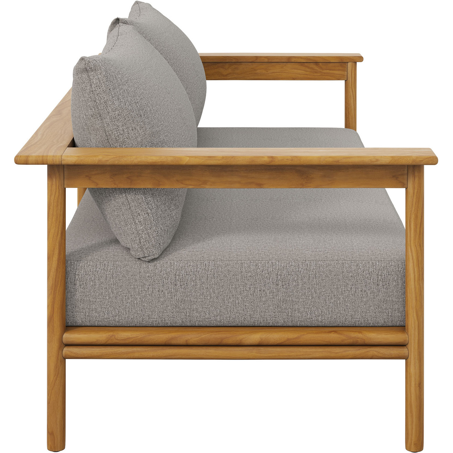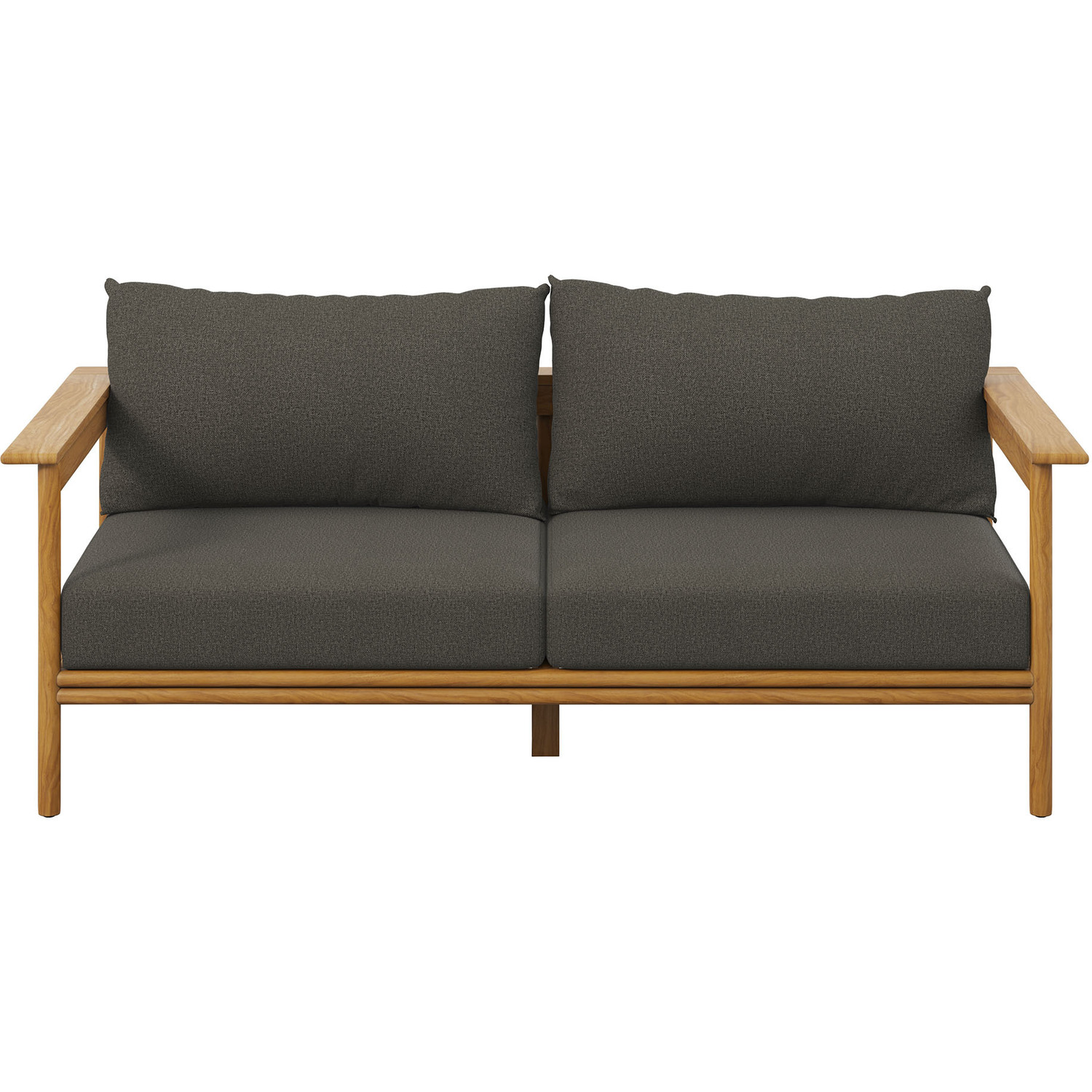 Enjoy the flexibility and charm of the Wren Teak Wood Outdoor Sofa, designed for a variety of outdoor settings. This beautifully crafted 2 seater patio couch features a teak wood frame renowned for its all-weather qualities and timeless charm. The plush, removable cushions, wrapped in premium Sunproof fabric, offer superior comfort and excellent resistance to the elements, keeping this patio sofa attractive season after season. With plastic floor glides to protect your surfaces and make repositioning easy, this outdoor sofa couch is as practical as it is stylish. Use it on its own as a small balcony couch or pair it with other pieces from the Wren teak patio furniture collection to instantly enhance your outdoor setup. Assembly Required. Outside Couch Weight Capacity: 800 lbs.Solid Teak Wood