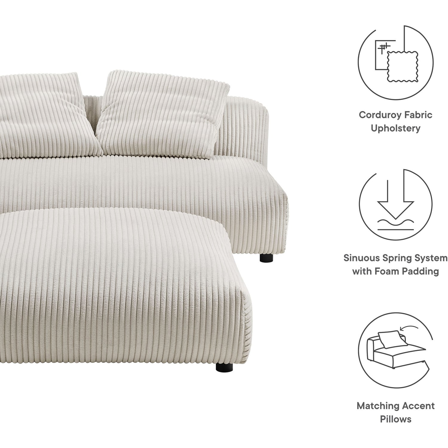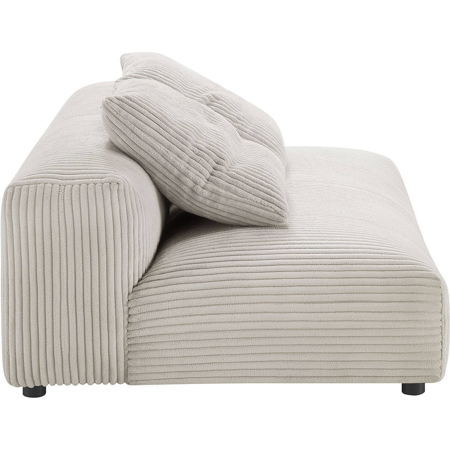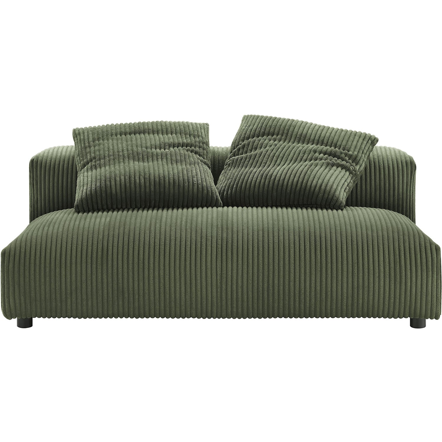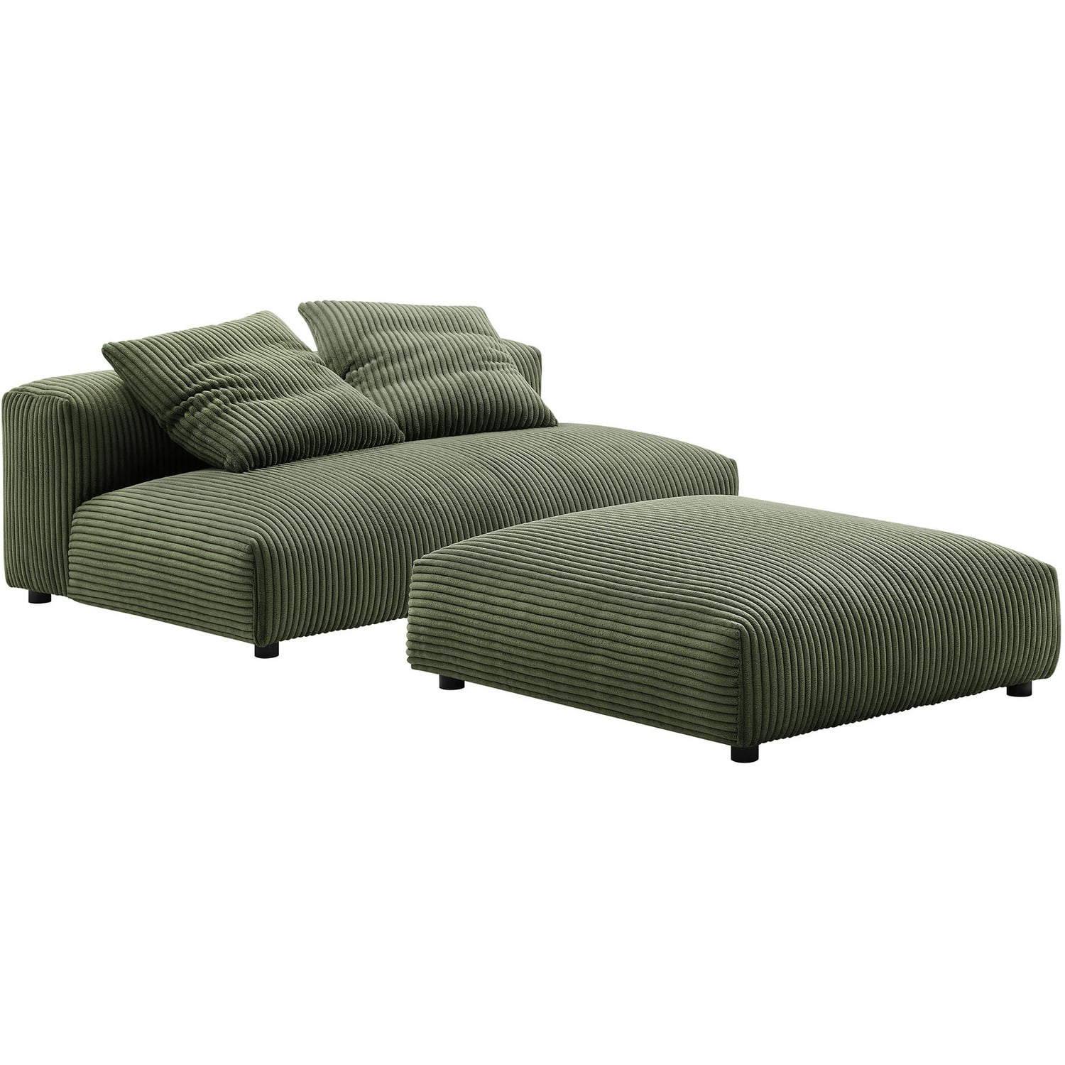 Revel in ultimate comfort and modern style with the Solace Modular Corduroy Armless Loveseat and Ottoman Set. This oversized corduroy armless loveseat with a matching ottoman is perfect for any living room, offering endless flexibility. Its modular furniture design allows you to change the arrangement to suit the needs of the moment or expand your seating by adding more pieces in the future. Featuring a sturdy frame, dense foam padding, and a sinuous spring support system, the Solace Small Sofa Couch grants a premium seating experience. The comfy corduroy upholstery adds a cozy, casual vibe, making this armless two-seater sofa a perfect addition to any living space or lounge area. Equipped with non-marking plastic glides and complementing accent pillows, this loveseat sectional is both stylish and practical. With no assembly required, you can enjoy immediate relaxation with this loveseat sofa with ottoman set. Loveseat Weight Capacity: 800 lbs., Ottoman Weight Capacity: 500 lbs.Modular Armless Loveseat and Ottoman Set