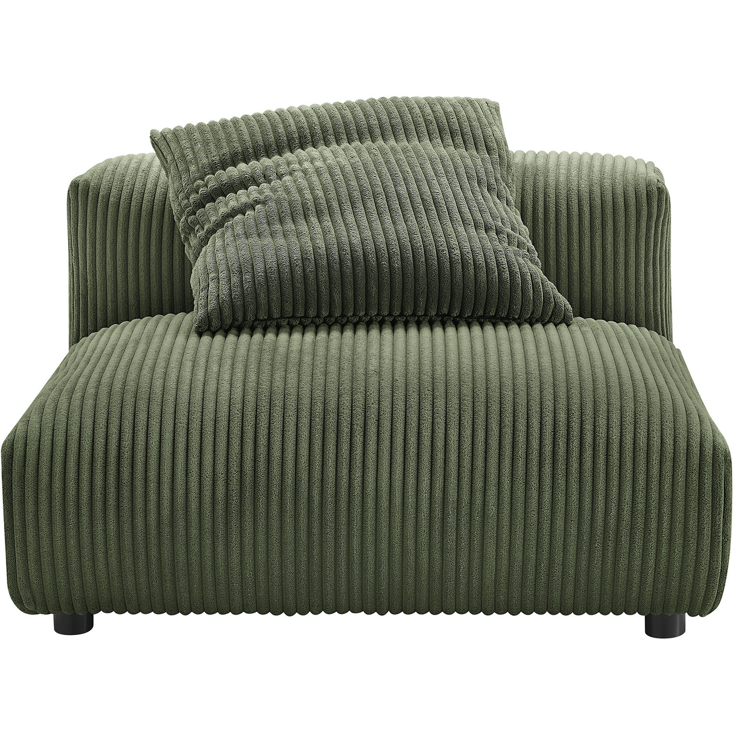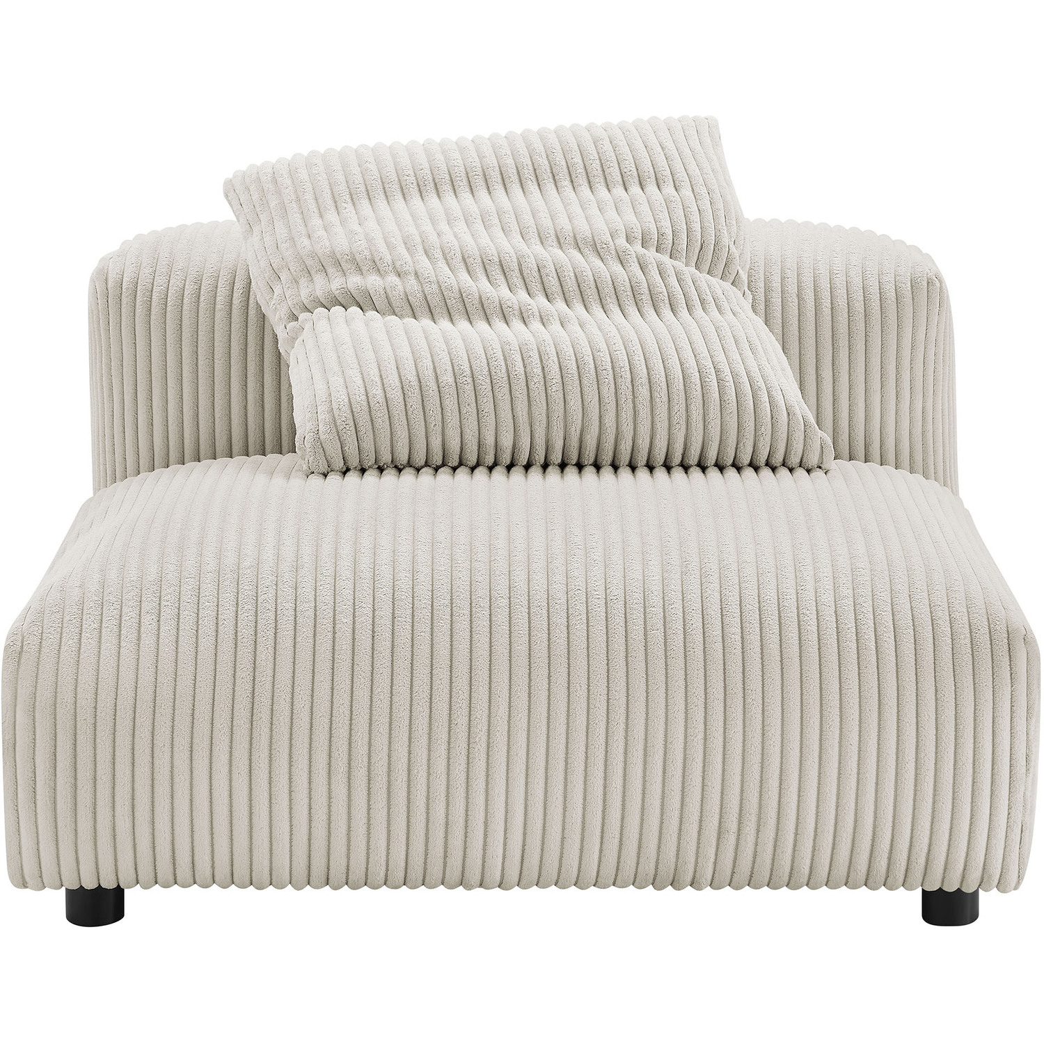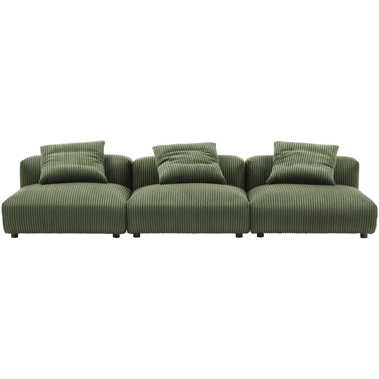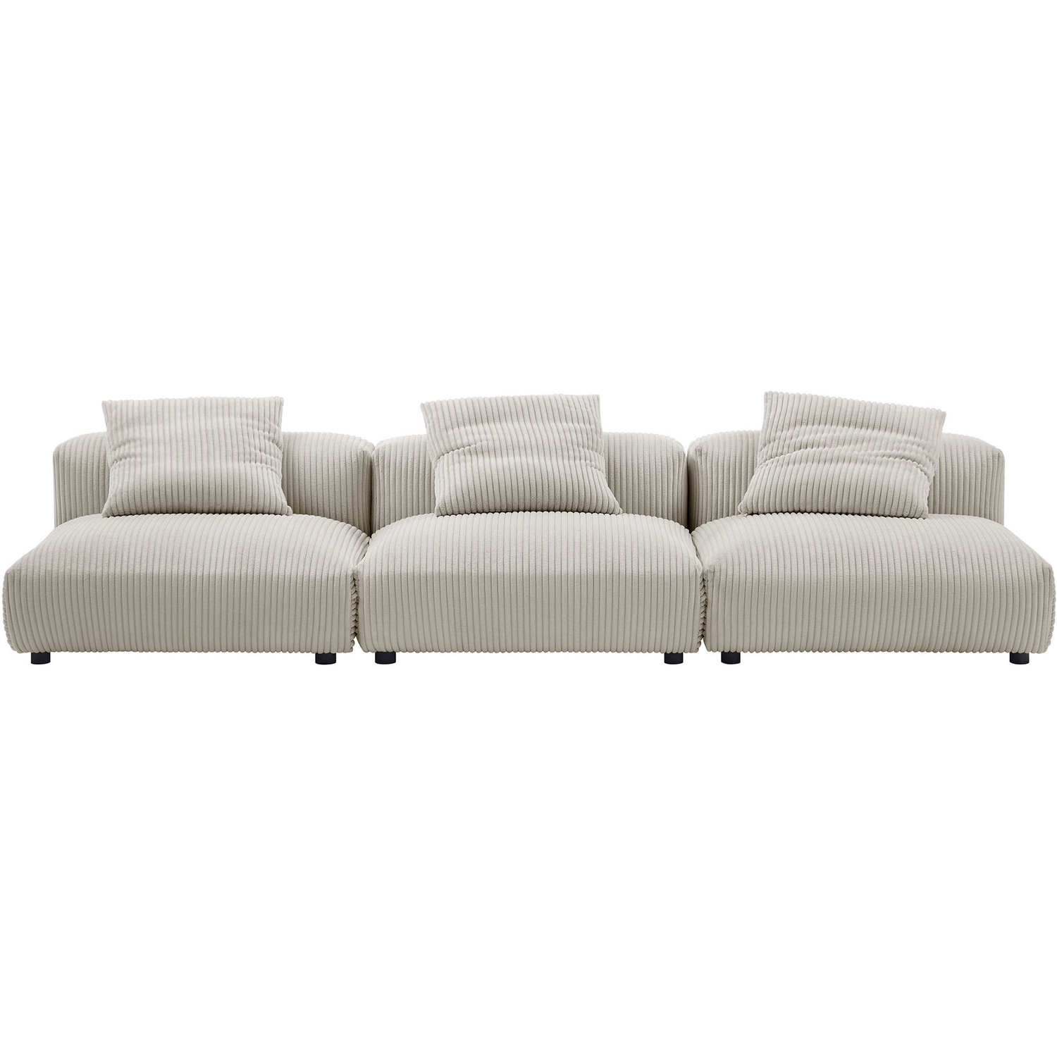 Revel in ultimate comfort and modern style with the Solace Modular Corduroy 3-Seater Sofa. This oversized corduroy sofa is perfect for any living room, offering endless flexibility. Its modular furniture design allows you to change the arrangement to suit the needs of the moment or expand your seating by adding more pieces in the future. Featuring a sturdy frame, dense foam padding, and a sinuous spring support system, the Solace 3-Piece Sofa grants a premium seating experience. The comfy corduroy upholstery adds a cozy, casual vibe, making this armless sectional sofa a perfect addition to any living space or lounge area. Equipped with non-marking plastic glides and complementing accent pillows, this armless modular couch is both stylish and practical. With no assembly required, you can enjoy immediate relaxation with this 3 piece living room set. Set Includes: 3 Armless Chairs3-Piece Modular Sofa