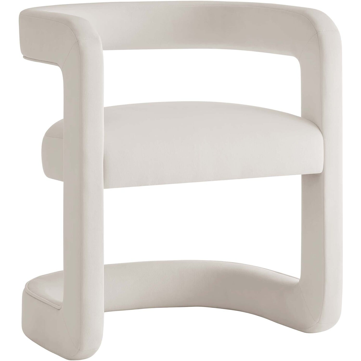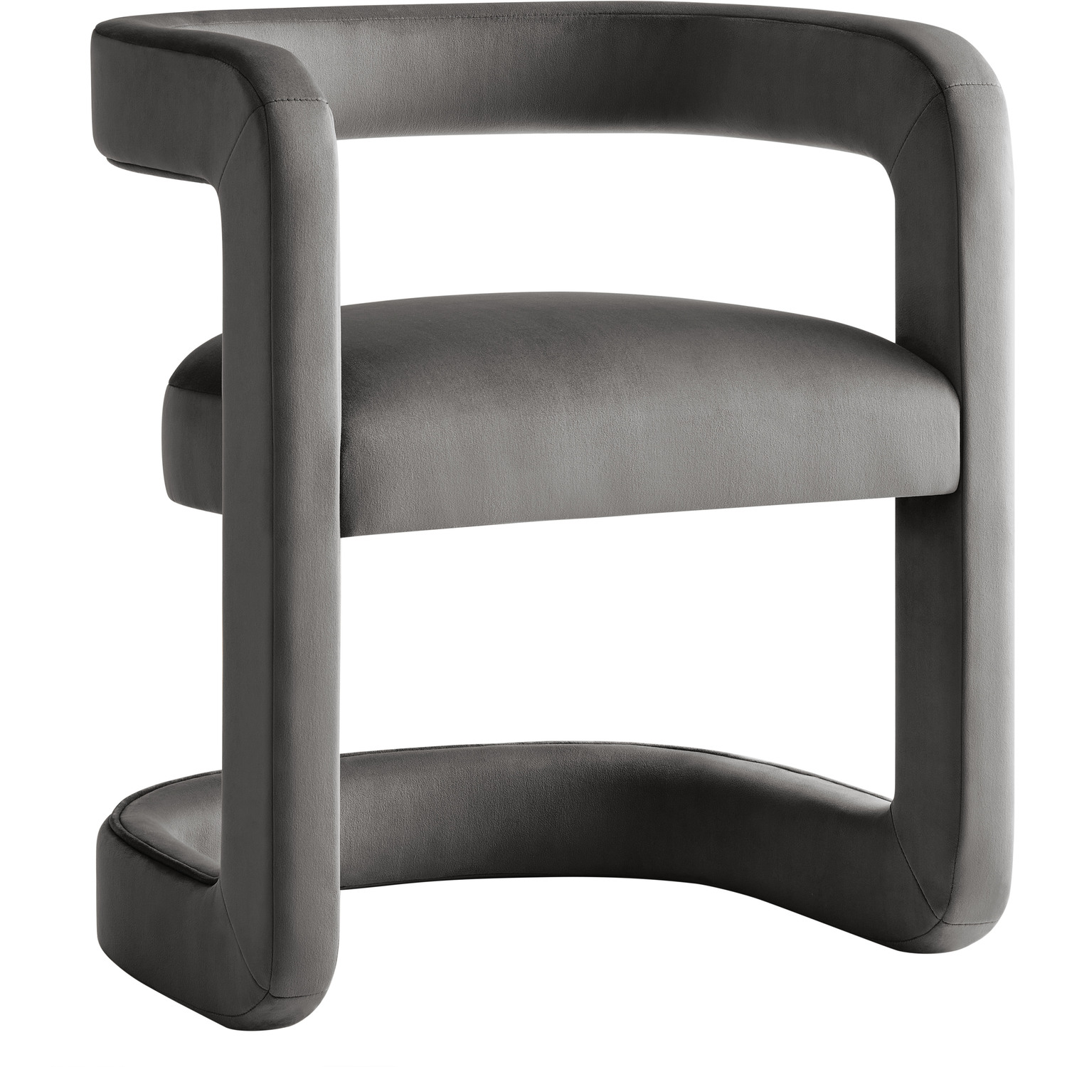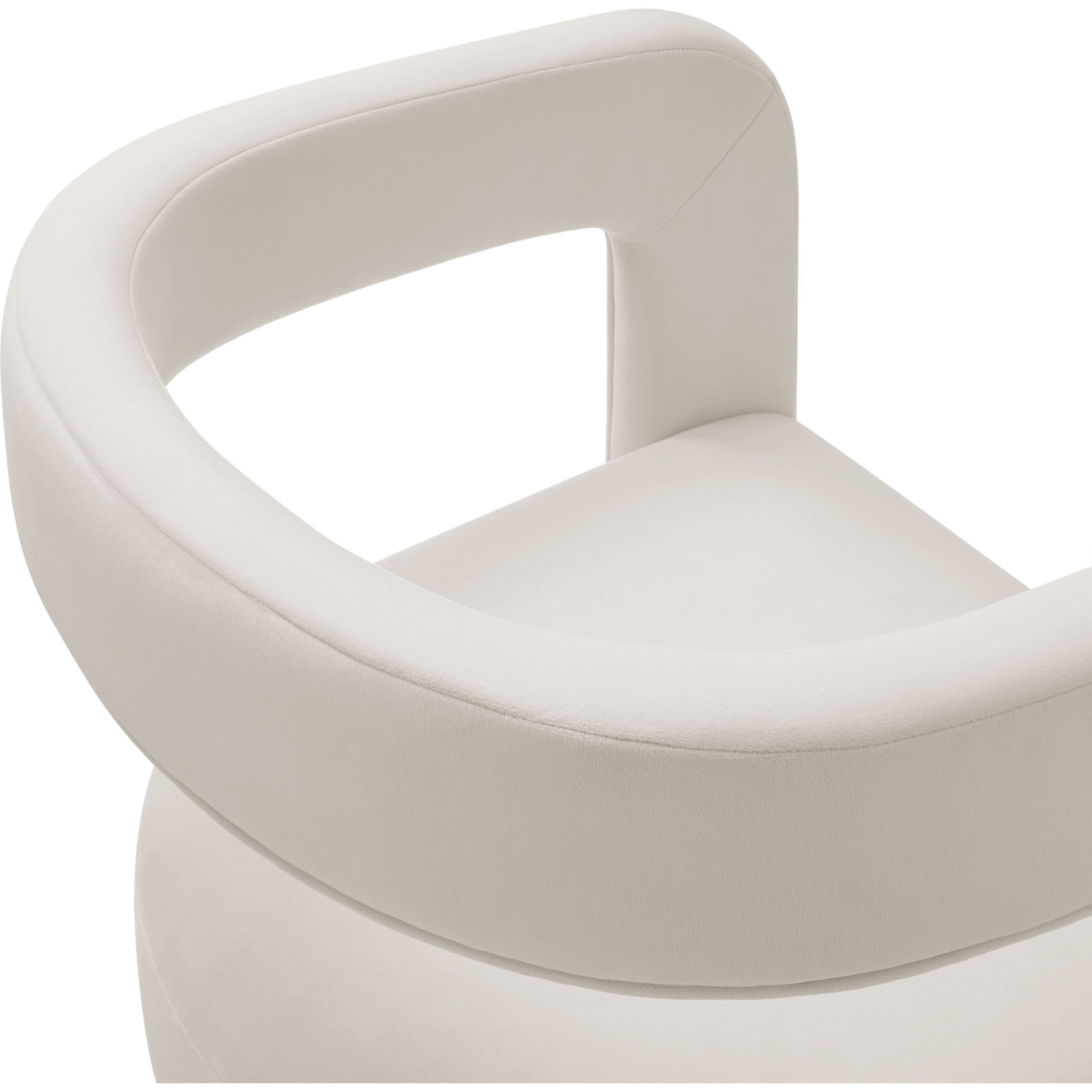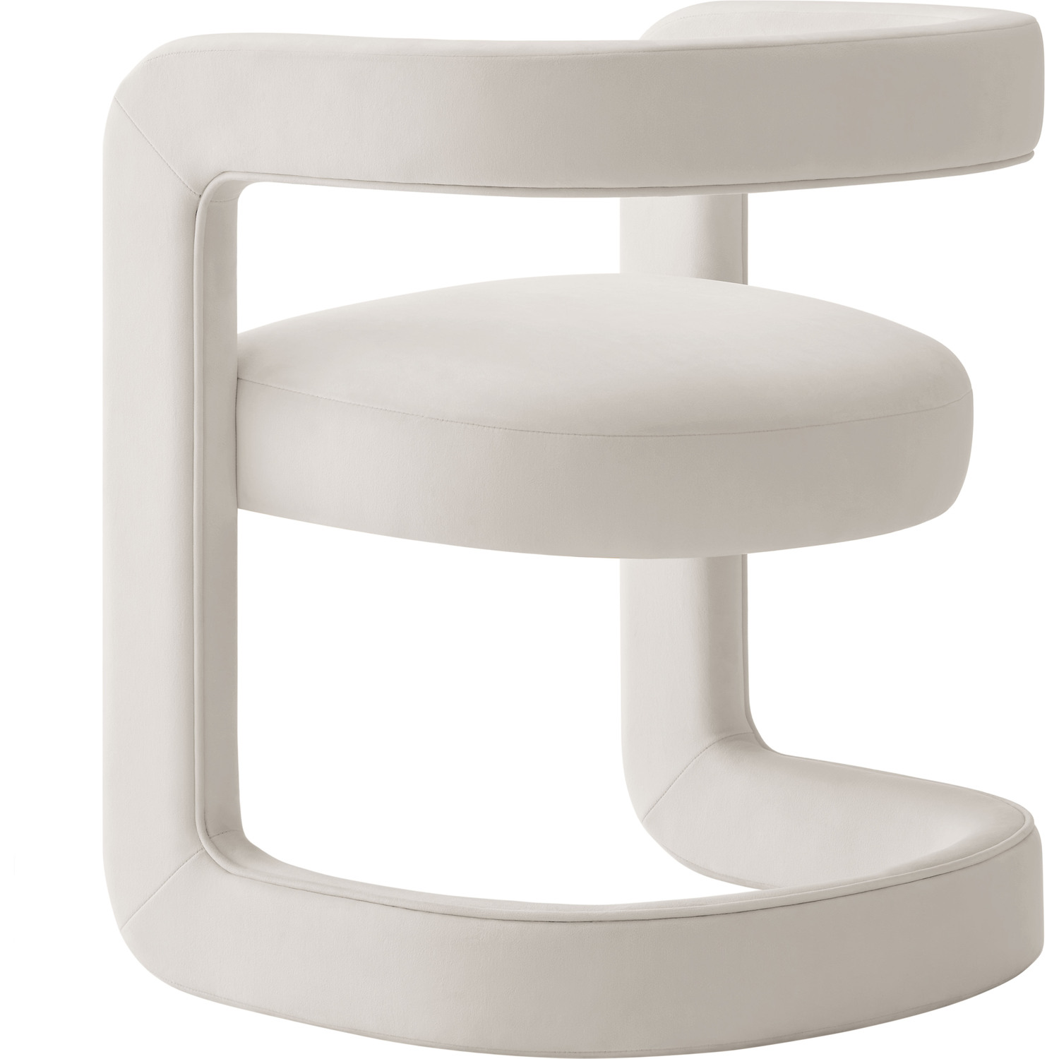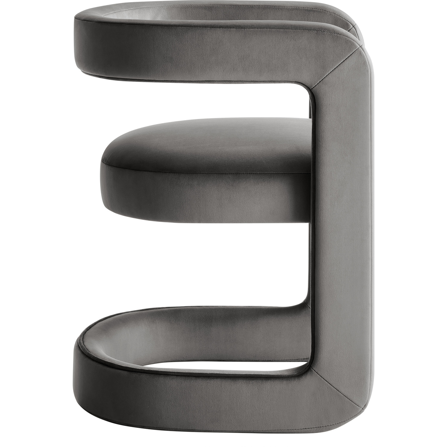 Lift the ambiance of your decor with the Winslow Performance Velvet Barrel Dining Chair. Its distinctive curved frame and supportive, open backrest create a unique silhouette that is visually pleasing and inviting. Crafted with a solid plywood foundation and completely draped in stain-resistant performance velvet upholstery, this kitchen and dining room chair offers a comforting, contoured seat, becoming a standout feature in any room. The fixed seat and cushion, padded in dense foam, add to the stylish allure, promising a sleek, uninterrupted line. Set upon non-marking plastic foot pins, the Winslow Velvet Dining Chair protects your flooring from scuffs and scratches. This barrel back dining chair is not just a seat but a beautiful addition to your home decor, perfect for adorning your dining room as a velvet dining chair, serving as a cozy reading nook chair, or adding an air of modern sophistication as a vanity chair. The Winslow Open Back Velvet Dining Chair invites you to sit down and stay awhile. Weight Capacity: 331 lbs.Barrel Dining Chair