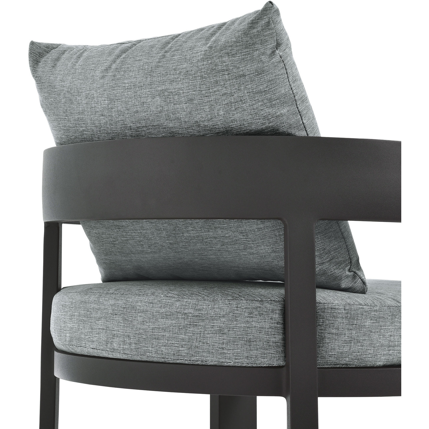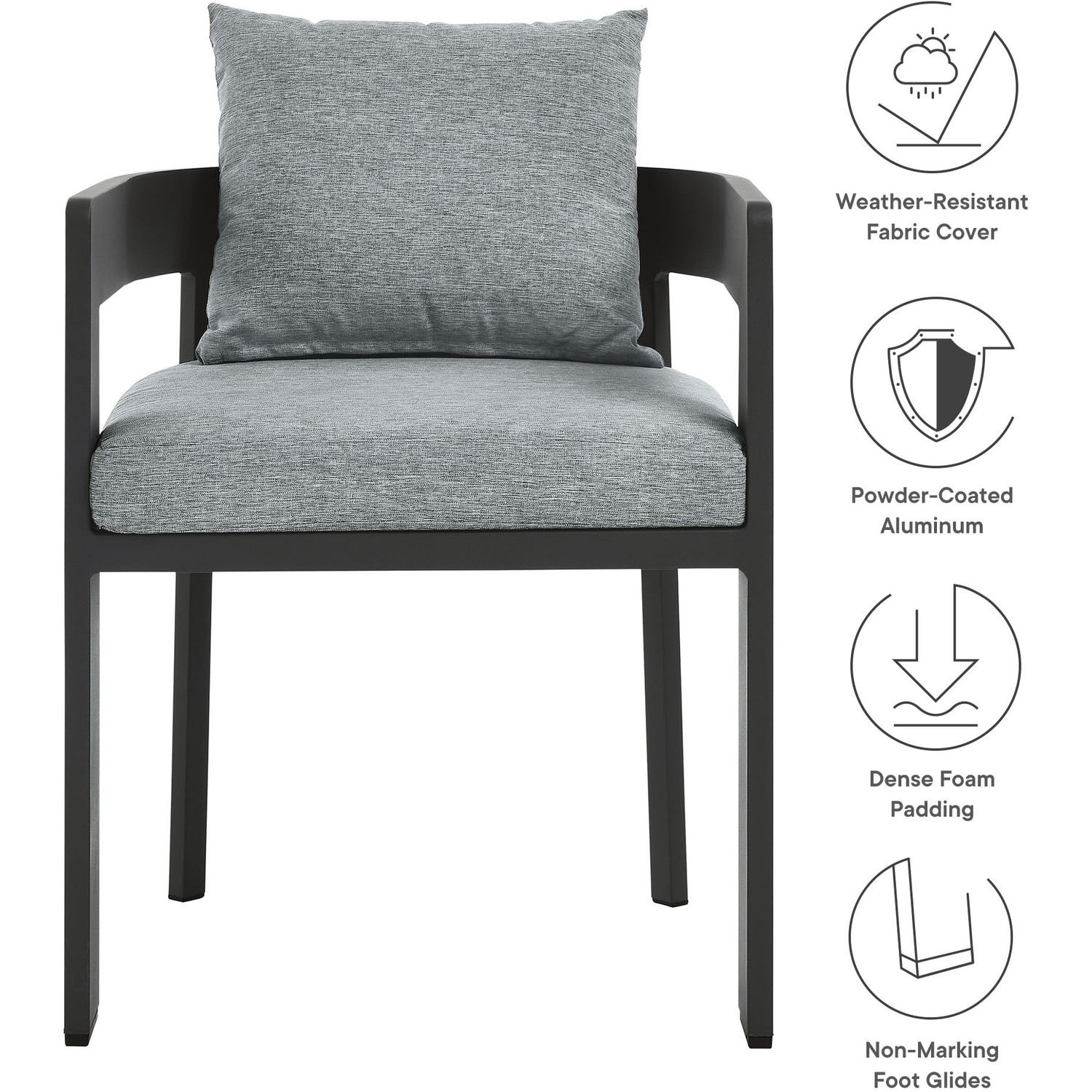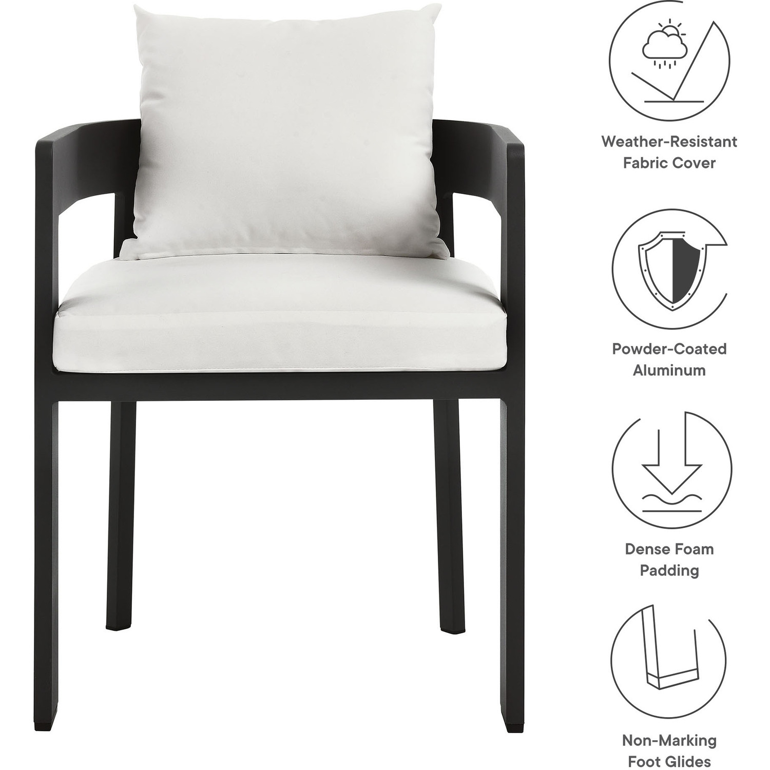 Enliven your alfresco spaces with the Tahoe Aluminum Outdoor Patio Dining Chair. This modern outdoor backyard chair is constructed with well-crafted, durable powder-coated aluminum, dispensing contemporary elegance in your outdoor dining spaces. Featuring a stylish curved back, the Tahoe Aluminum Patio Chair is designed with removable, stain-resistant cushions filled with dense foam padding and covered in sunproof, water-resistant fabric. Whether paired with one of the Tahoe outdoor dining tables or used with other patio tables, this curved open back dining chair is low maintenance and high performing, providing a perfect spot to savor morning coffee or enjoy evening dinners. Equipped with non-marking foot glides to protect your deck or patio floor, the Tahoe Patio Accent Chair comes fully assembled. Weight Capacity: 300 lbs.Powder-Coated Aluminum