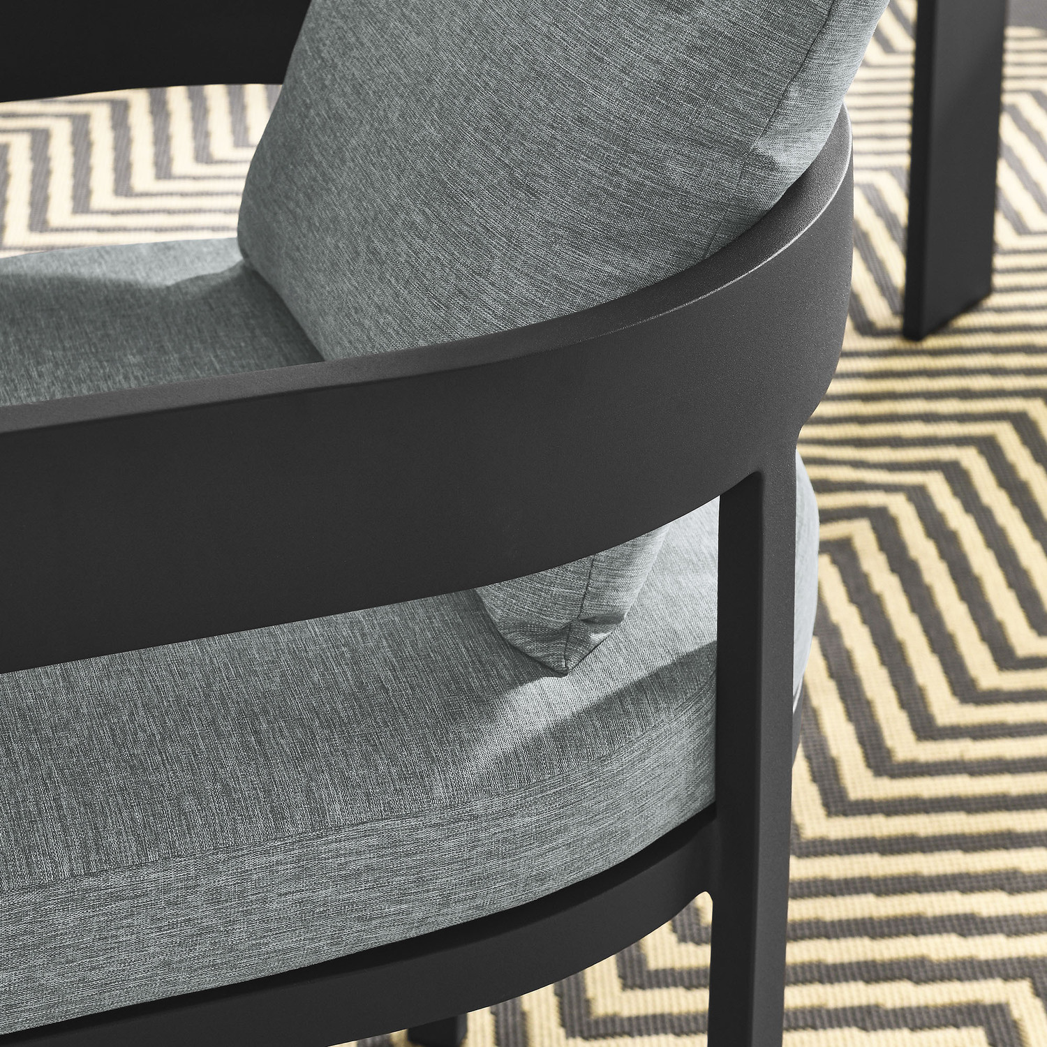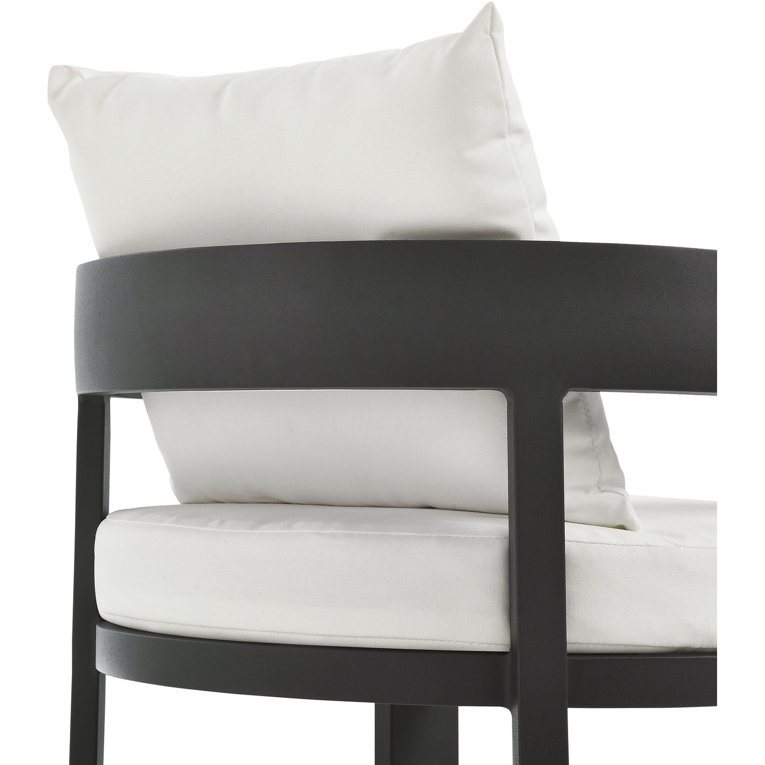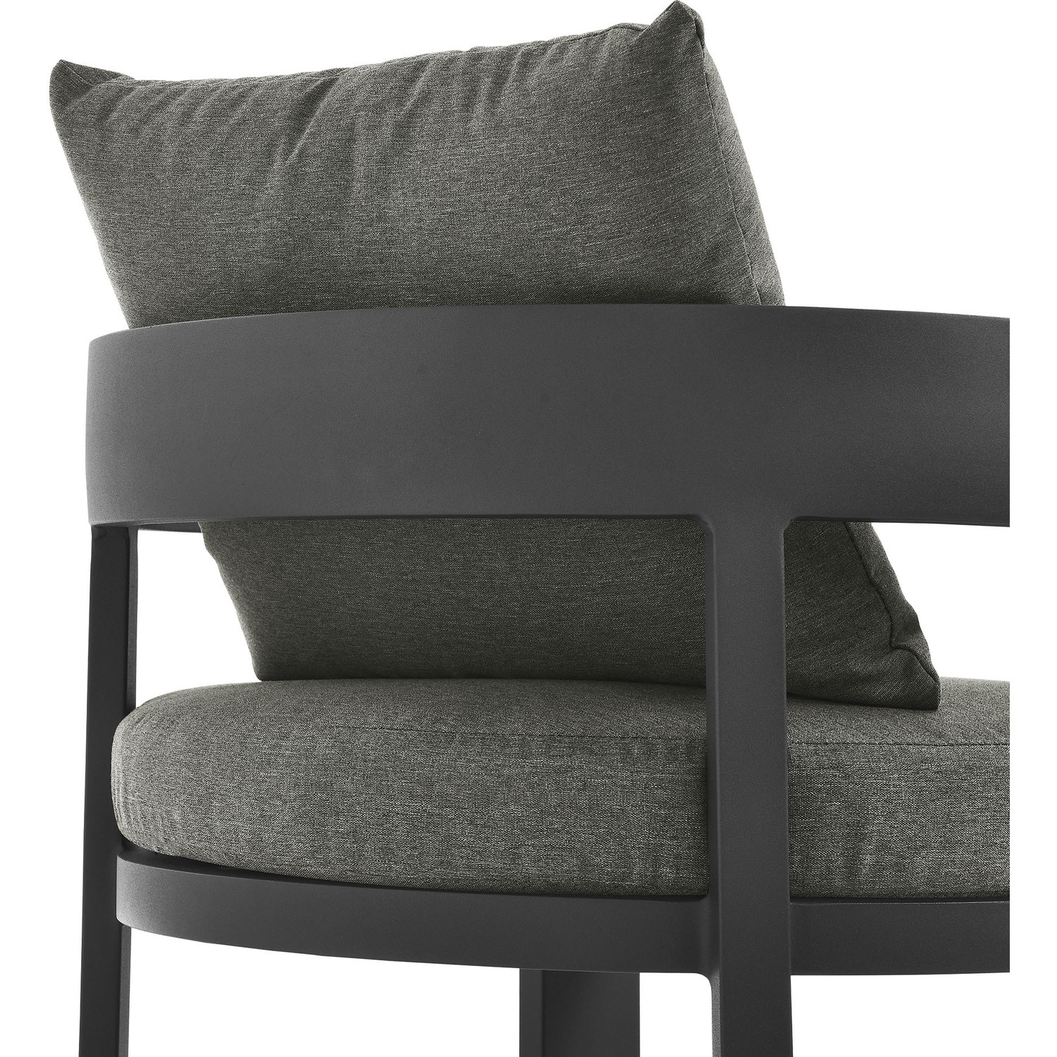 Enliven your alfresco spaces with the Tahoe Aluminum Outdoor Patio Dining Chair. This modern outdoor backyard chair is constructed with well-crafted, durable powder-coated aluminum, dispensing contemporary elegance in your outdoor dining spaces. Featuring a stylish curved back, the Tahoe Aluminum Patio Chair is designed with removable, stain-resistant cushions filled with dense foam padding and covered in sunproof, water-resistant fabric. Whether paired with one of the Tahoe outdoor dining tables or used with other patio tables, this curved open back dining chair is low maintenance and high performing, providing a perfect spot to savor morning coffee or enjoy evening dinners. Equipped with non-marking foot glides to protect your deck or patio floor, the Tahoe Patio Accent Chair comes fully assembled. Weight Capacity: 300 lbs.Powder-Coated Aluminum
