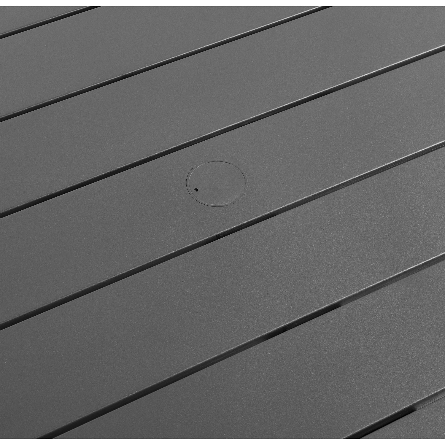 Enliven your alfresco spaces with the Tahoe Outdoor Patio Aluminum Dining Table. This modern, rectangular outdoor dining table is constructed with well-crafted, durable powder-coated aluminum, dispensing contemporary elegance in your outdoor dining space. Durable and weather-resistant, the Tahoe 83" Large Patio Table features a low-maintenance design with a slatted top and a practical umbrella hole that includes a fitted lid, perfect for year-round functionality. Whether paired with the Tahoe outdoor dining chairs or used with other patio chairs, this outdoor table with umbrella hole comfortably seats up to 8 people and provides the perfect spot to enjoy meals, host gatherings, or entertain guests. Equipped with non-marking foot glides to protect your deck or patio floor, the Tahoe 8 Person Dining Table comes with easy-to-follow assembly instructions. Weight Capacity: 220.5 lbs.Powder-Coated Aluminum