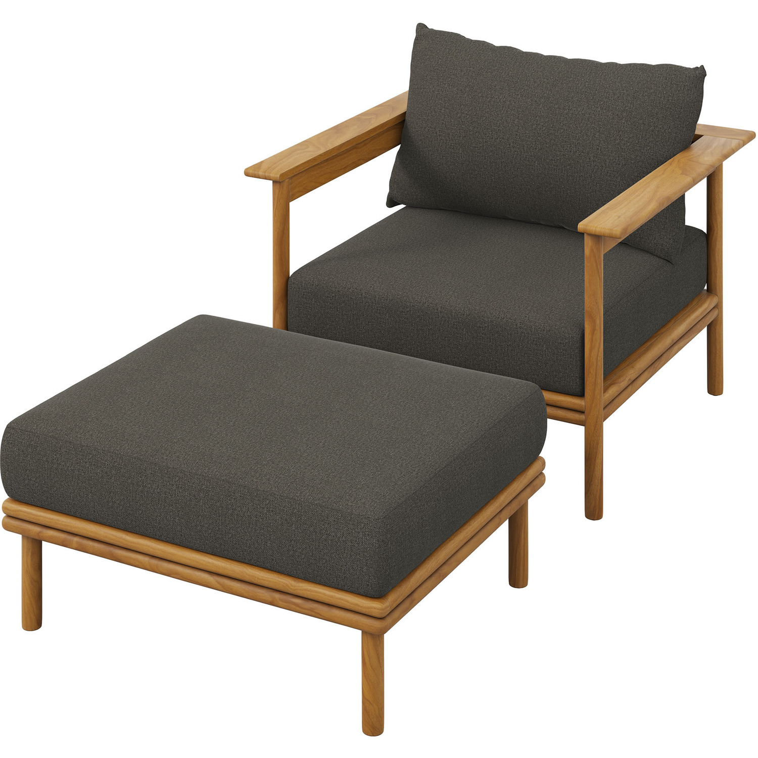 Enjoy the flexibility and charm of the Wren Teak Wood Outdoor Armchair with Ottoman, designed for a variety of outdoor settings. This beautifully crafted 2-piece lounge chair set features teak wood frames renowned for their weatherproof qualities and timeless charm. The plush, removable cushions, wrapped in premium Sunproof fabric, offer superior comfort and excellent resistance to the elements, keeping this wood outdoor chair and ottoman attractive season after season. With plastic floor glides to protect your surfaces and make repositioning easy, the Wren accent chair with footrest is as practical as it is stylish. Use it on its own as a chic outdoor reading chair with ottoman or pair it with other pieces from the Wren teak patio furniture collection to instantly enhance your outdoor setup. Assembly Required.Armchair and Ottoman Set