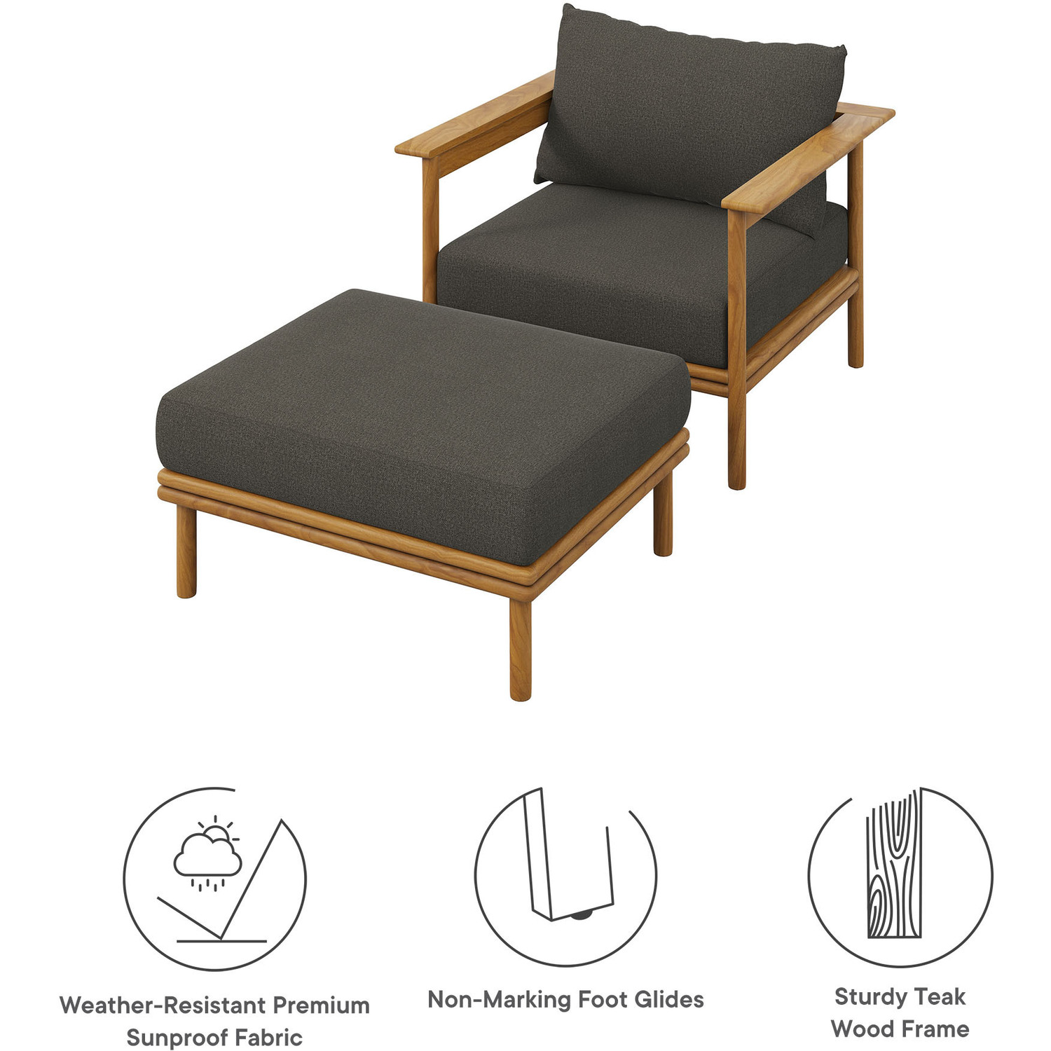 Modway Furniture Wren Outdoor Patio Teak Wood Armchair and Ottoman Set by Modway, 889654179399, EEI-7067