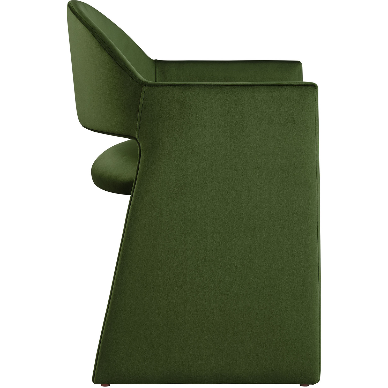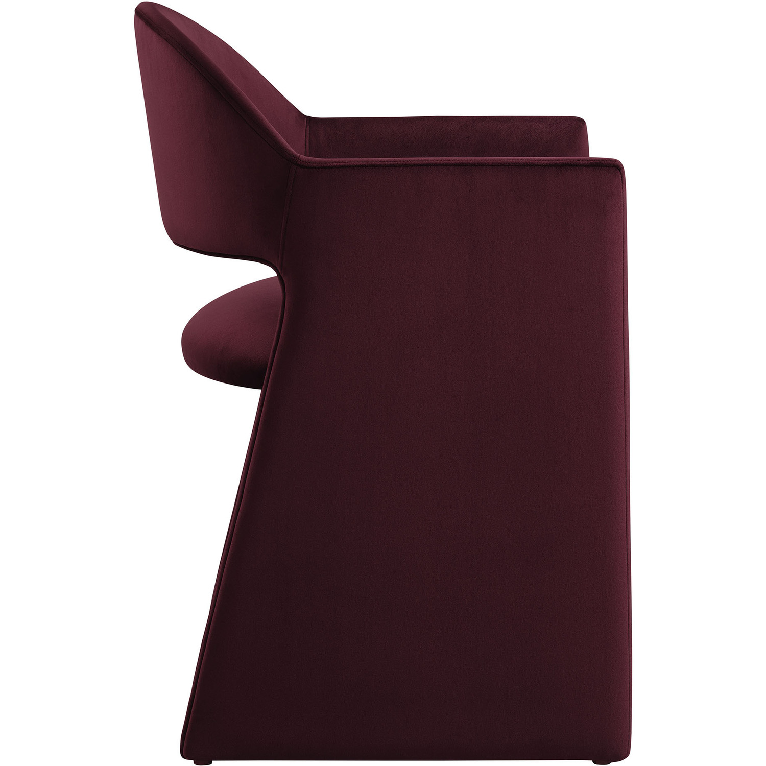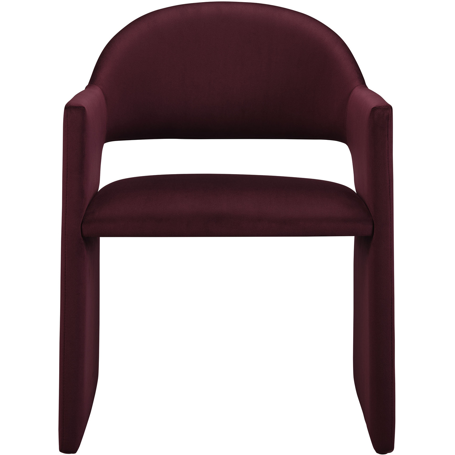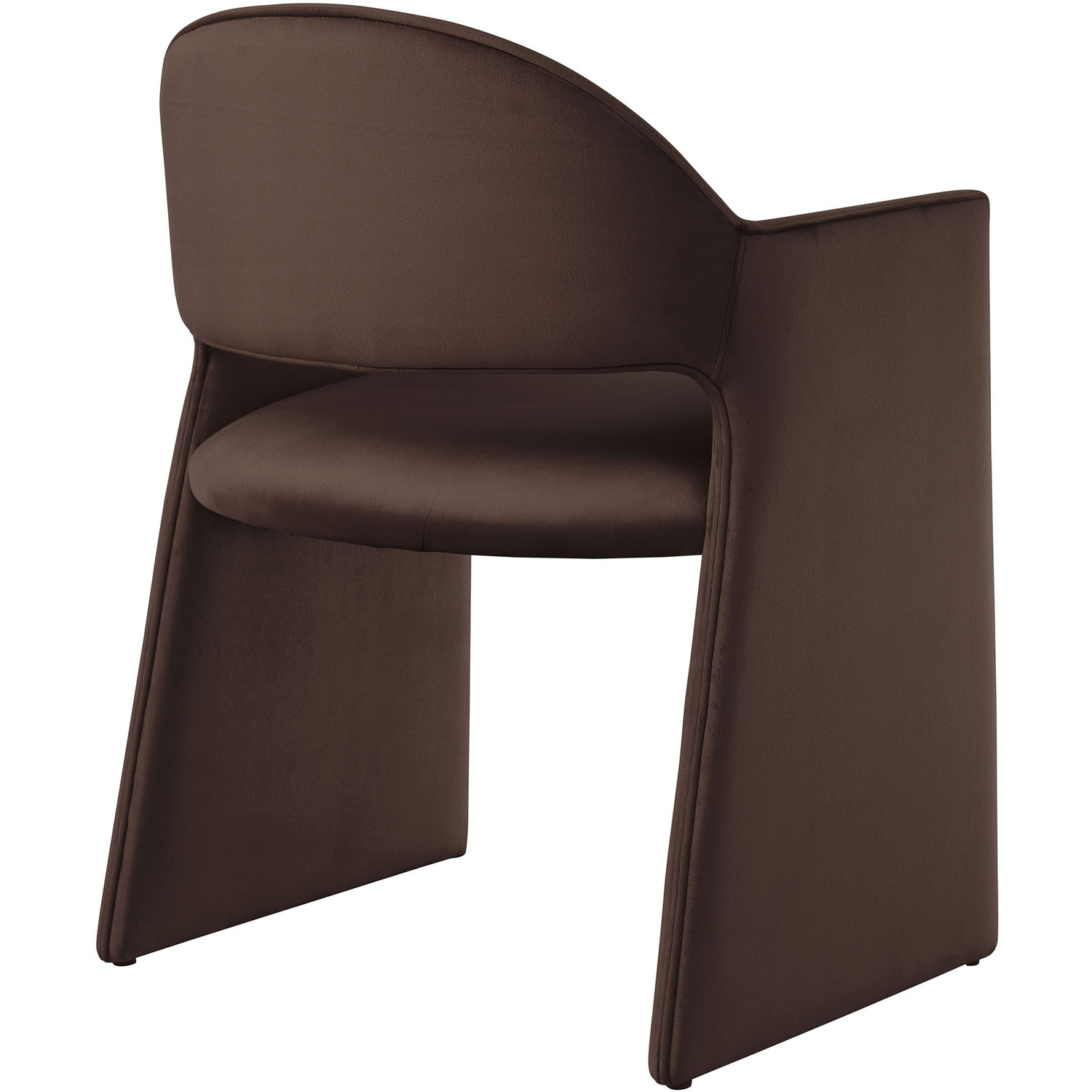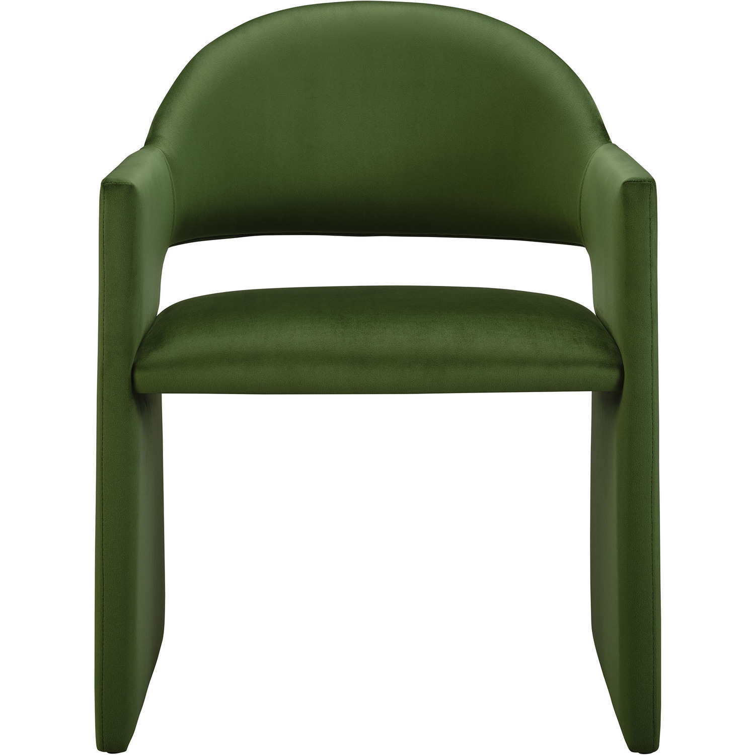 The Talia Performance Velvet Dining Chair is a stunning example of modern design, blending clean lines with luxurious comfort. Whether as a stylish living room accent chair, a statement piece in the dining area, or even a chic office accent chair, the Talia Barrel Back Dining Chair offers both timeless style and versatility. Built on a sturdy bentwood frame, this dining chair with arms is fully upholstered in soft, stain-resistant performance velvet for a premium feel. Its elegantly curved backrest flows seamlessly into wide, angular armrests that extend down to the floor, creating a sculptural look that's perfect for minimalist and contemporary spaces. The open-back design of this curved dining chair provides a light and airy feel, while the generously padded seat ensures lasting comfort. Completing the design, floor-protecting foot pins are included to prevent scratches, making it easy to move and enjoy without worry. The Talia Velvet Armchair arrives fully assembled, ready to elevate your space. Weight Capacity: 300 lbs.Stain-Resistant Performance Velvet