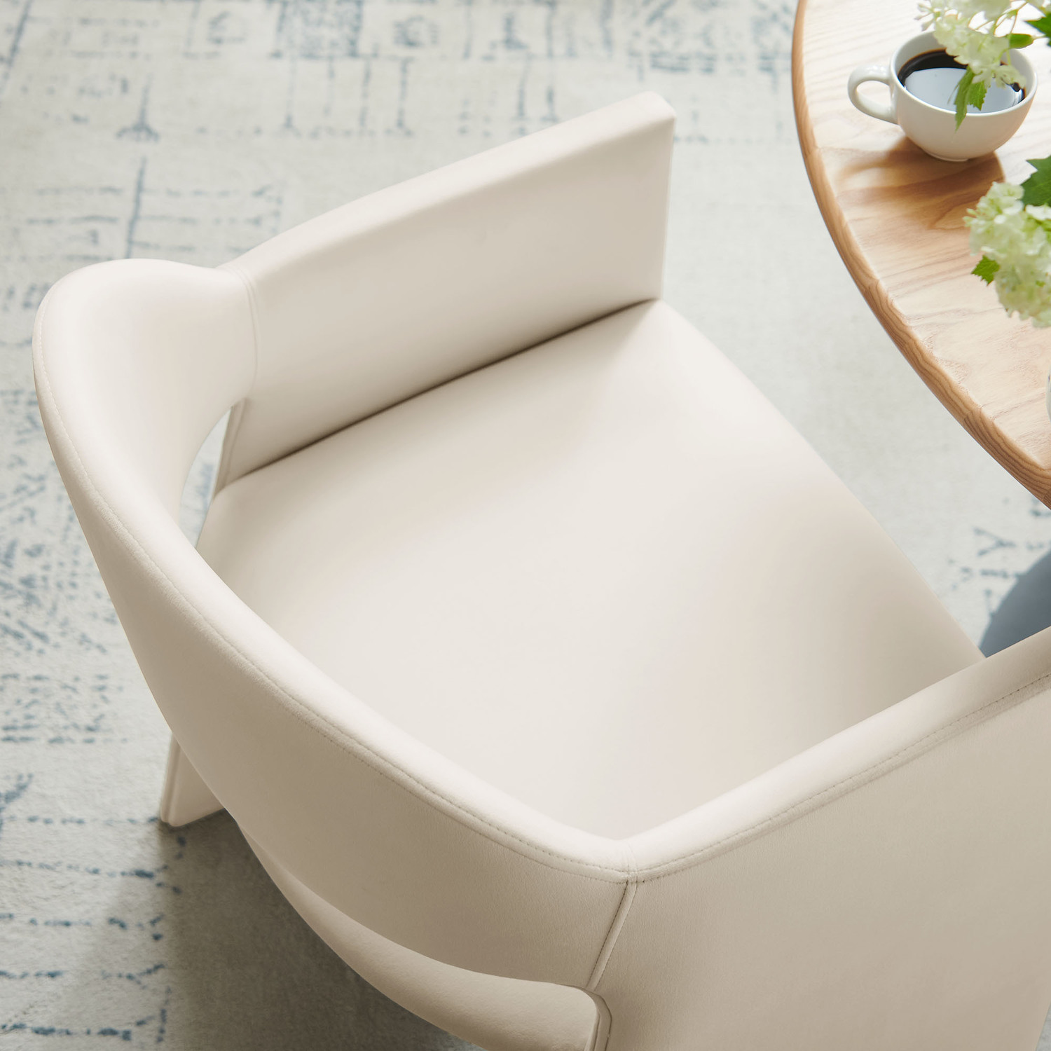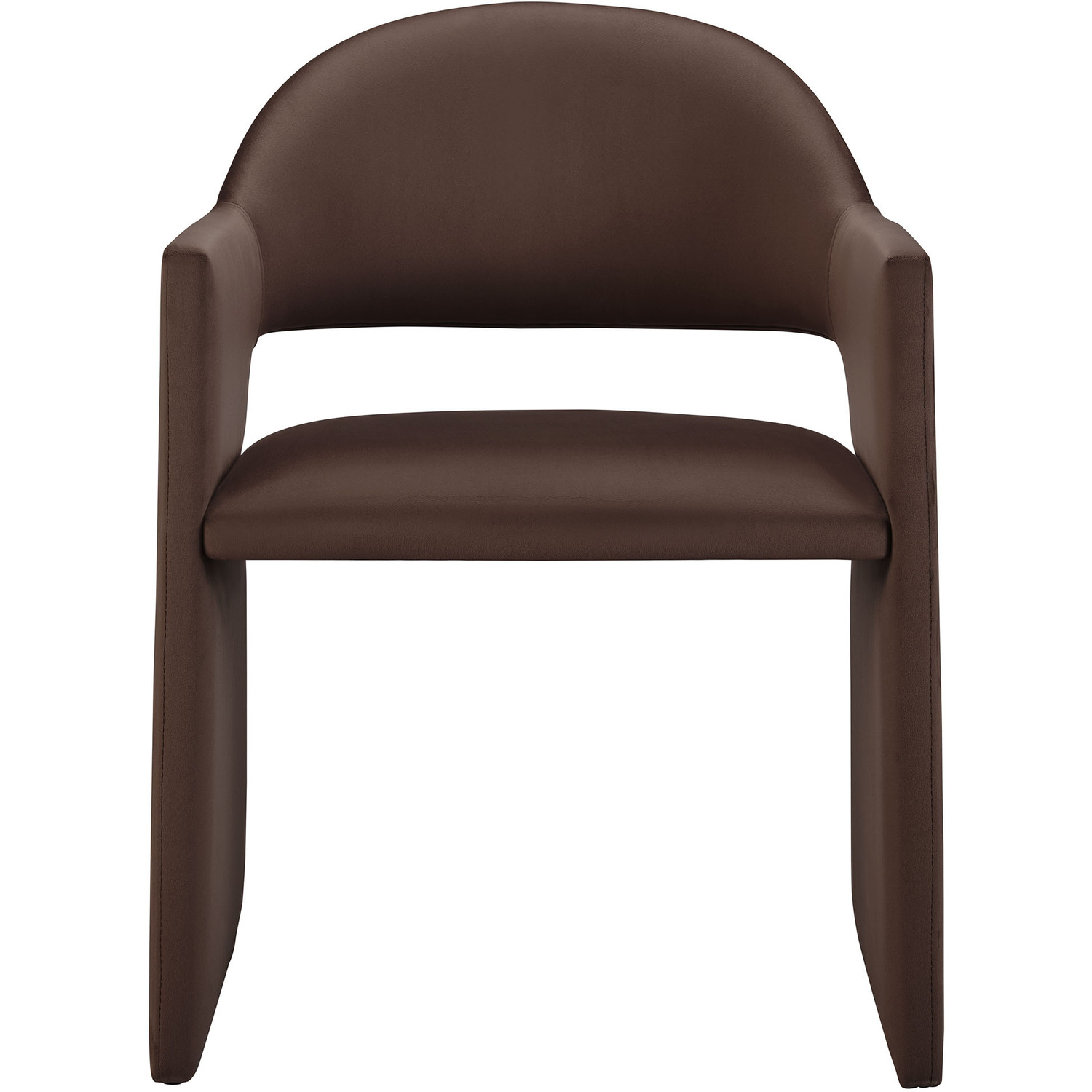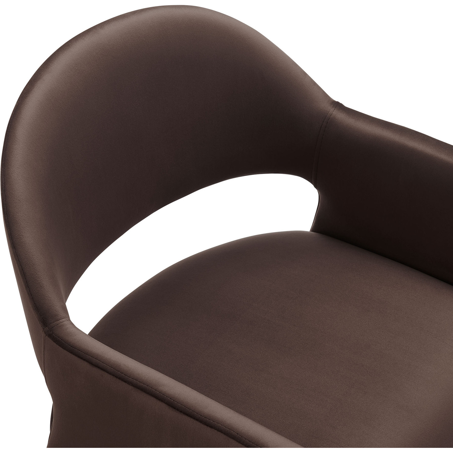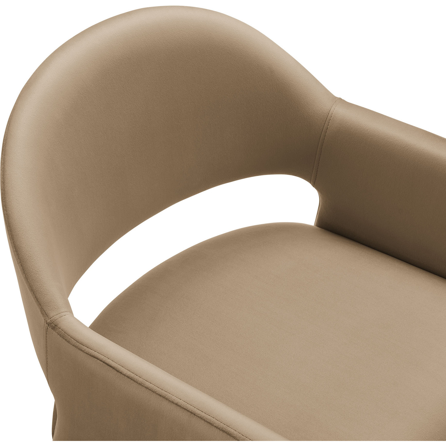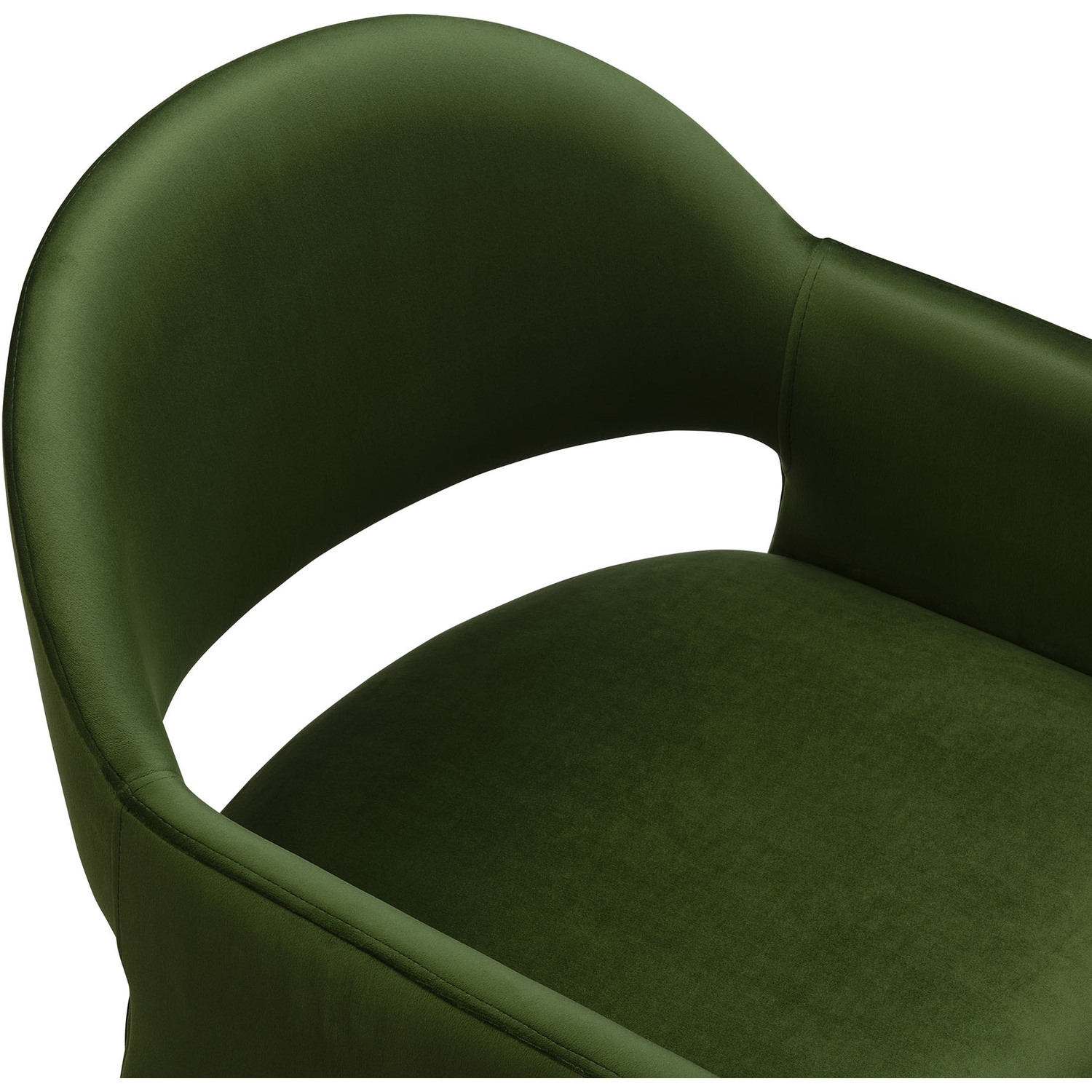 The Talia Performance Velvet Dining Chair is a stunning example of modern design, blending clean lines with luxurious comfort. Whether as a stylish living room accent chair, a statement piece in the dining area, or even a chic office accent chair, the Talia Barrel Back Dining Chair offers both timeless style and versatility. Built on a sturdy bentwood frame, this dining chair with arms is fully upholstered in soft, stain-resistant performance velvet for a premium feel. Its elegantly curved backrest flows seamlessly into wide, angular armrests that extend down to the floor, creating a sculptural look that's perfect for minimalist and contemporary spaces. The open-back design of this curved dining chair provides a light and airy feel, while the generously padded seat ensures lasting comfort. Completing the design, floor-protecting foot pins are included to prevent scratches, making it easy to move and enjoy without worry. The Talia Velvet Armchair arrives fully assembled, ready to elevate your space. Weight Capacity: 300 lbs.Stain-Resistant Performance Velvet