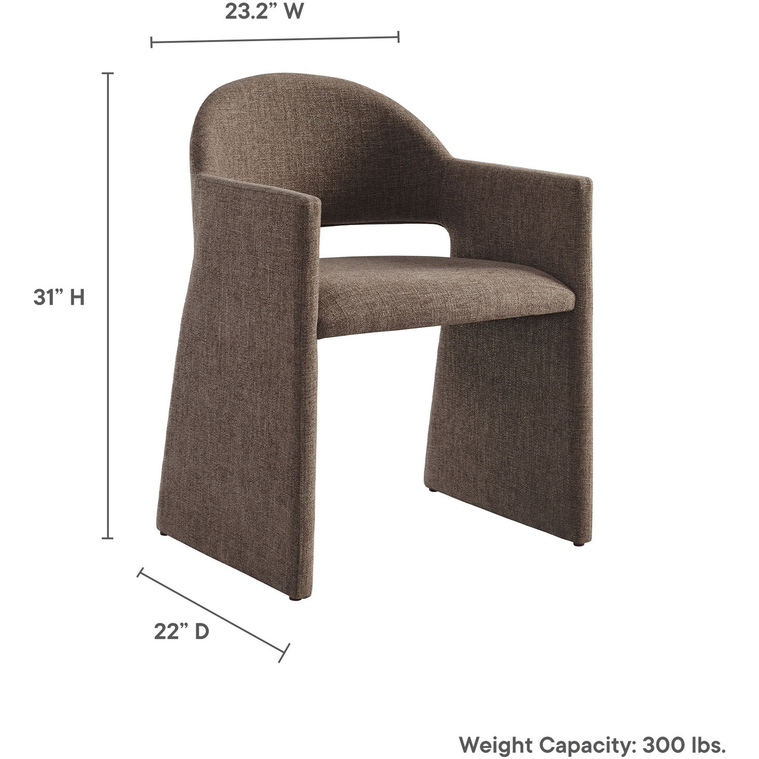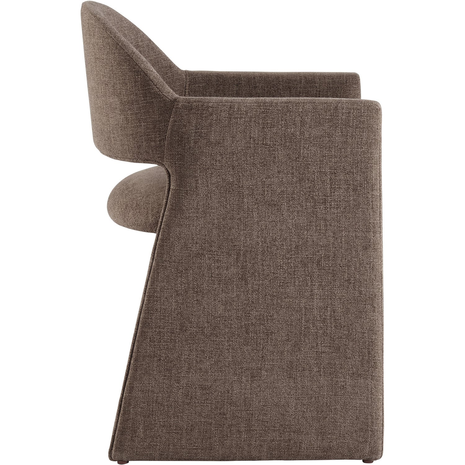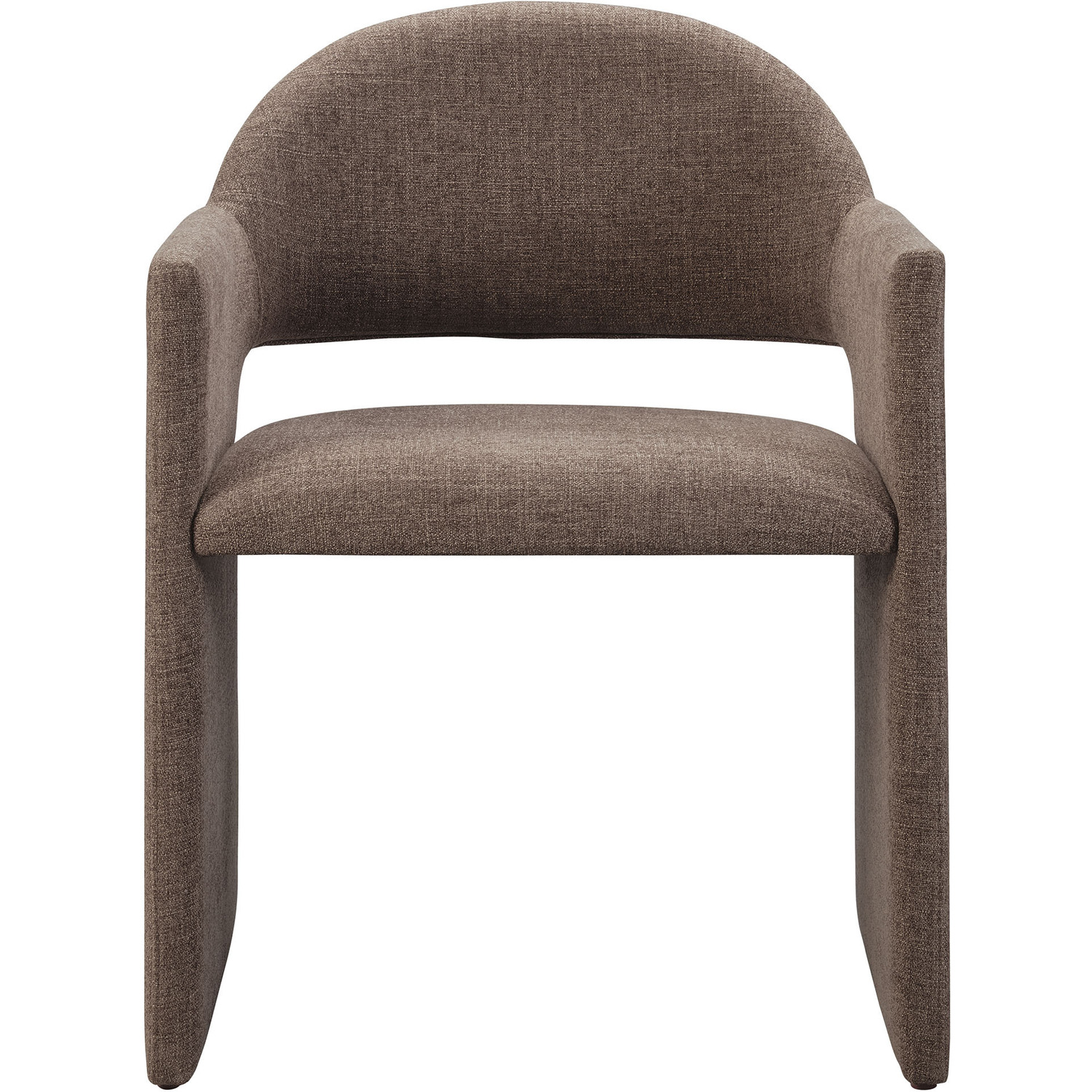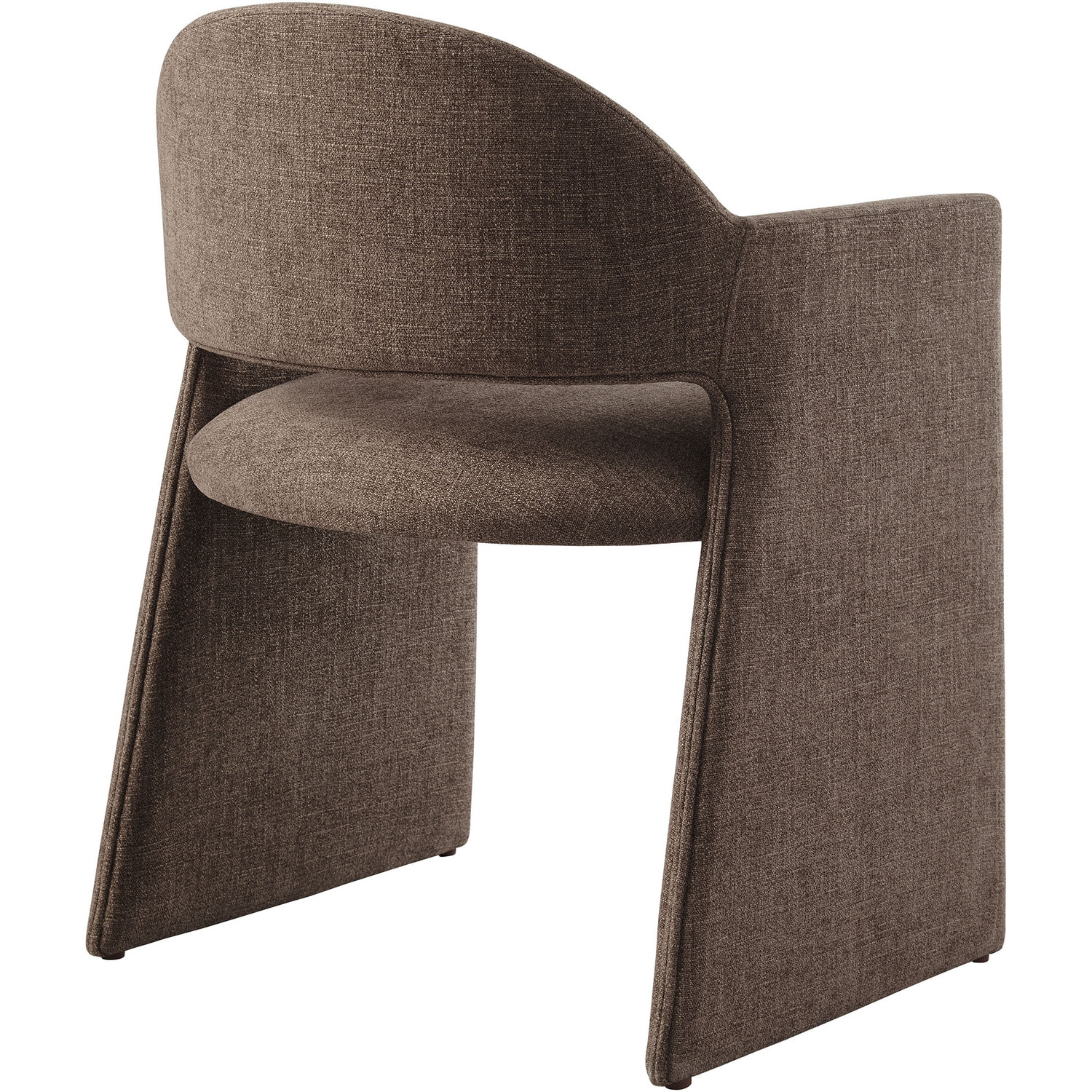 The Talia Upholstered Dining Chair is a stunning example of modern design, blending clean lines with luxurious comfort. Whether as a stylish living room accent chair, a statement piece in the dining area, or even a chic office accent chair, the Talia Barrel Back Dining Chair offers both timeless style and versatility. Built on a sturdy bentwood frame, this dining chair with arms is fully upholstered in soft slub weave fabric for a premium feel. Its elegantly curved backrest flows seamlessly into angular armrests that extend down to the floor, creating a sculptural look that's perfect for minimalist and contemporary spaces. The open-back design of this curved dining chair provides a light and airy feel, while the generously padded seat ensures lasting comfort. Completing the design, floor-protecting foot pins are included to prevent scratches, making it easy to move and enjoy without worry. The Talia Dining Armchair arrives fully assembled, ready to elevate your space. Weight Capacity: 300 lbs.Soft Slub Weave Fabric Upholstery