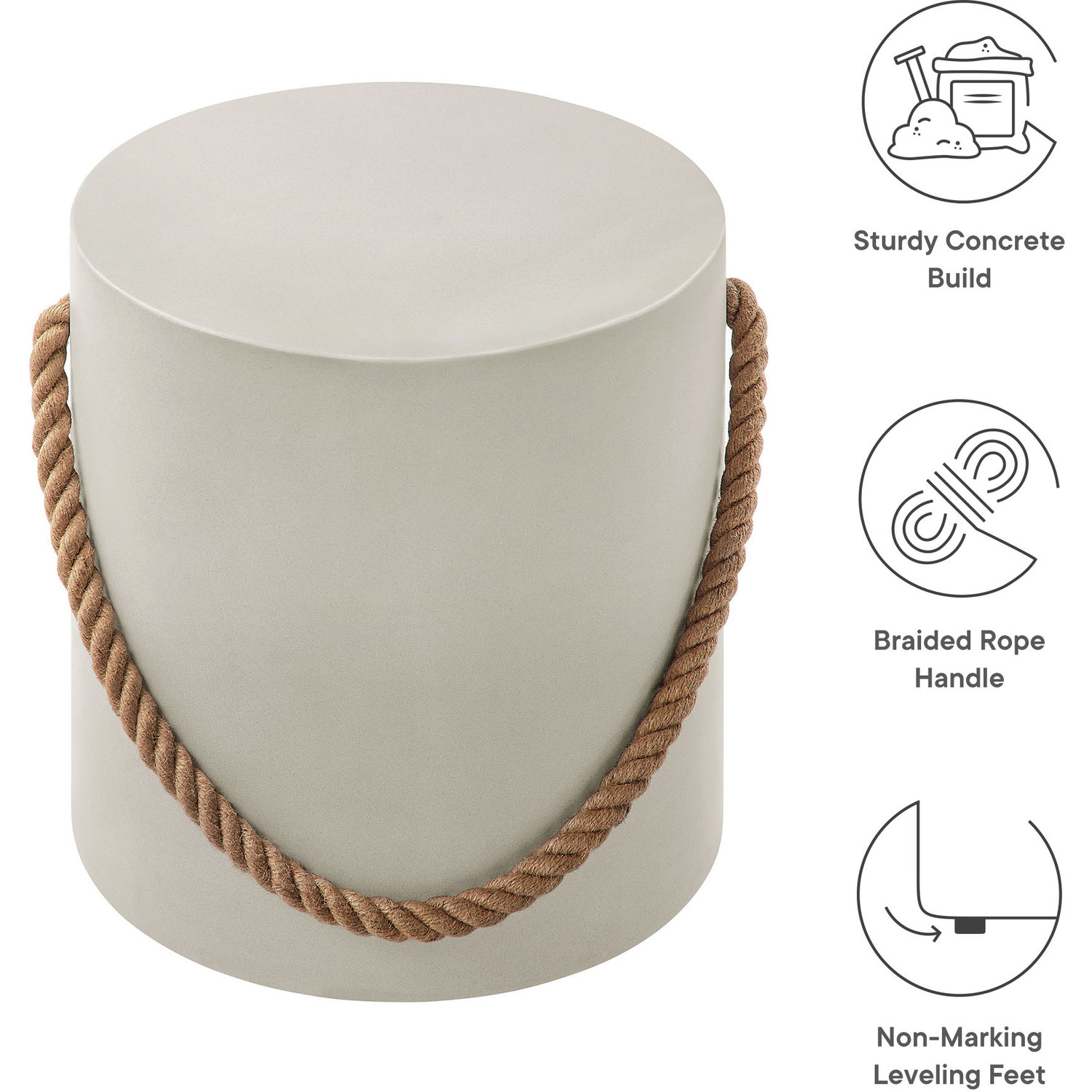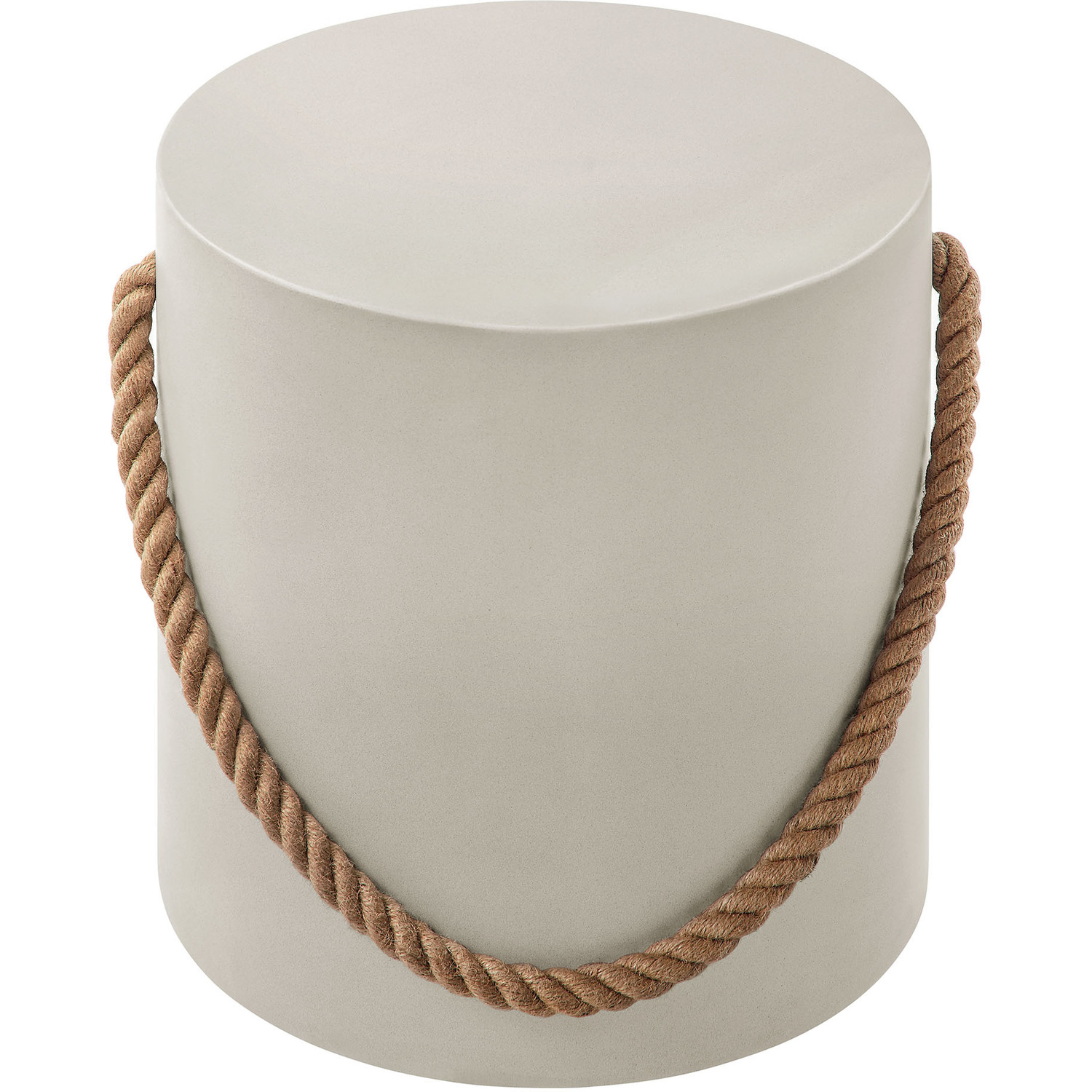 Whether situated indoors or out, the Isera Concrete Stool adds a cool, modern vibe and works anywhere you need it. With its smooth cylindrical design, this stool side table is effortlessly stylish, while the braided rope handle adds both a rustic charm and practical convenience, allowing you to easily move it from room to patio. Designed with non-marking leveling feet, the Isera rope concrete stool provides stability on uneven surfaces, offering a stylish solution whether you need extra seating or a convenient surface for drinks and decor. With no assembly required, this cement round stool arrives ready to enhance your decor with its sturdy build and timeless appeal. Whether you're using it as an outdoor drink table, a garden stool, a cute plant stand, or even as a living room accent end table, Isera enriches patios, living rooms, or garden spaces with its soft, industrial-chic, minimalist style. Weight Capacity: 230 lbs.Concrete Build
