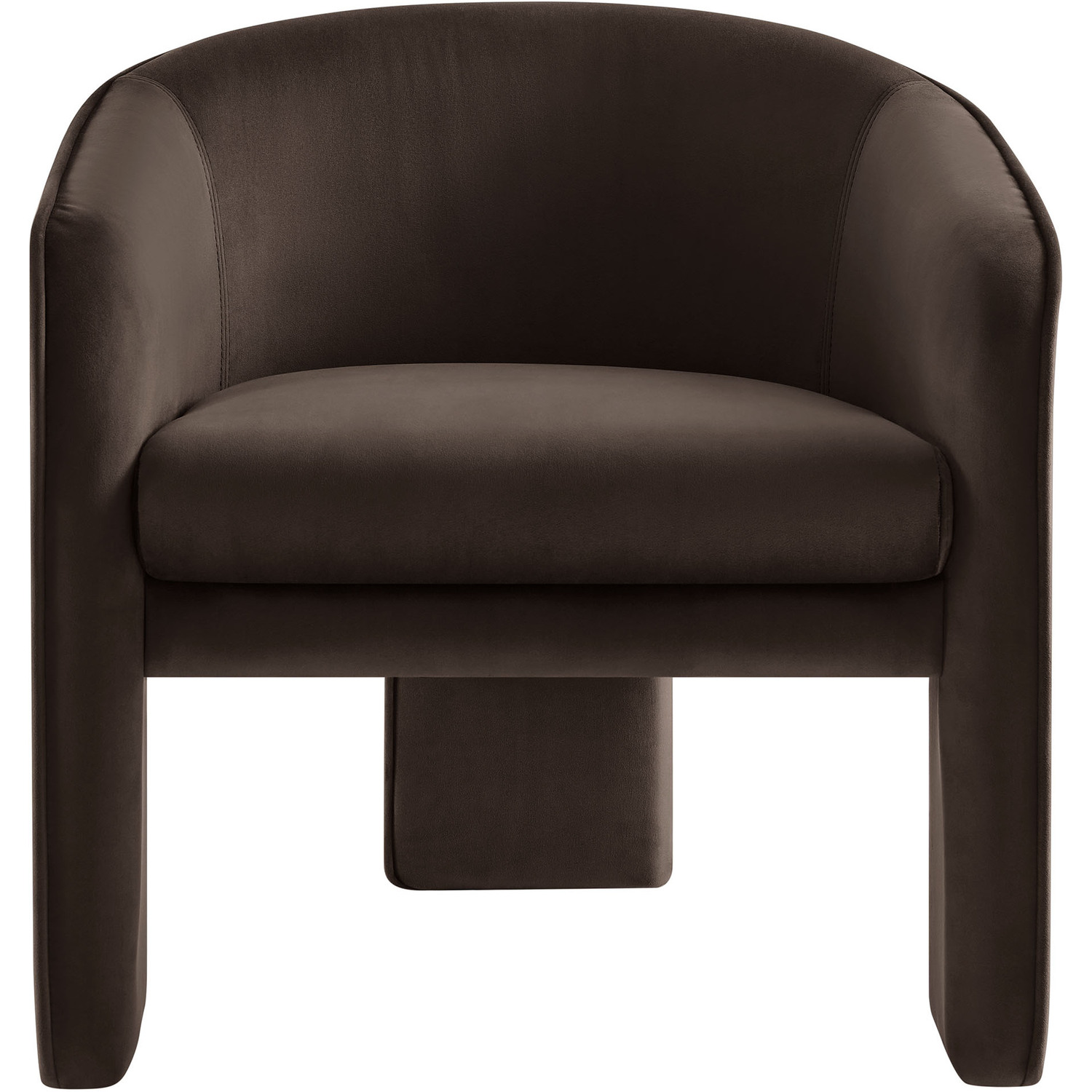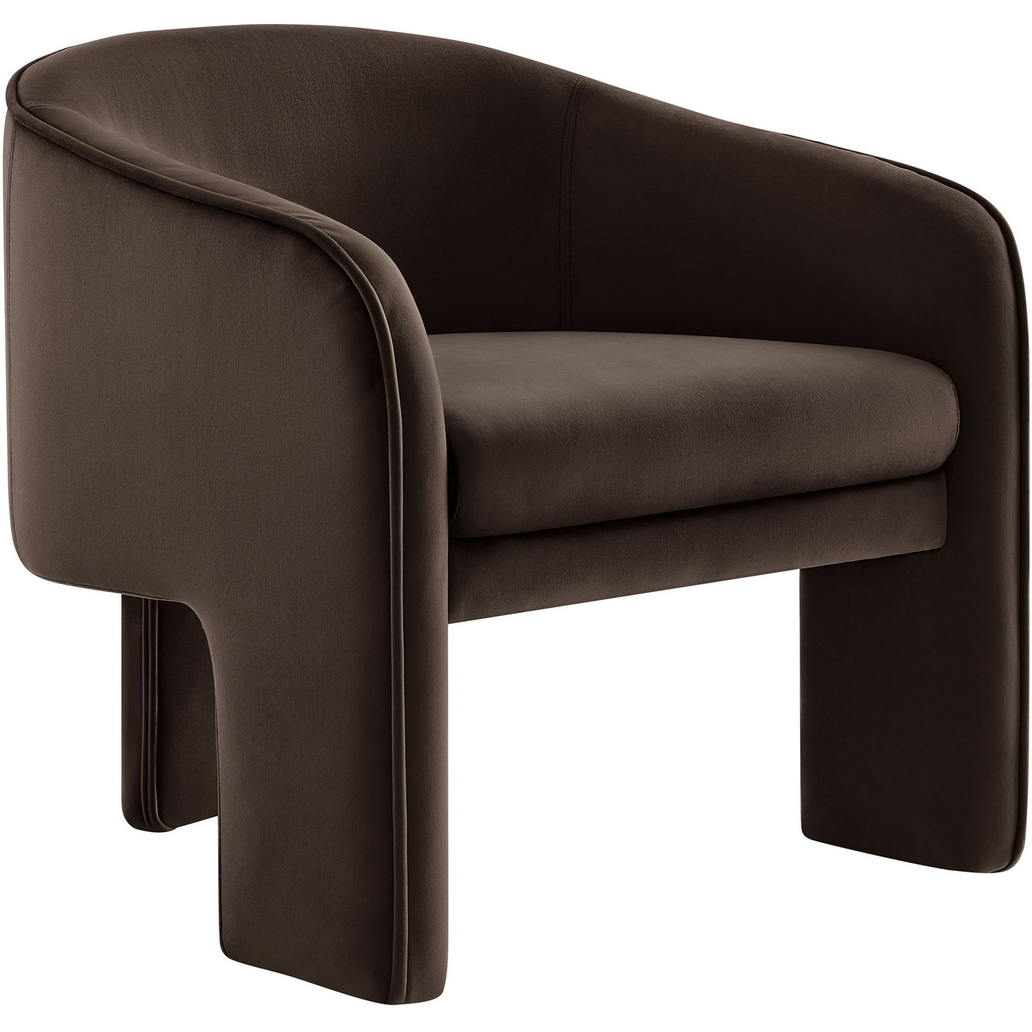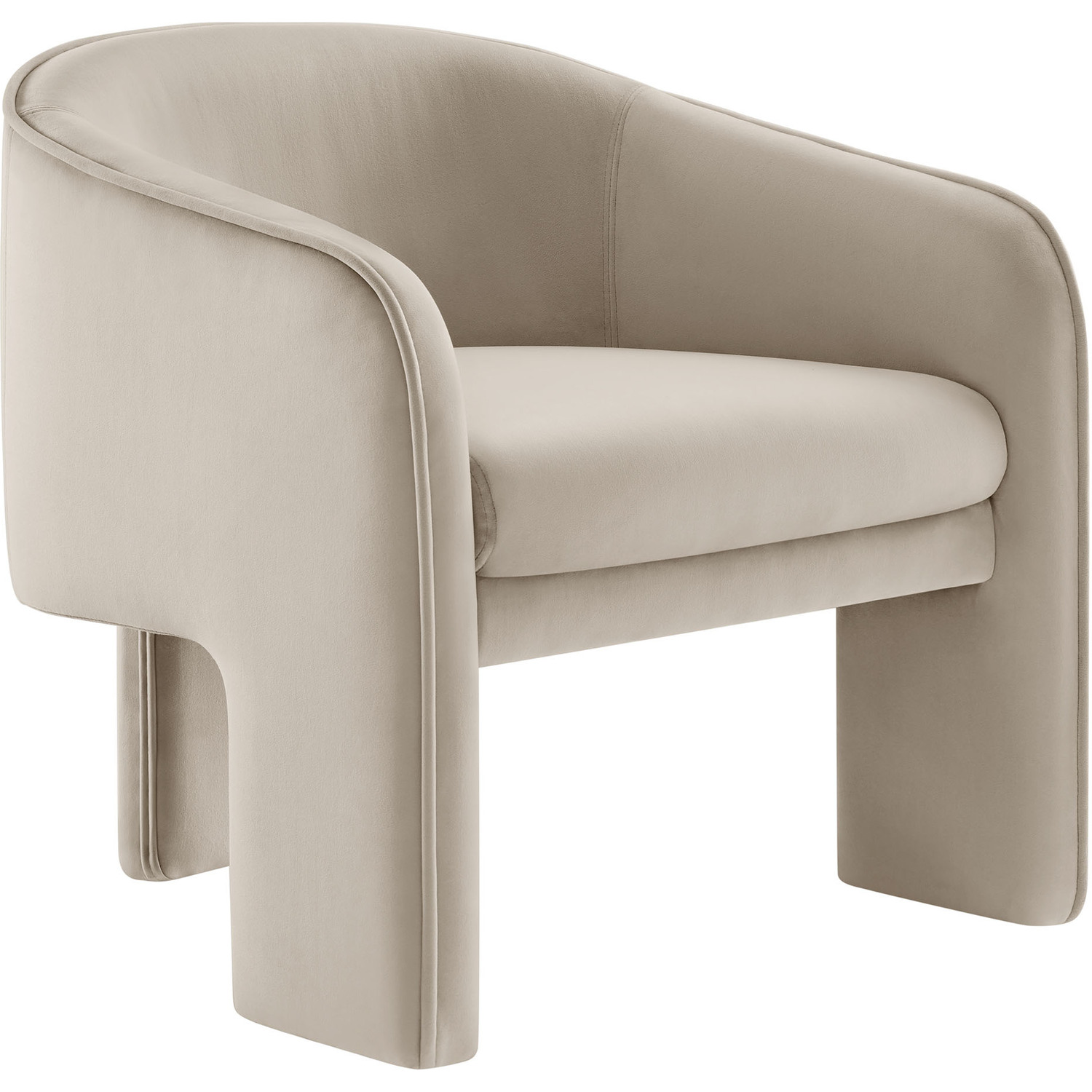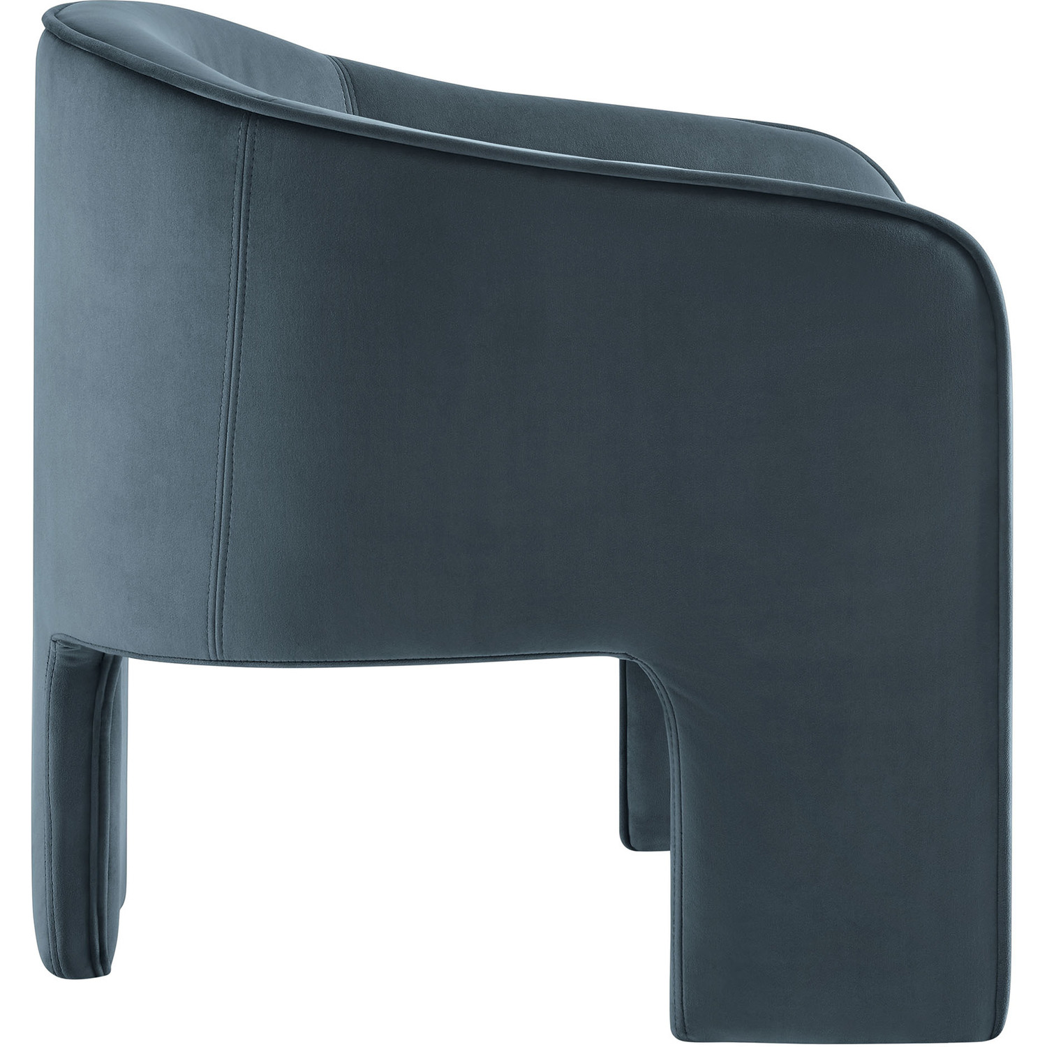 Distinctive and bold, the Greer Performance Velvet Accent Chair offers a fresh take on modern seating. Covered in stain-resistant performance velvet, this soft upholstered reading armchair features a barrel chair silhouette with a unique three-legged design that sets it apart. Its curved back flows into the gently angled arms, creating a cocoon-like seating experience that's as comfortable as it is stylish. With padding throughout, the Greer Velvet Armchair provides a cozy place to relax or dine. Perfect for small spaces or as a wide velvet dining chair, the lower backrest adds to its sleek, modern look. Whether you’re creating a reading nook or upgrading your reception space decor, Greer’s bold shape and contemporary flair make it an ideal choice for versatile seating. This velvet barrel chair arrives fully assembled, ready to enhance your space immediately. Weight Capacity: 331 lbs.Performance Velvet Fabric