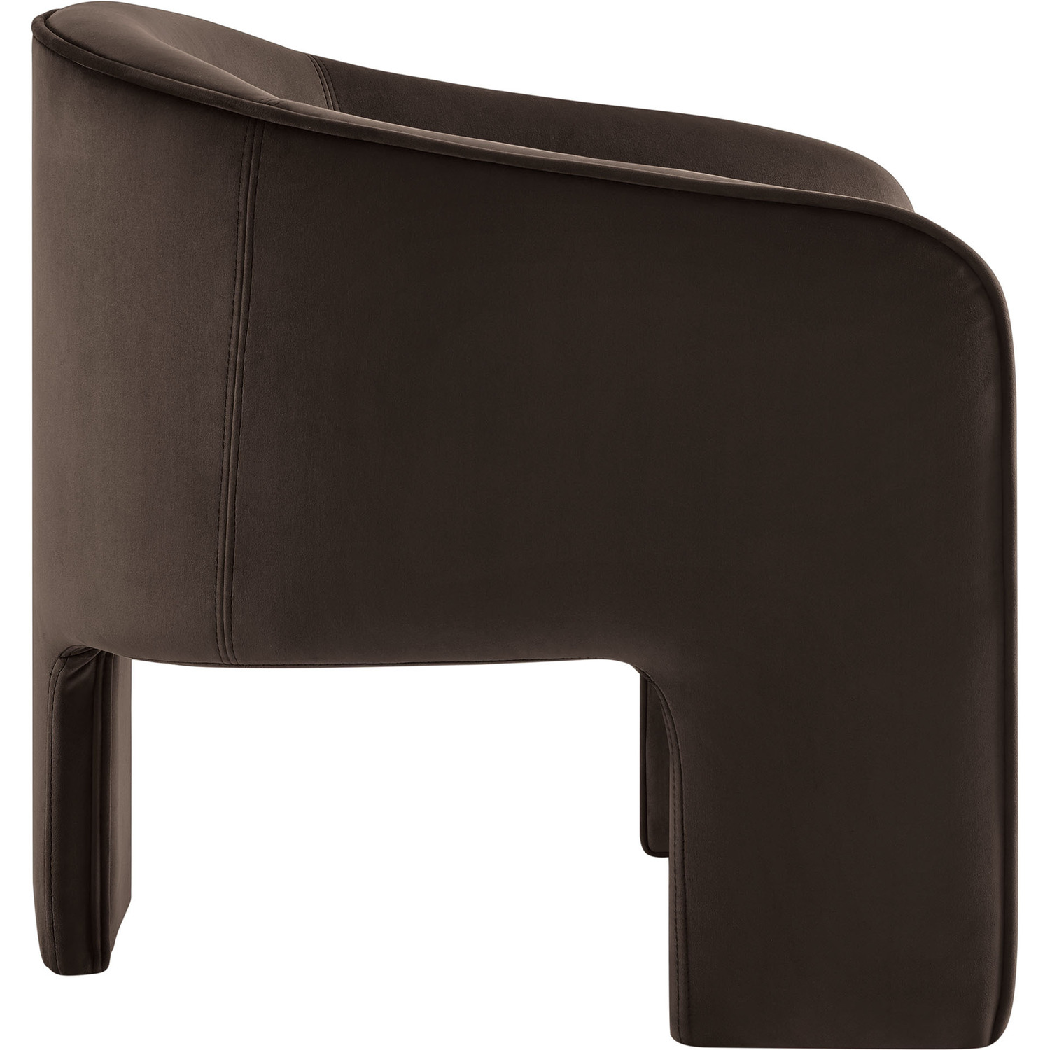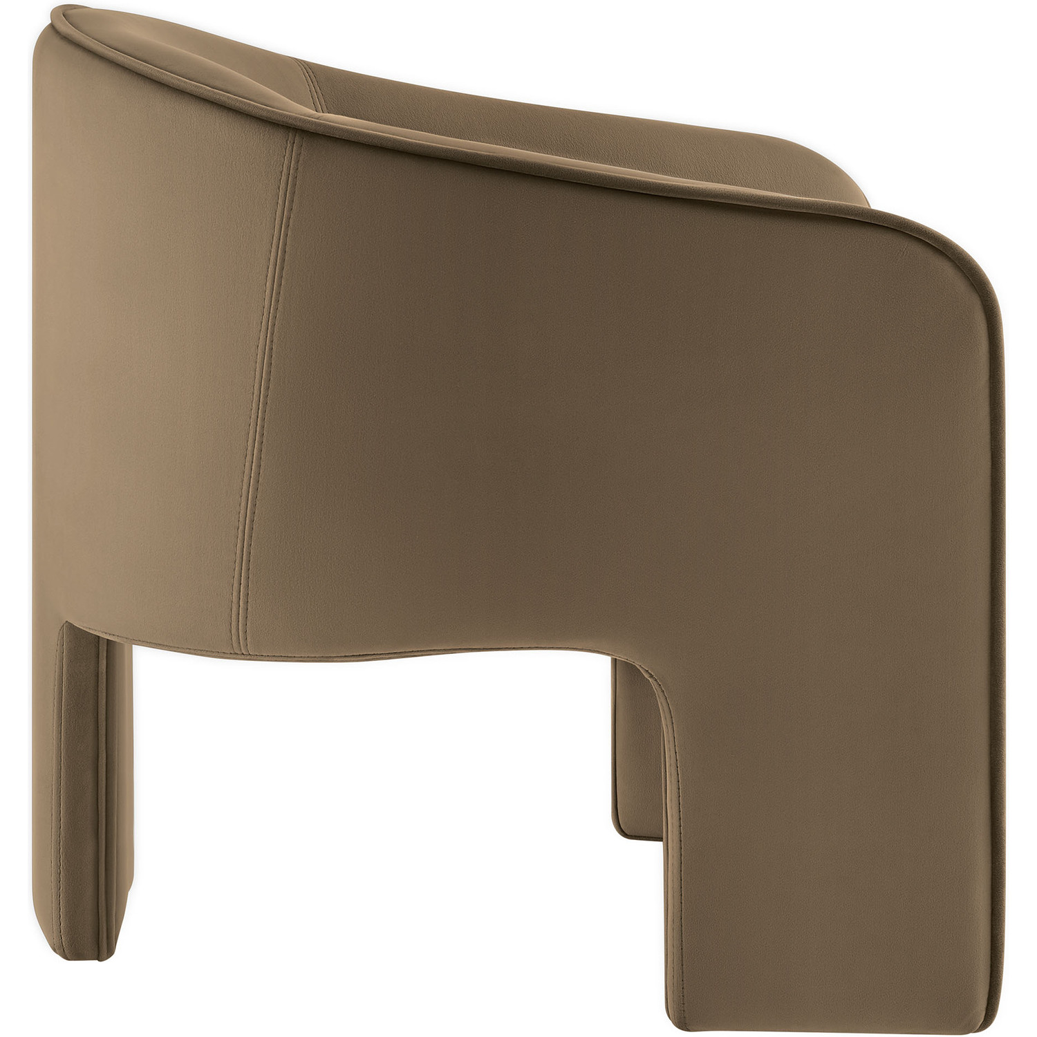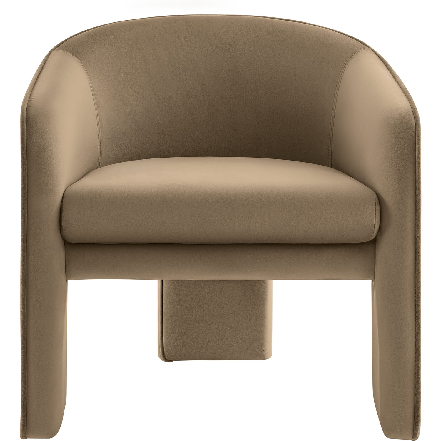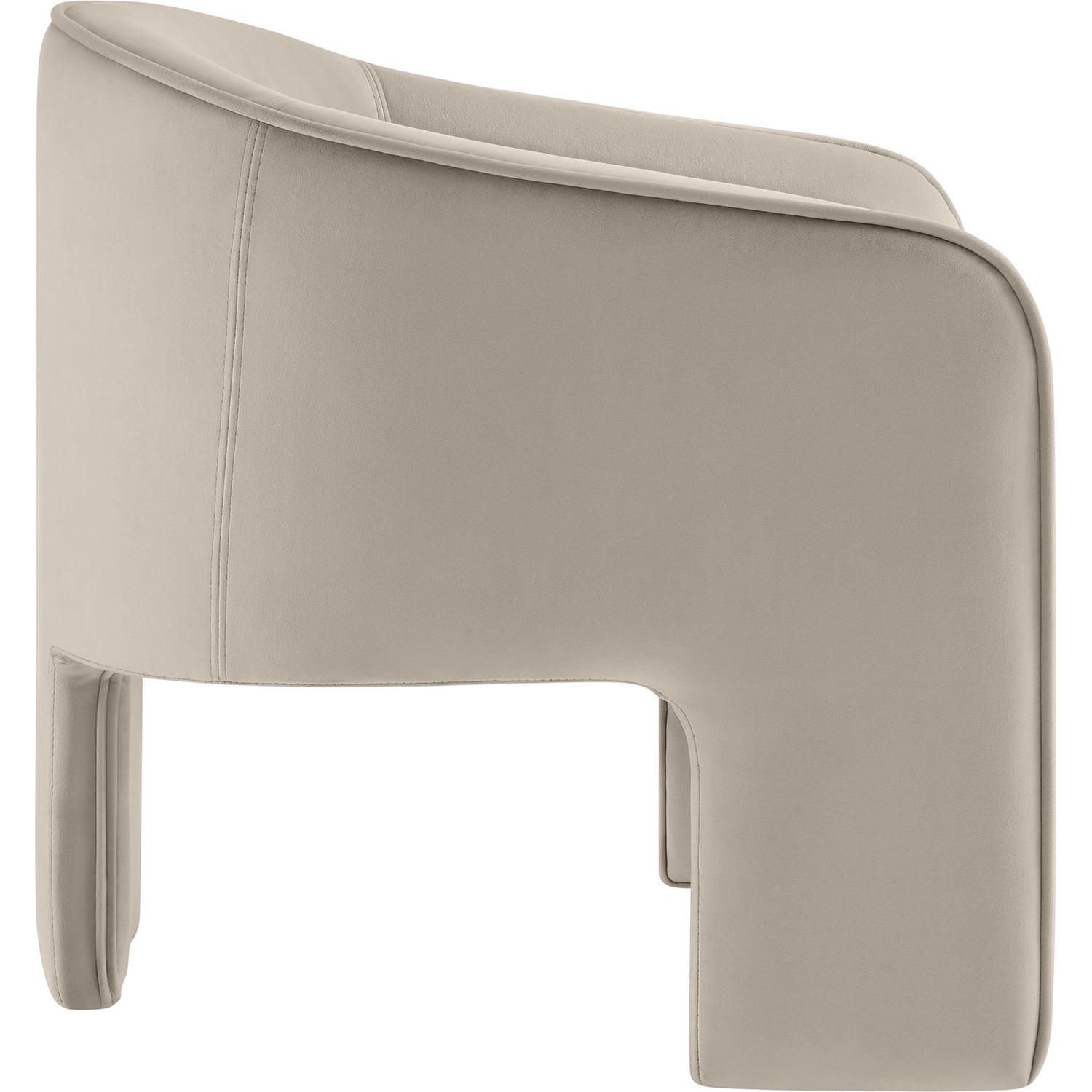 Distinctive and bold, the Greer Performance Velvet Accent Chair offers a fresh take on modern seating. Covered in stain-resistant performance velvet, this soft upholstered reading armchair features a barrel chair silhouette with a unique three-legged design that sets it apart. Its curved back flows into the gently angled arms, creating a cocoon-like seating experience that's as comfortable as it is stylish. With padding throughout, the Greer Velvet Armchair provides a cozy place to relax or dine. Perfect for small spaces or as a wide velvet dining chair, the lower backrest adds to its sleek, modern look. Whether you’re creating a reading nook or upgrading your reception space decor, Greer’s bold shape and contemporary flair make it an ideal choice for versatile seating. This velvet barrel chair arrives fully assembled, ready to enhance your space immediately. Weight Capacity: 331 lbs.Performance Velvet Fabric