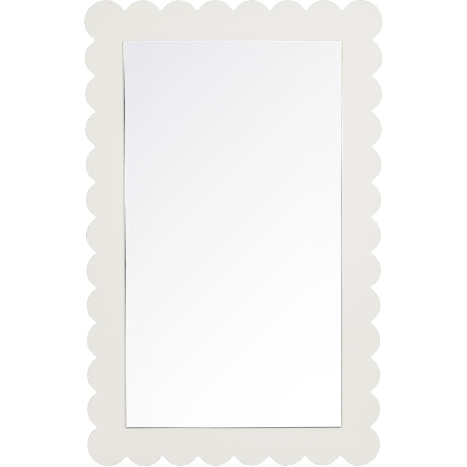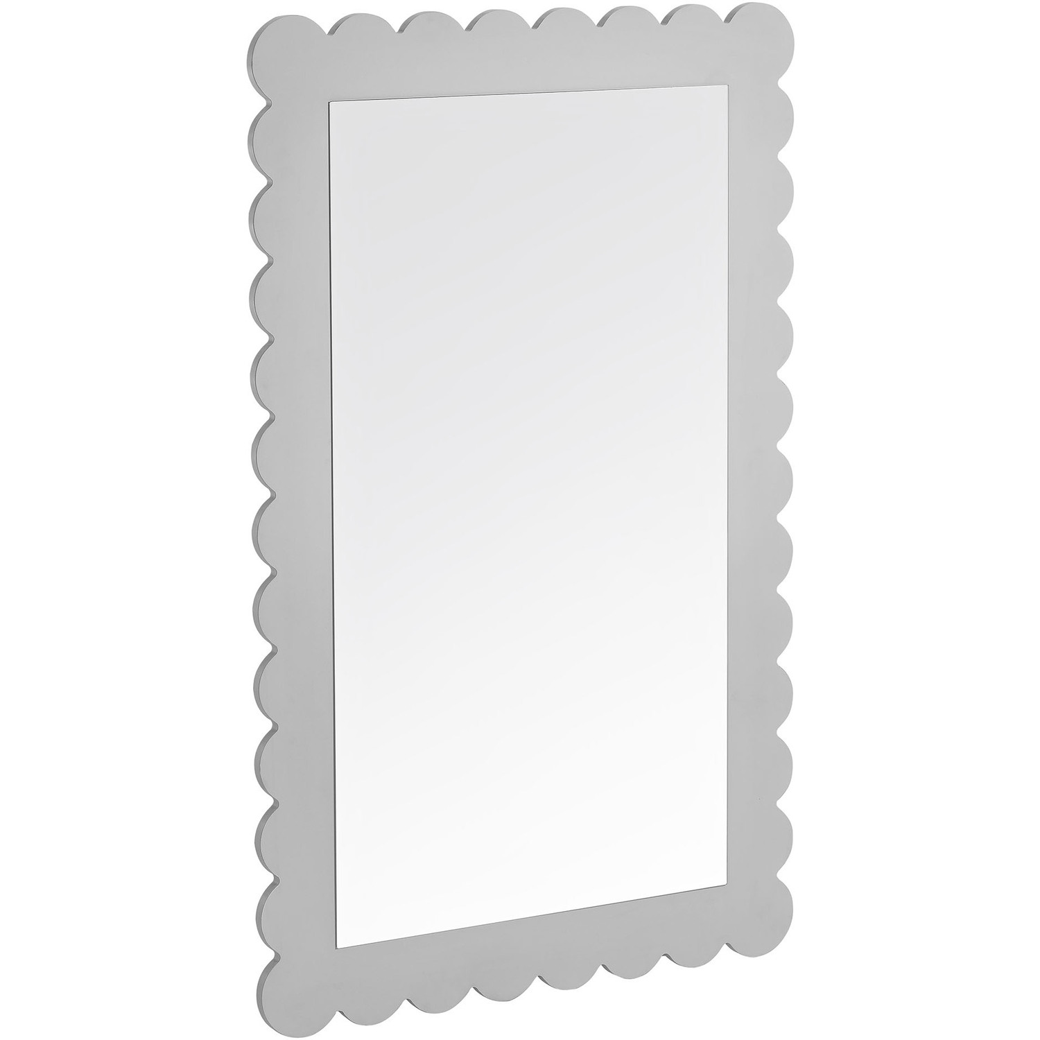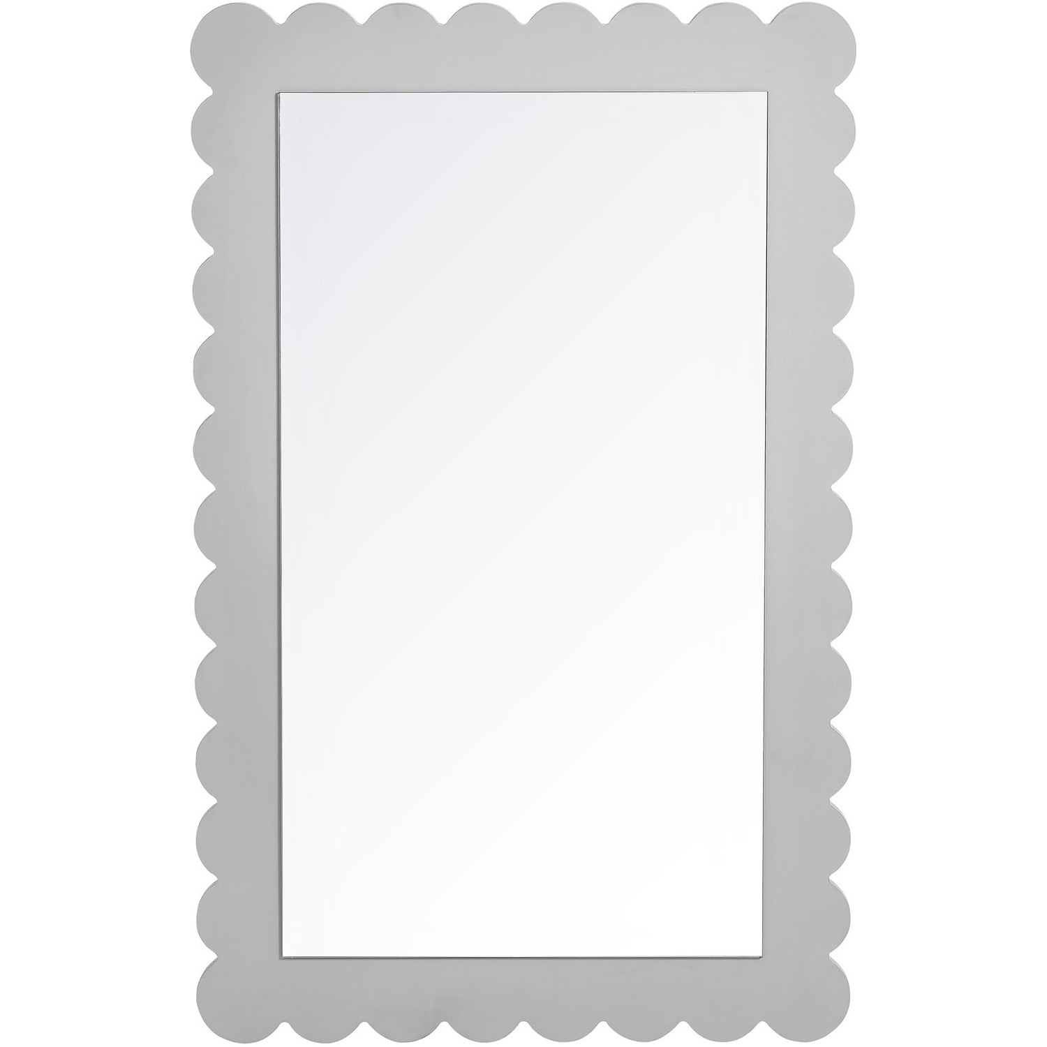 Add a touch of playful charm to your space with the Emmeline Scalloped Rectangle Wall Mirror. Part of the Emmeline collection, this decorative wall mirror features a soft, wavy edge design that brings an artistic flair to any room. Perfect for hanging above a dresser, console table, or even a bathroom vanity, its versatile size and style allow it to blend effortlessly into modern, retro, or eclectic interiors. The scalloped border enhances the mirror's unique silhouette, making it a statement piece for entryways, bedrooms, or living rooms. Whether used as a stylish accent mirror or a functional bathroom vanity mirror, Emmeline adds a simple but trendy touch to your everyday routine. Easy to mount, this charming mirror adds a cute and versatile decorative element to any wall.Versatile Hanging Mirror