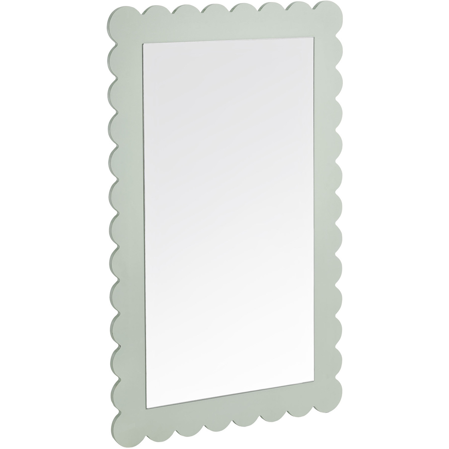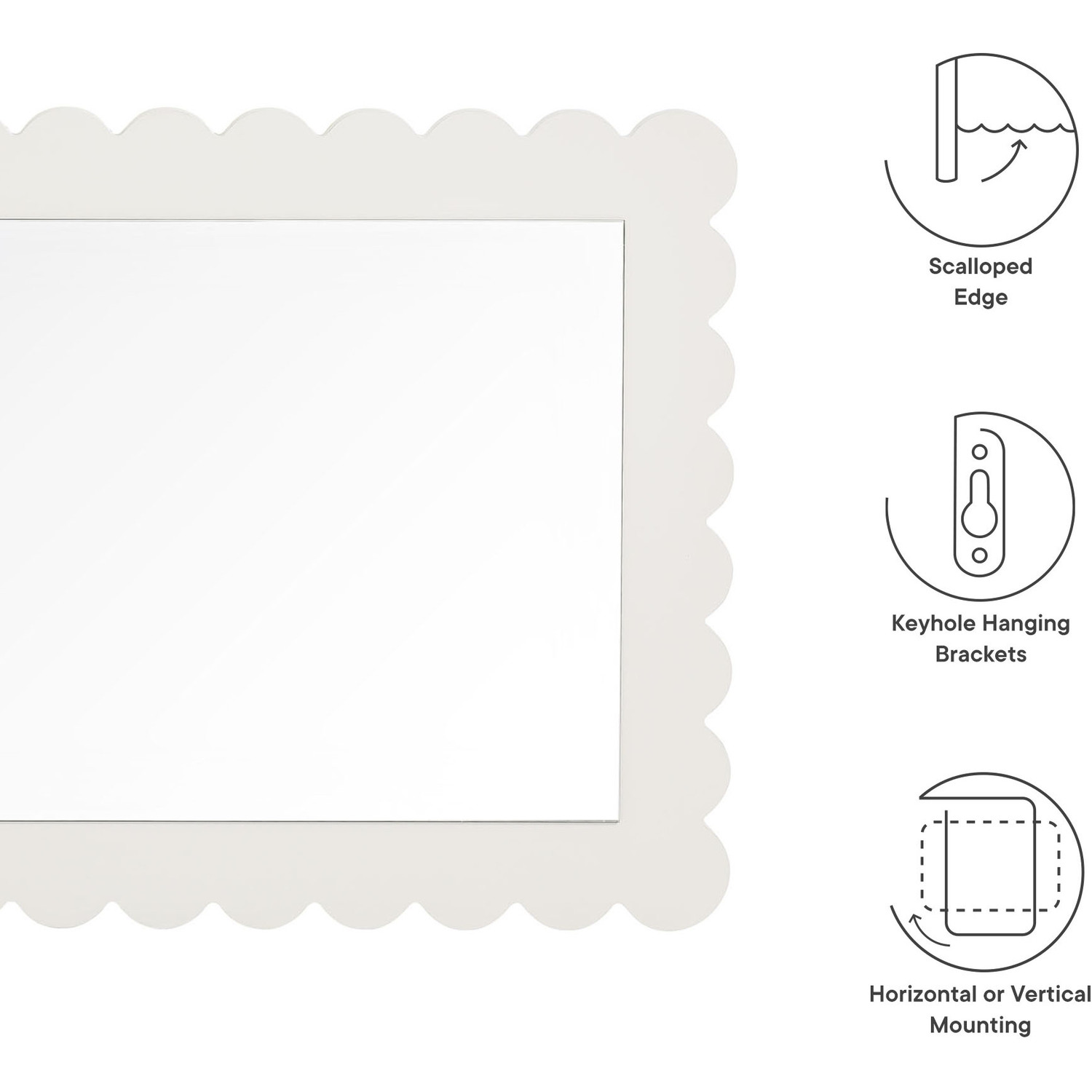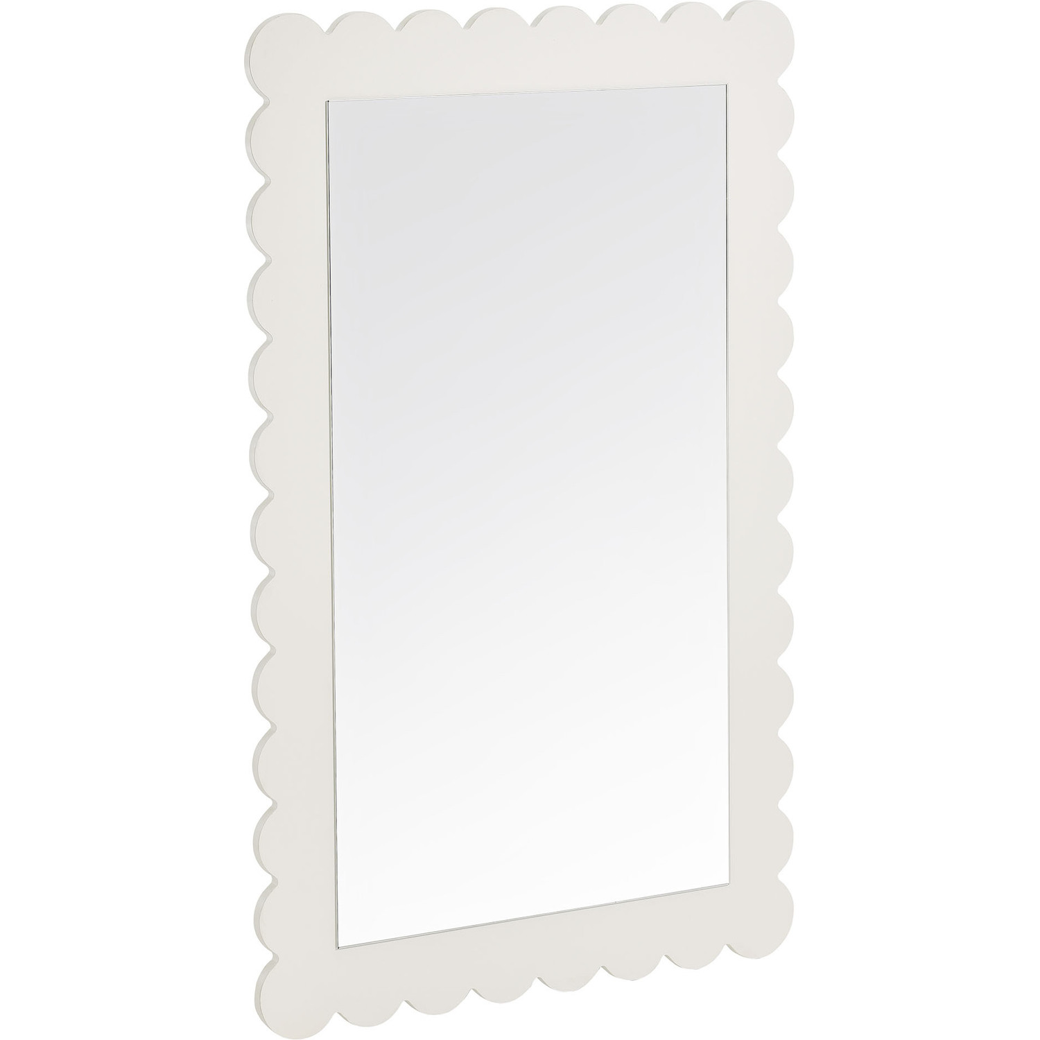 Add a touch of playful charm to your space with the Emmeline Scalloped Rectangle Wall Mirror. Part of the Emmeline collection, this decorative wall mirror features a soft, wavy edge design that brings an artistic flair to any room. Perfect for hanging above a dresser, console table, or even a bathroom vanity, its versatile size and style allow it to blend effortlessly into modern, retro, or eclectic interiors. The scalloped border enhances the mirror's unique silhouette, making it a statement piece for entryways, bedrooms, or living rooms. Whether used as a stylish accent mirror or a functional bathroom vanity mirror, Emmeline adds a simple but trendy touch to your everyday routine. Easy to mount, this charming mirror adds a cute and versatile decorative element to any wall.Versatile Hanging Mirror