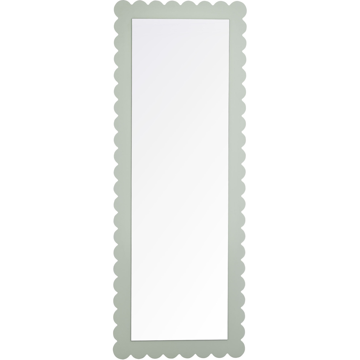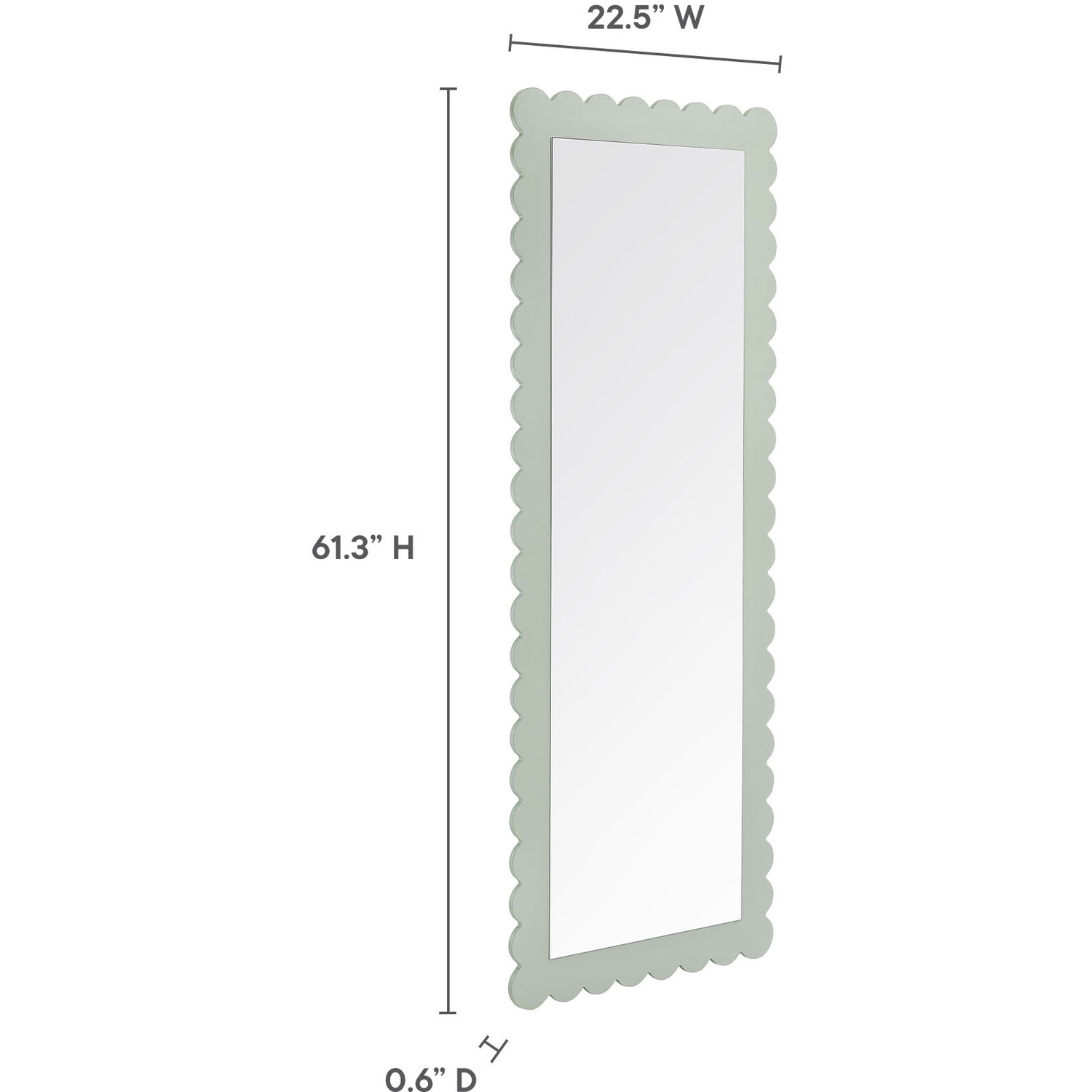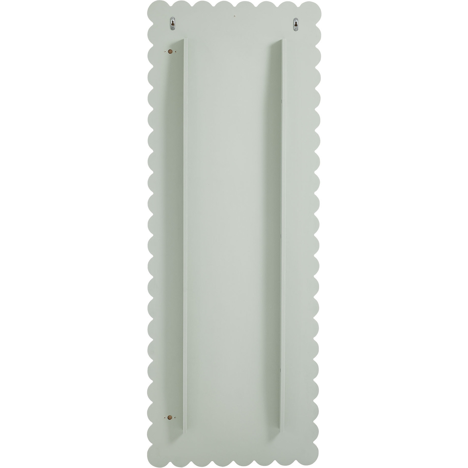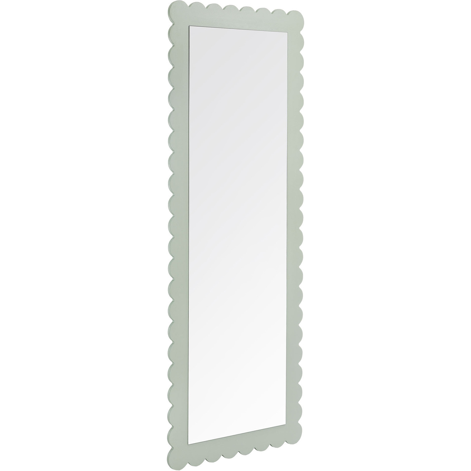 Add a touch of whimsical elegance to your home with the Emmeline Wavy Full-Length Mirror. Featuring a distinctive scalloped edge, this large floor mirror brings a soft, artistic element to any room. Whether mounted on the wall with its keyhole hanging brackets, leaned against it, or used as a standing mirror, the Emmeline mirror offers versatile functionality and style for any bedroom, entryway, or living room. Its full-length design makes it perfect for outfit checks or adding visual depth to your space. With a sturdy frame and a charming scalloped silhouette, this mirror adds a modern, playful touch to your decor. The Emmeline mirror can be wall-mounted for a secure fit or used freestanding, offering flexibility in any setting.Versatile Full-Length Mirror