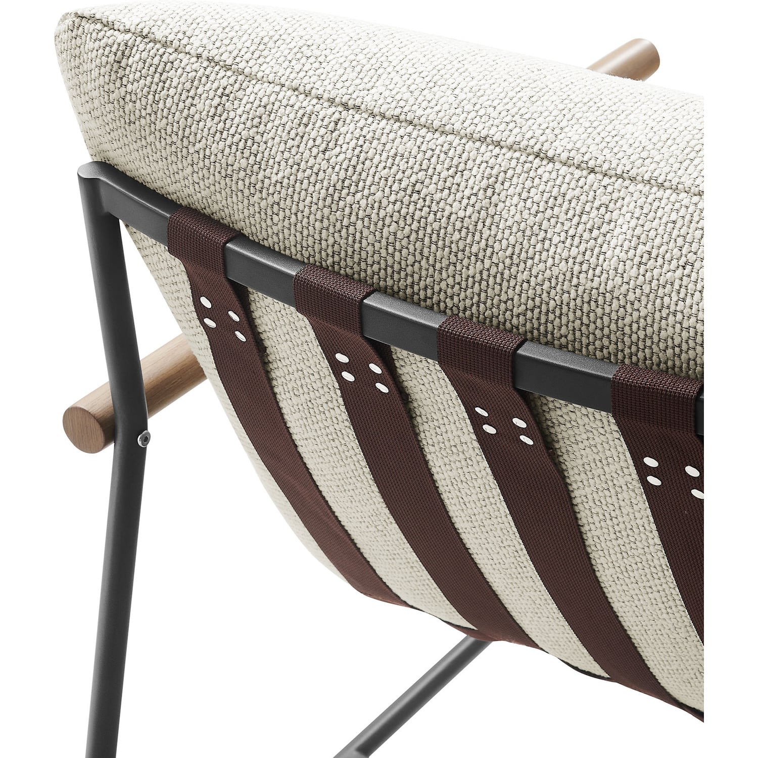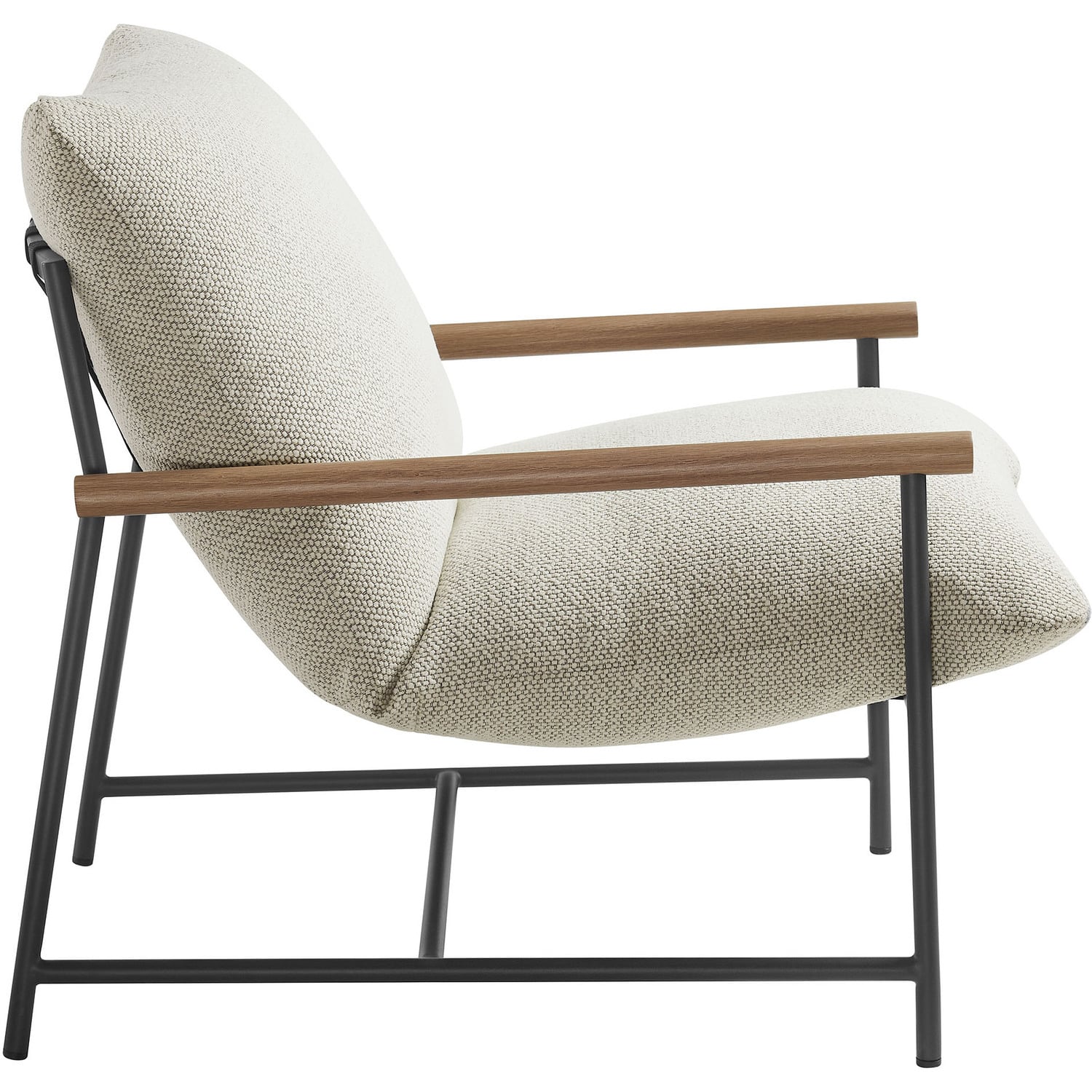 Sink into relaxation with the Raya Outdoor Sling Chair, where contemporary style meets laid-back lounging. Built with a durable powder-coated aluminum frame and beautifully crafted faux wood arms, Raya merges reliable durability with a clean, stylish look for any outdoor patio. The plush, removable cushion is wrapped in all-weather nubby boucle fabric that’s both cozy and resilient, perfect for withstanding the elements. Supported by strong poly straps, this outdoor lounge chair gently cradles you, offering comfortable support that encourages leisurely lounging. Thoughtfully designed with non-marking foot caps to protect your floors, this cushioned boucle chair arrives fully assembled, setting the stage for relaxed lounging as soon as it’s out of the box. Sling Accent Chair Weight Capacity: 300 lbs.Powder-Coated Aluminum Frame