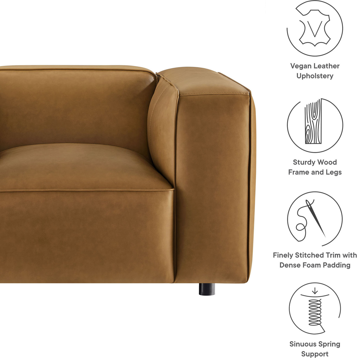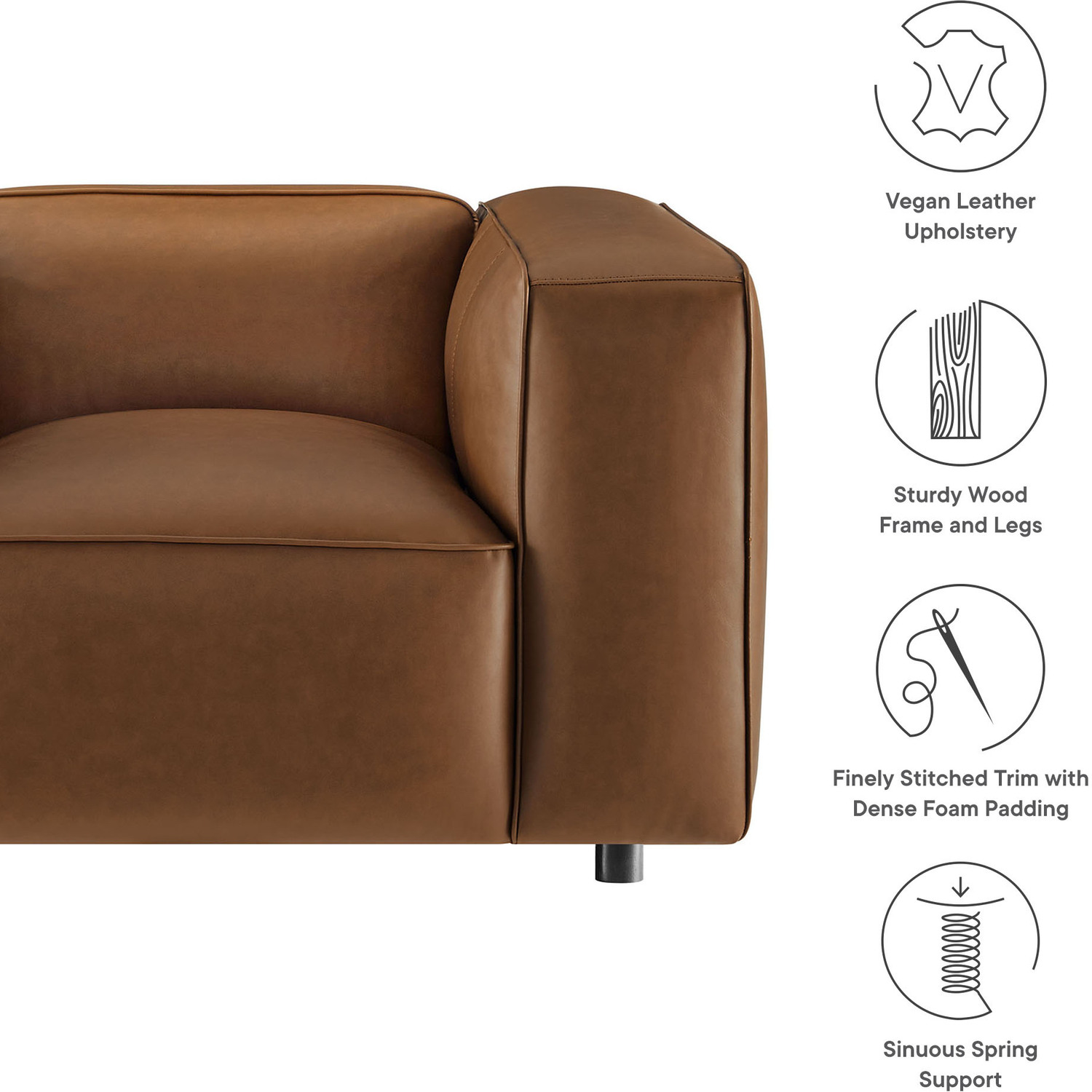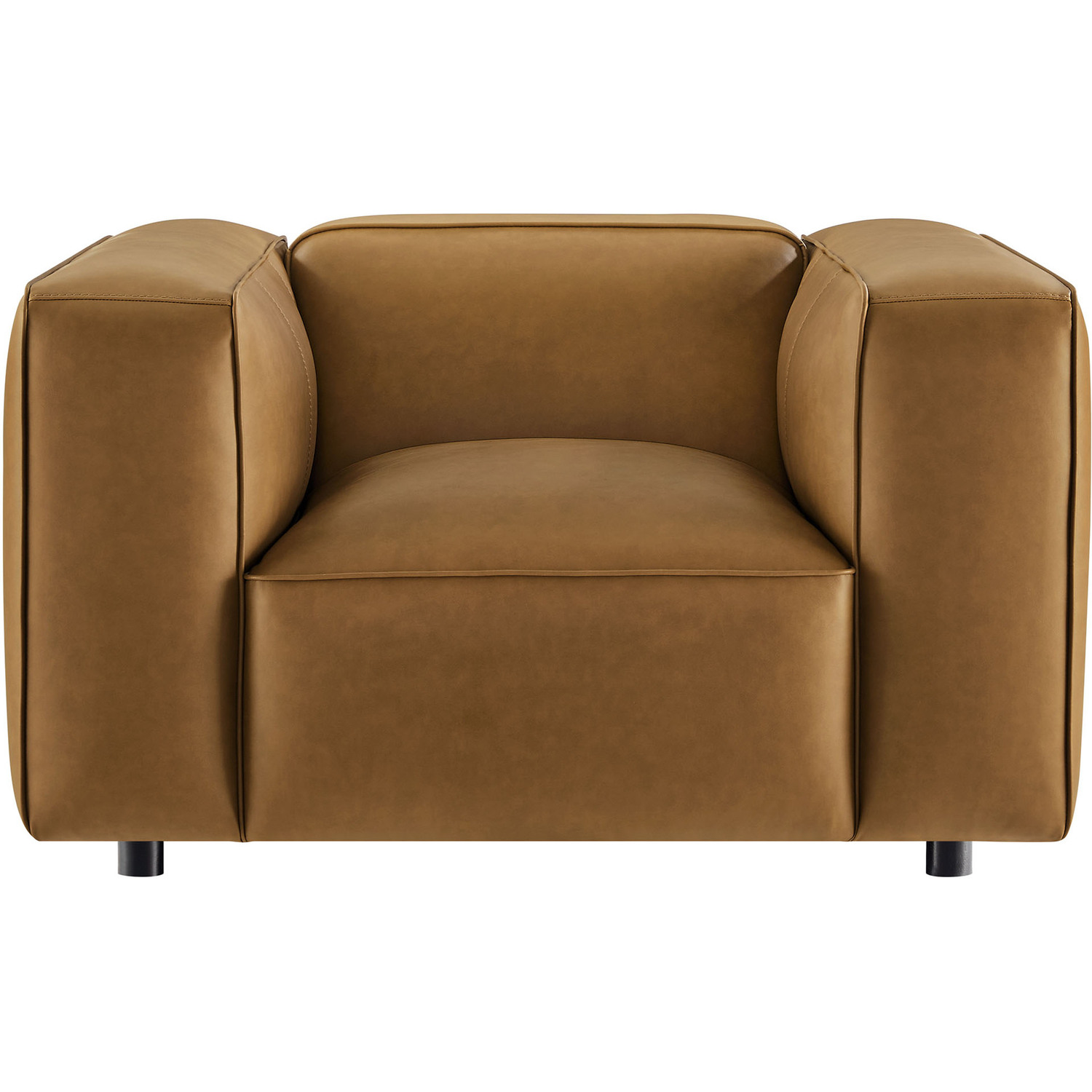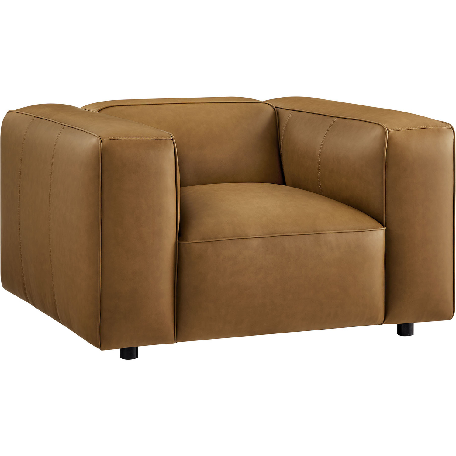 Make your living room feel instantly stylish with the low-key elegance of the Auren Vegan Leather Armchair. Wrapped in smooth, high-quality faux leather, this oversized accent chair blends effortlessly into different interior styles, offering subtle charm. The deep seating invites relaxation, while the low backrest and wide, cushioned armrests create a cozy yet modern aesthetic. Finely stitched trim along the seams adds a tailored finish, while the entire faux leather accent chair is generously padded with dense foam for a soft, supportive feel. Built on a sturdy wood frame, the Auren Club Chair features sinuous springs for firm, flexible seating that holds its shape. Plus, this single sofa chair ships fully assembled with just the legs to attach, so you can relax and enjoy it right out of the box. Whether placed alongside your current furniture or paired with other Auren sectional pieces, this faux leather modular armchair offers versatile styling options to complete your space. Weight Capacity: 800 lbsVegan Leather Upholstery