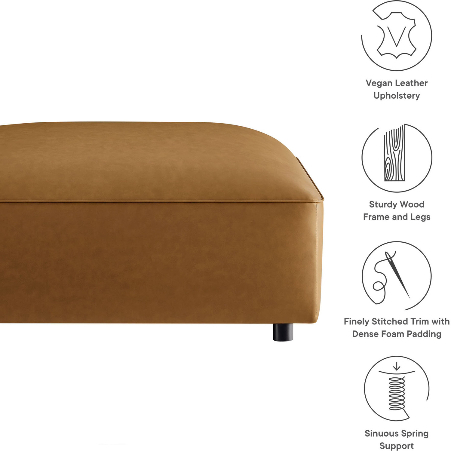 Make your living room feel instantly stylish with the low-key elegance of the Auren Vegan Leather Ottoman. Wrapped in smooth, high-quality faux leather, this ottoman blends effortlessly into different interior styles, offering subtle charm. The spacious top offers a comfortable spot to rest your feet or serve as extra seating, while its sleek design blends seamlessly with modern decor. Finely stitched trim along the seams adds a tailored finish, while the overstuffed ottoman’s dense foam padding provides a soft, supportive feel. Built with a sturdy wood frame, the Auren Square Ottoman offers firm, flexible support, whether you're kicking up your feet or using it as an upholstered coffee table. Plus, this vegan leather ottoman ships fully assembled with just the legs to attach, so you can relax and enjoy it right out of the box. Whether placed alongside your current seating or paired with other Auren pieces, this footstool ottoman offers versatile styling options to complete your space. Weight Capacity: 800 lbs.Vegan Leather Upholstery