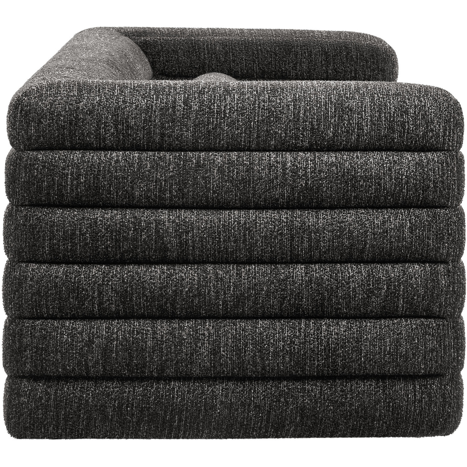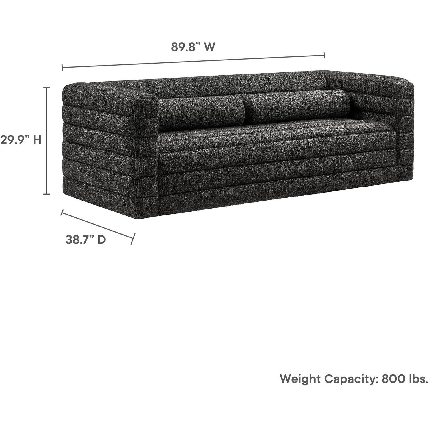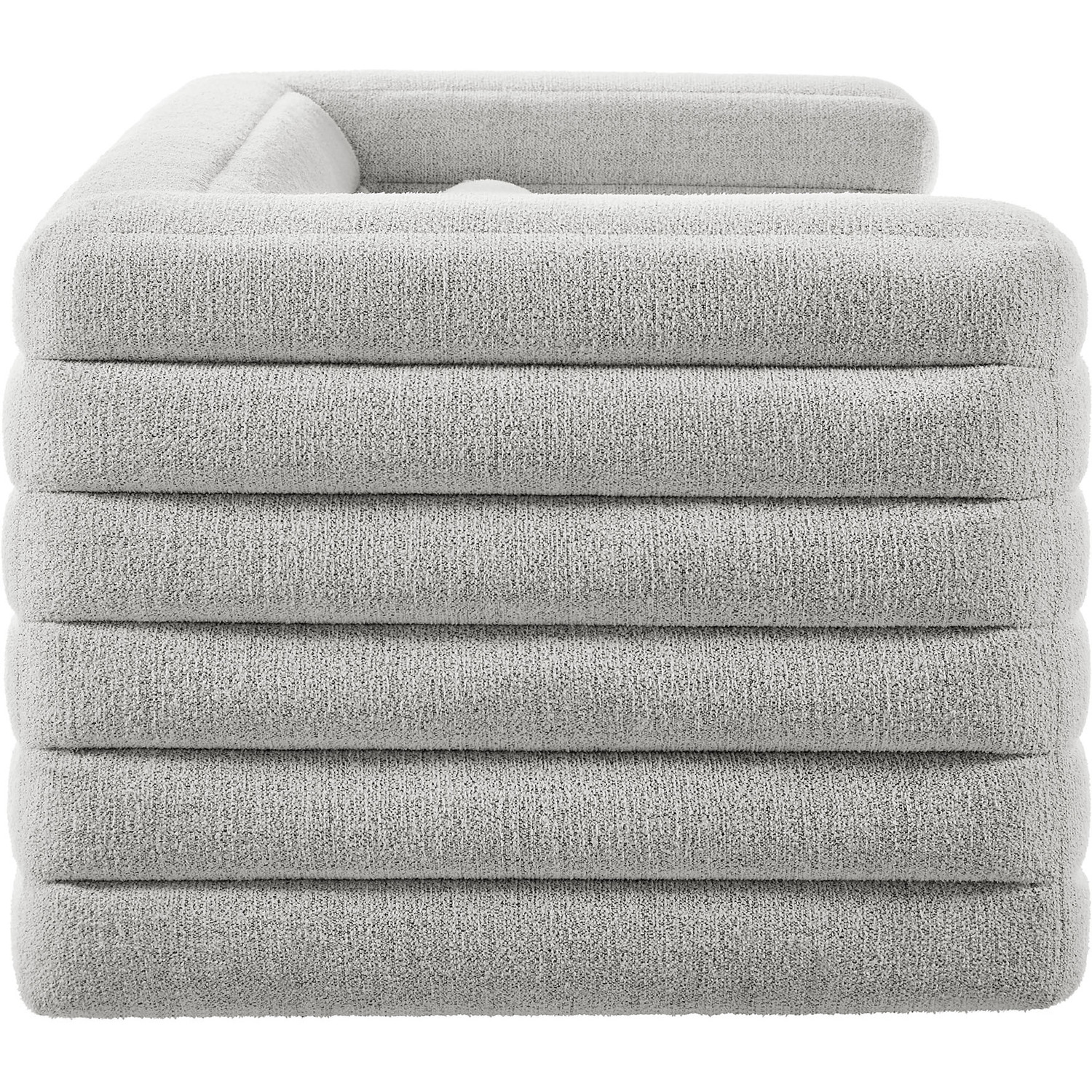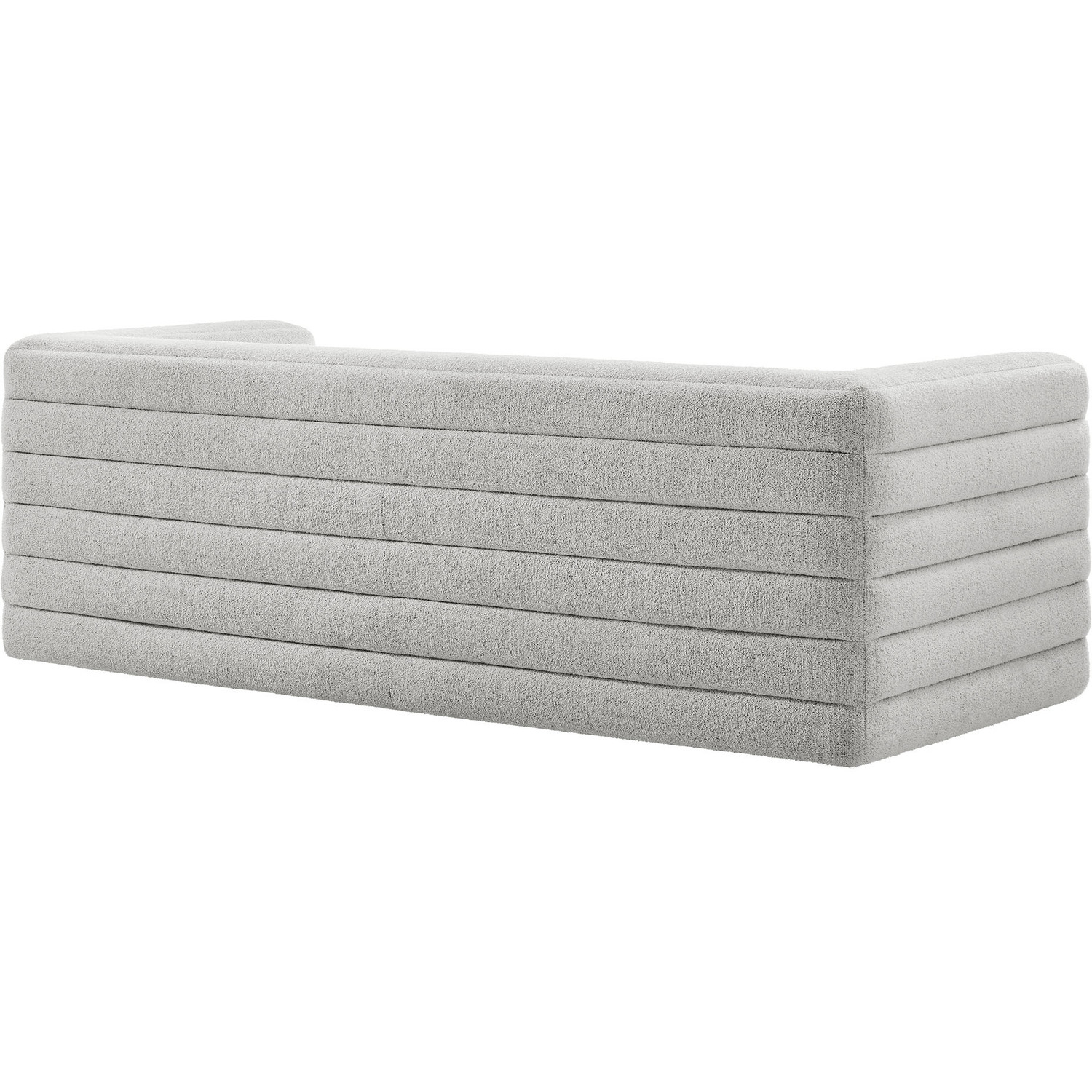 Assembly RequiredOne - Relle Channel Tufted Boucle Upholstered SofaAssembly Required: YIs a Set: NStackable: NCountry: USBox 1 x 1: 91"L x 40"W x 30"H
