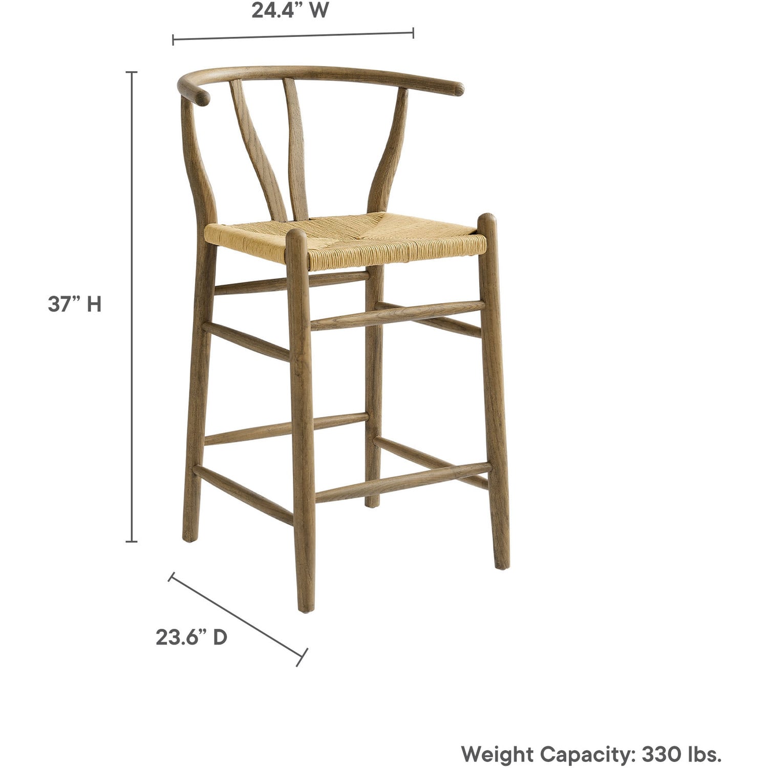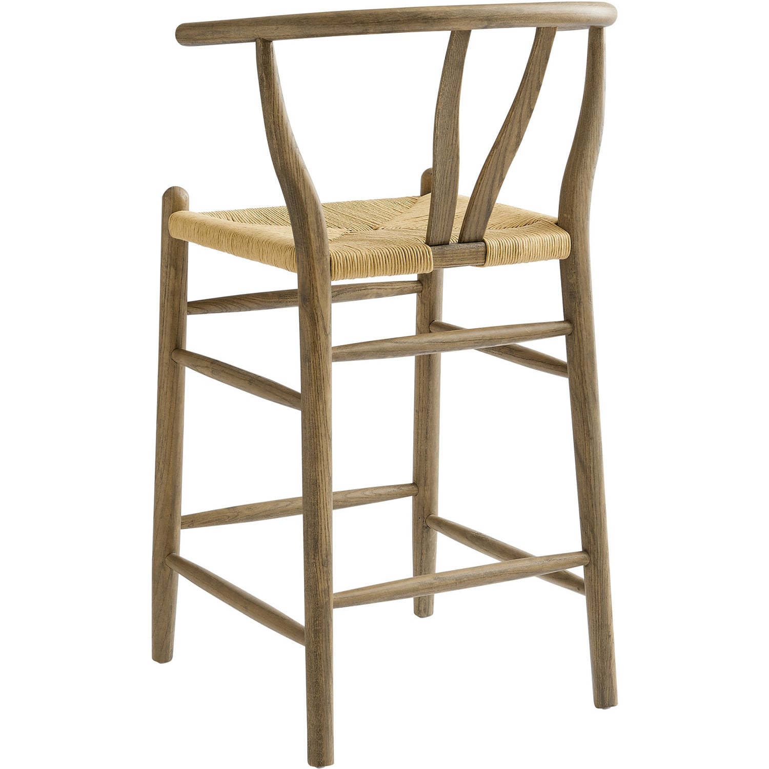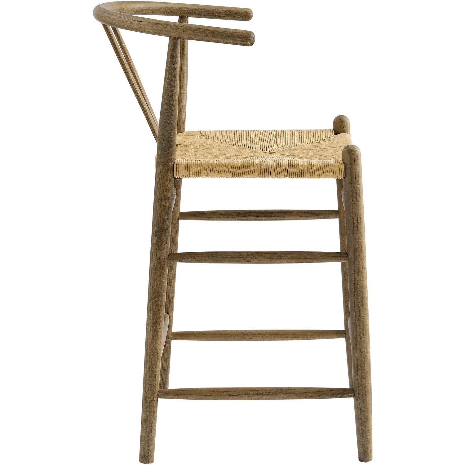 Rustic lines form the flowing frame of the Amish Wooden Counter Stool. Set with a mid-century style, this counter height chair combines minimalist aesthetics with natural details, bringing beauty to your bistro and kitchen island. Featuring an elm wood frame with a curved half moon backrest that dips into a distinctive V-shaped cutaway, this counter stool follows a classic retro chair design. Its woven paper rope seat complements the solid wood construction, making this modern counter stool perfect for your living room, lounge, bistro, café, or bar area décor. Arriving fully assembled, the Amish mid-century counter stool features an ergonomic design with foot bar supports, offering both comfort and farmhouse style for long-lasting enjoyment. Modern Stool Weight Capacity: 331 lbsElm Wood Counter Height Stool