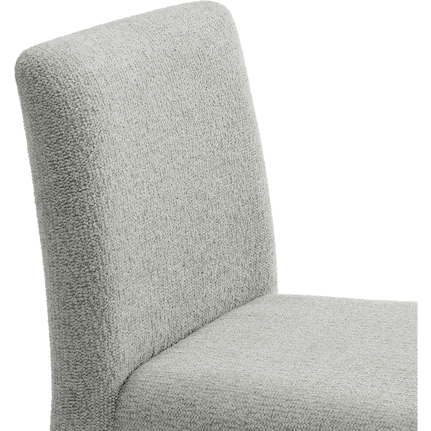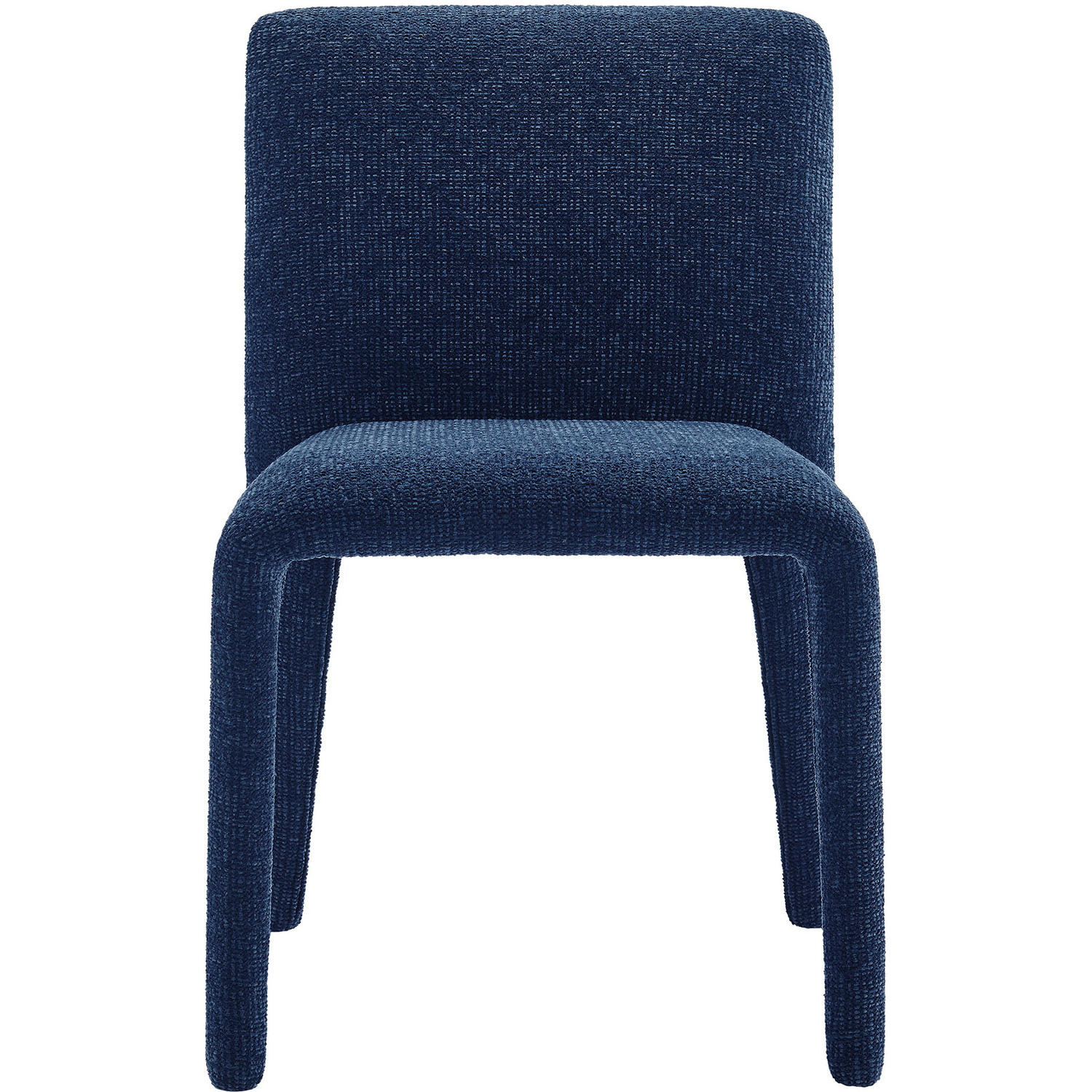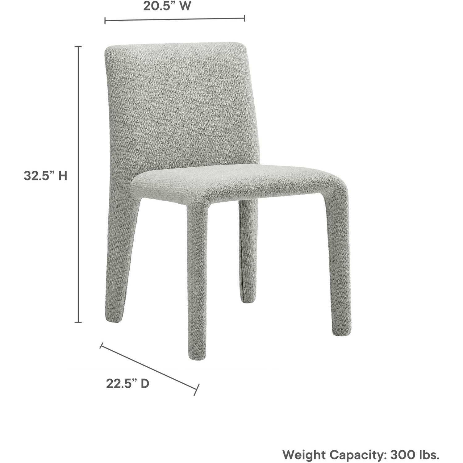 Bring an understated sophistication to your dining or living space with the Rhodes Dining Chair. Fully wrapped in soft, textured chenille fabric—including the legs—this modern accent chair exudes sleek elegance. The dining side chair's fully upholstered minimalist design features a high square backrest with subtly rounded edges and a padded seat for exceptional comfort. Made from recycled plastic bottles, the upholstery fabric is also OEKO-TEX® STANDARD 100 Certified. Perfectly suited as a side chair, desk chair, or as a living room accent chair, Rhodes complements a variety of interiors, from contemporary to mid-century modern. Non-marking floor glides protect your floors, and this upholstered dining chair arrives fully assembled for effortless setup. Weight Capacity: 300 lbs.Fully Upholstered Dining Chair