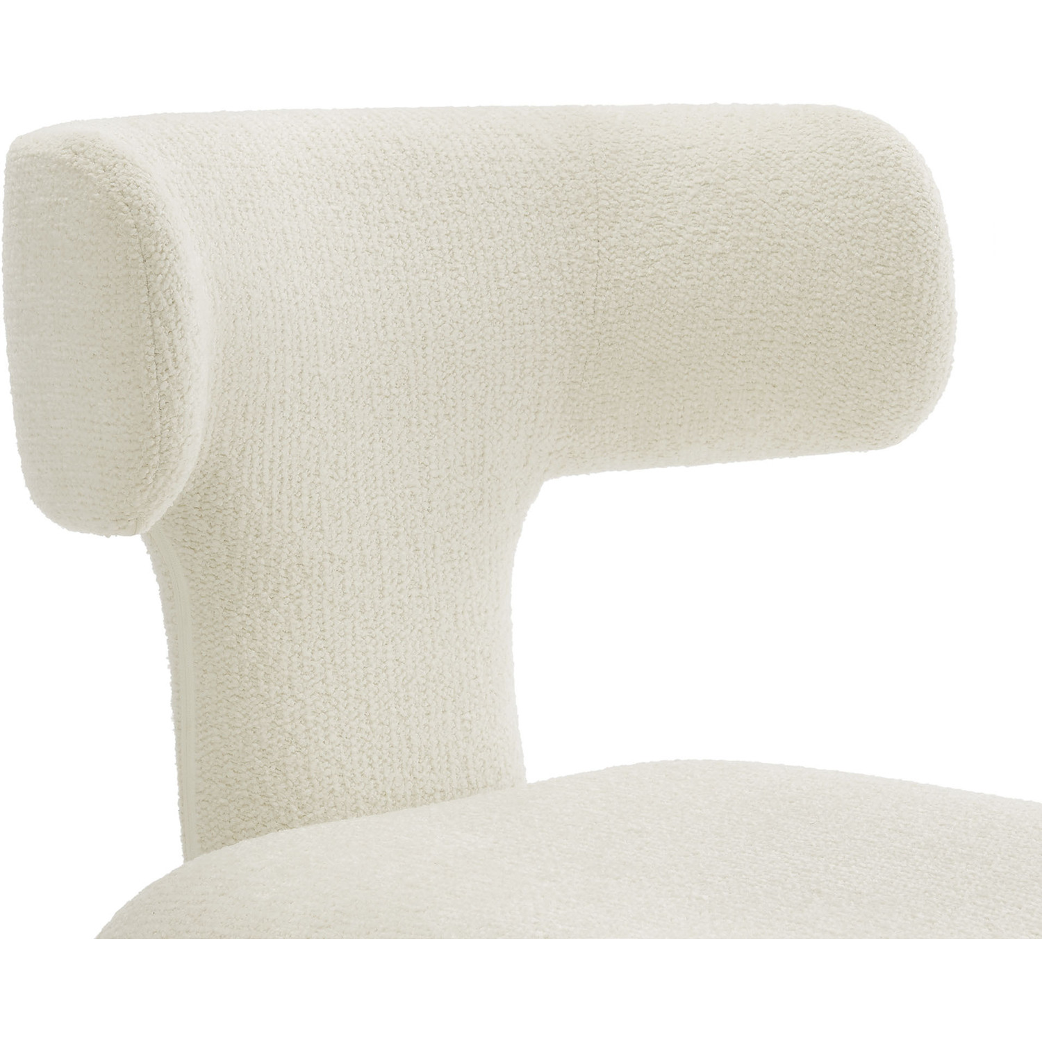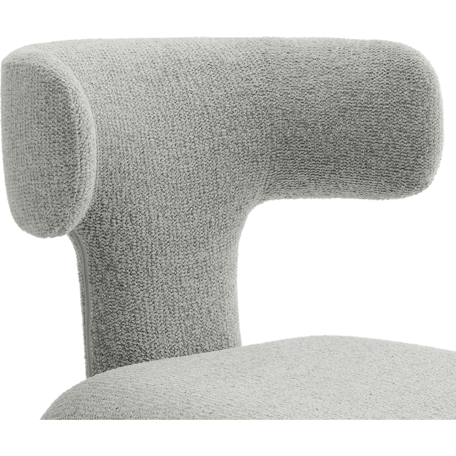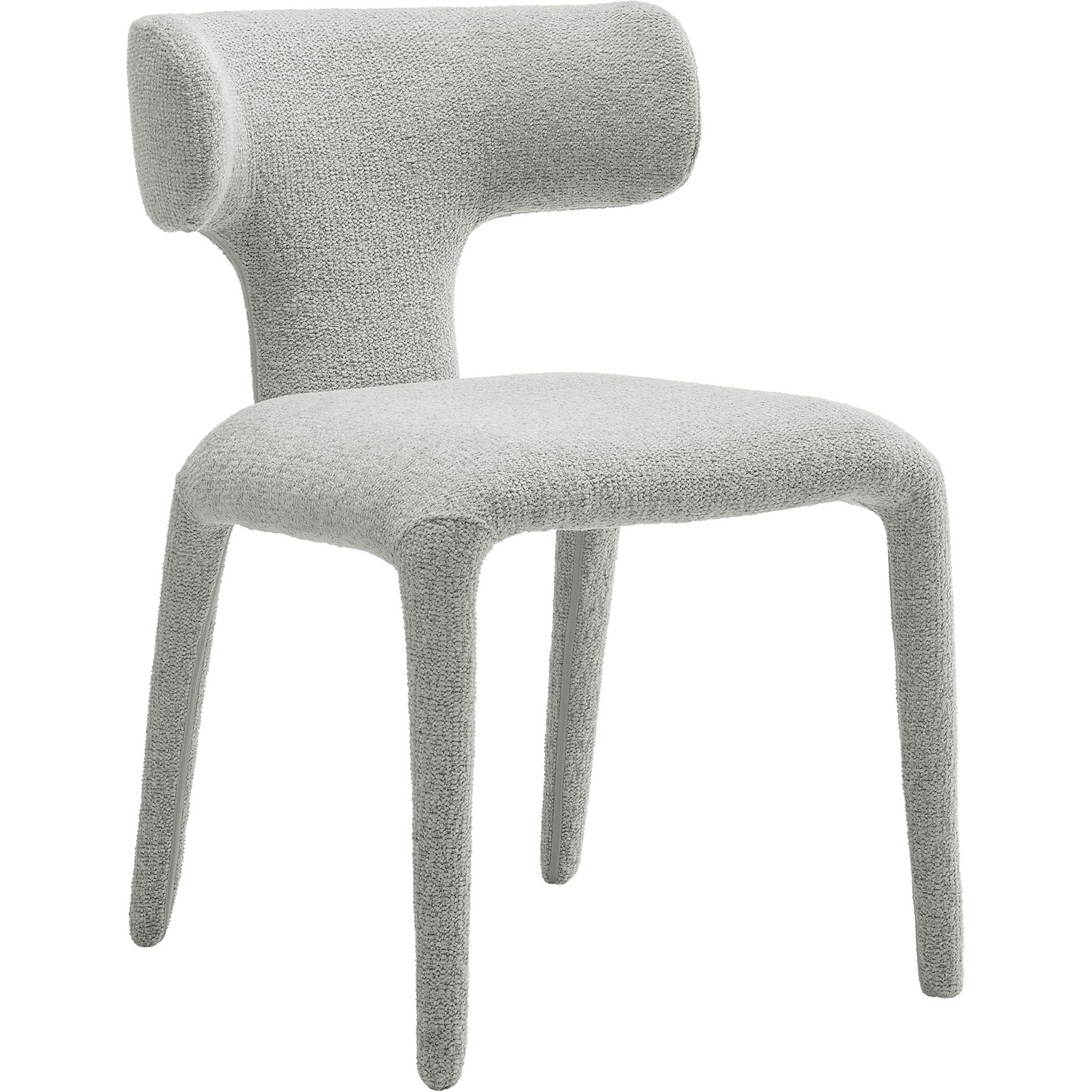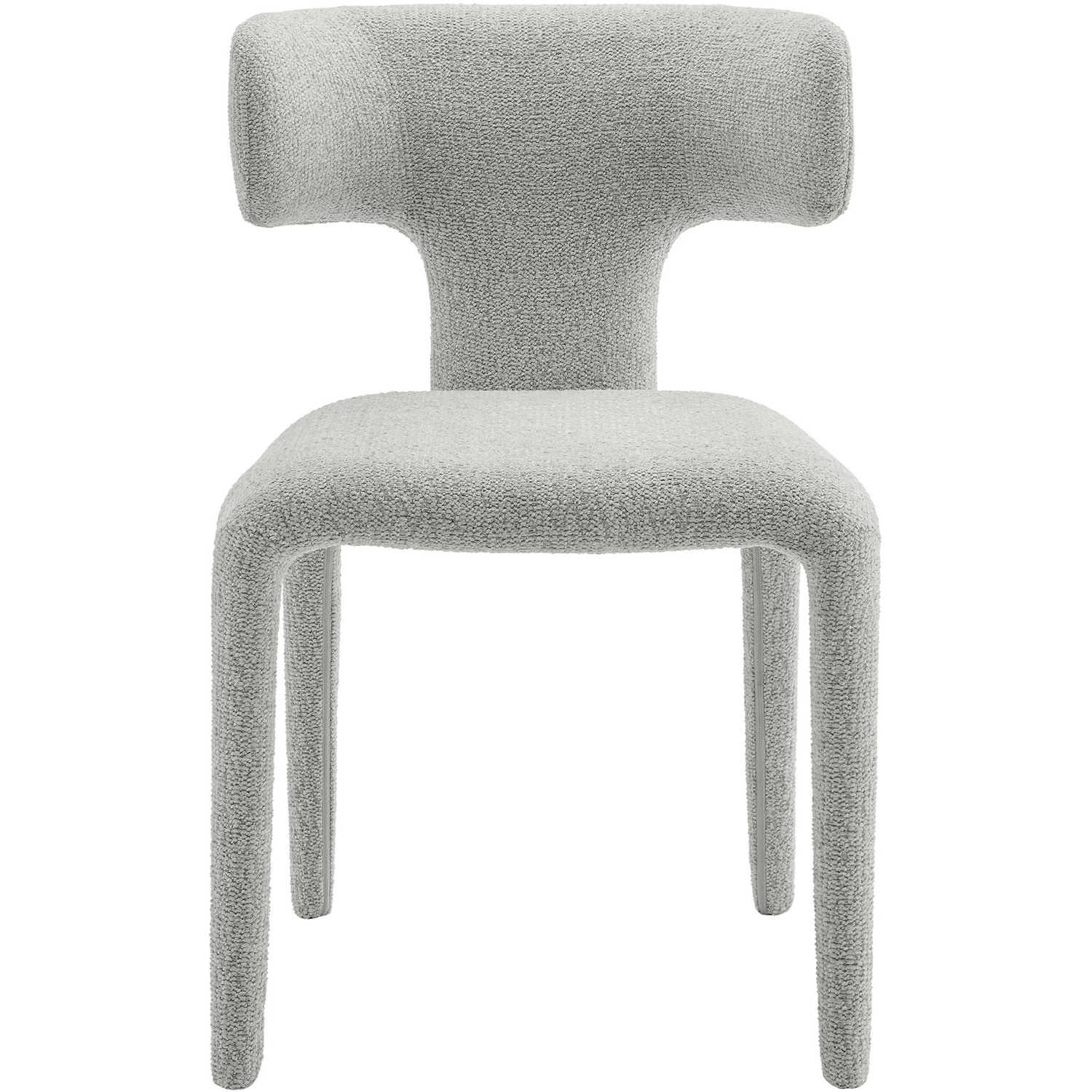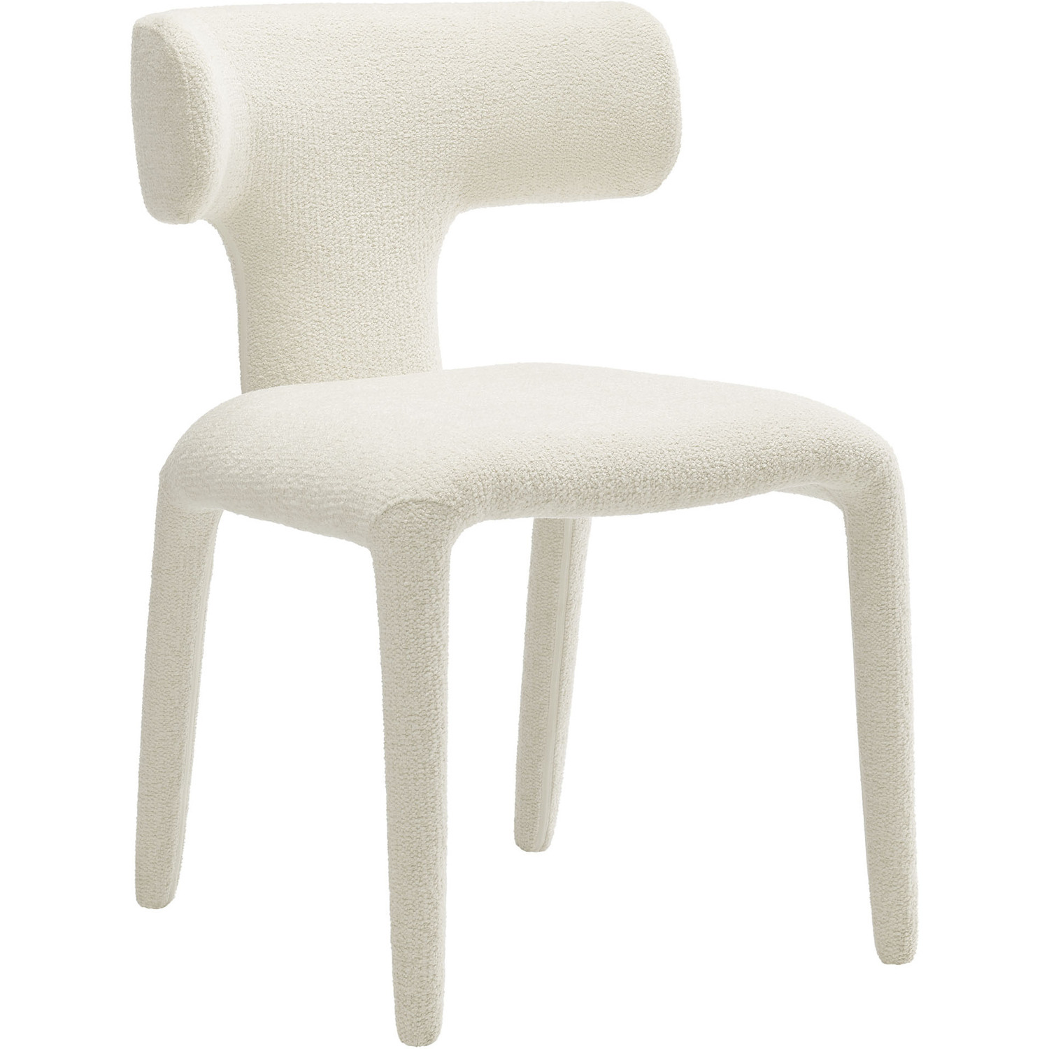 Introduce a sophisticated yet inviting charm to your dining or living area with the set of 2 Stellan Boucle Dining Chair. Fully covered in luxurious boucle fabric, this upholstered chair exudes cozy elegance with its textured depth and tactile appeal. Made from recycled plastic bottles, the upholstery fabric is also OEKO-TEX® STANDARD 100 certified. The curved back dining chair’s sculptural silhouette is defined with rounded edges and splayed back legs, creating a modern yet timeless profile. Built on a sturdy metal frame hidden beneath the plush padding, this boucle side chair balances form and function beautifully. Non-marking floor glides protect your floors. Perfect as an armless dining chair, accent chair, or even a stylish guest or desk chair, Stellan is a versatile addition to any contemporary or modern space. Weight Capacity: 300 lbs.Fully Upholstered Dining Chair