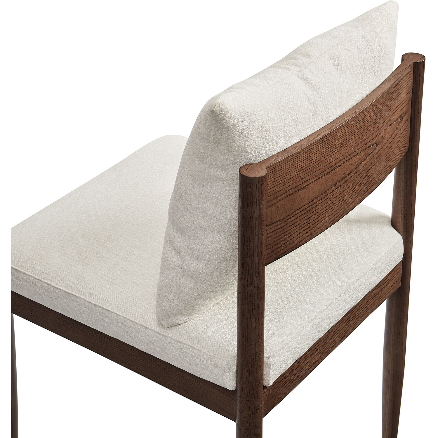 Blending modern elegance with timeless craftsmanship, the Remington Wood Dining Chair offers a refined seating experience. This armless dining chair features a solid elm wood frame with a rich finish, showcasing clean lines and an open back design The foam-padded seat and removable back pillow are wrapped in a slub weave fabric, adding texture and comfort to dining, kitchen, or living spaces. Tapered legs bring a Scandinavian touch, while non-marking foot glides protect floors. Whether as a dining room chair, upholstered side chair, or accent chair, Remington’s sophisticated design complements any contemporary setting. Arrives fully assembled. Weight Capacity: 300 lbs.Solid Elm Wood Frame