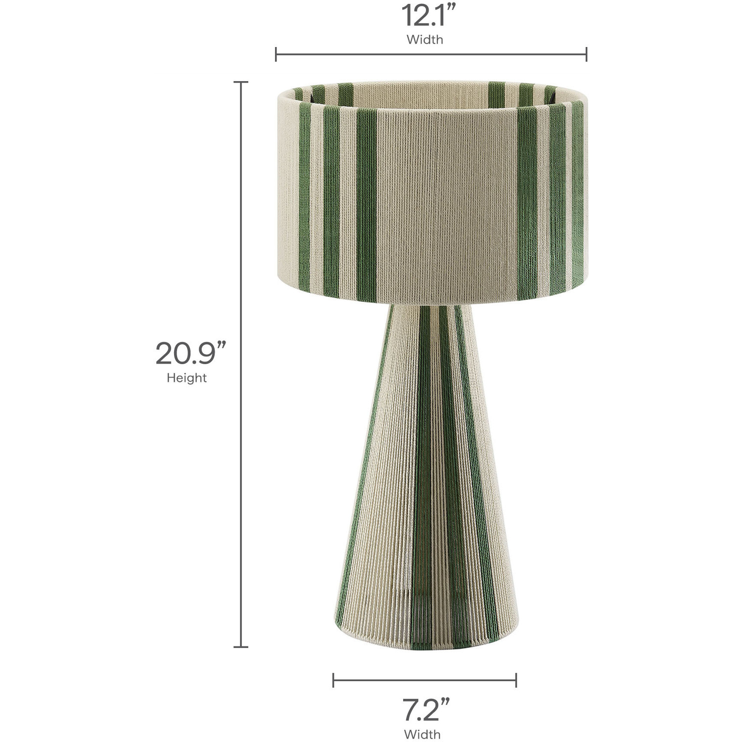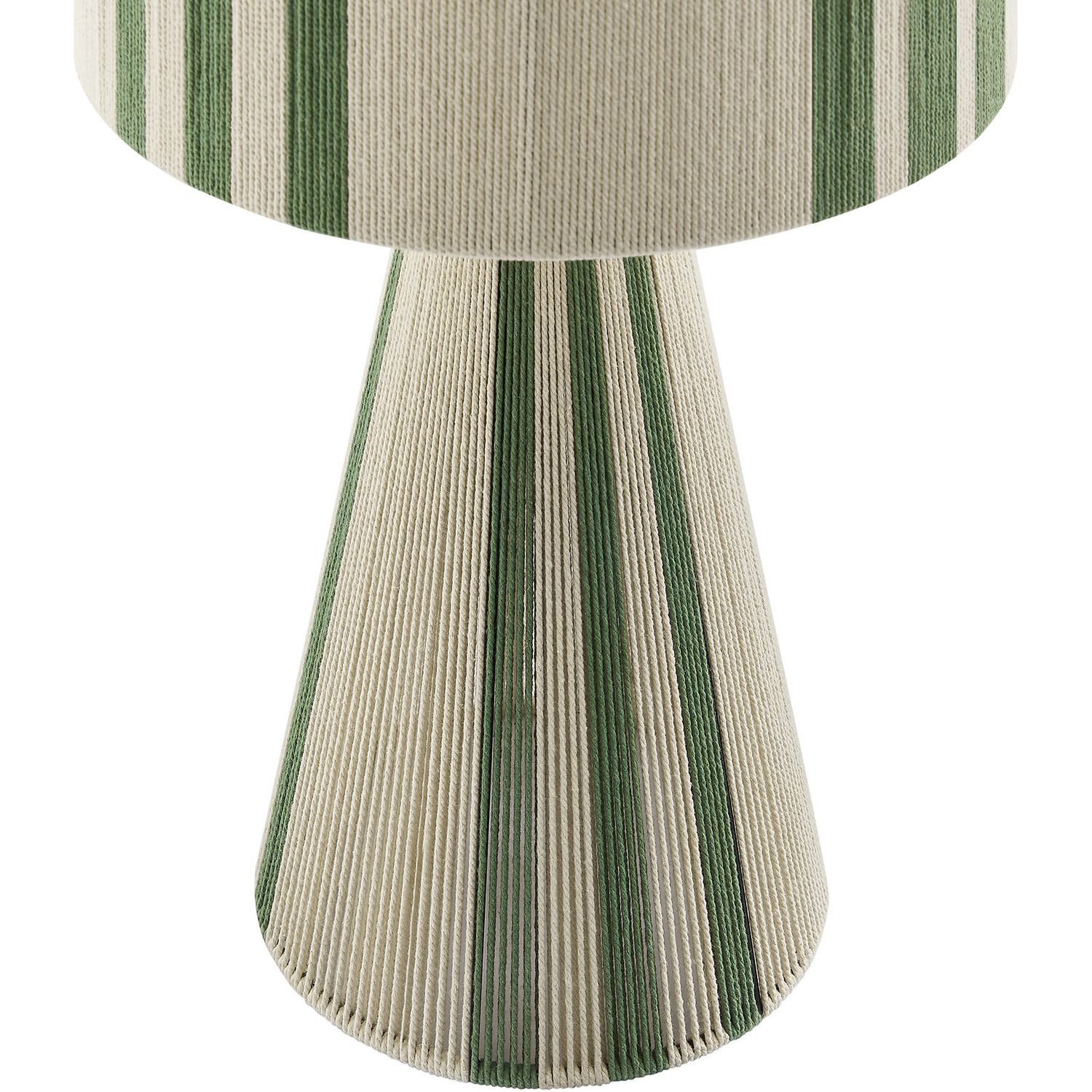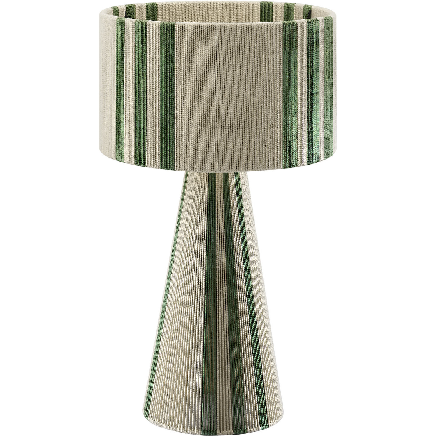 Add a stylish, modern touch to your space with the Gia Table Lamp. Featuring a bold striped design, or a plain natural rope design, this trendy lamp combines a powder-coated metal frame with a lamp shade and base made from hand-woven cotton thread, offering a chic, textured look. The repeating three-stripe pattern flows from the top of the shade to the pedestal bottom, creating a balanced, continuous pattern. Gia also comes in a plain, natural weave with no stripes for the minimalist design lover. This retro table lamp fits beautifully in contemporary European or boho style interiors, bringing an Iberian flair or Moroccan vibes to any room. UL listed, the Gia Cotton Table Lamp requires a single E26 20W bulb (not included) and features an 83" canvas color power cord, with the switch conveniently located on the inside of the lamp. Ideal as a cozy side table lamp or a unique entryway lamp, Gia arrives fully assembled and brings bohemian-inspired elegance to your home decor.Hand-Woven Cotton Thread