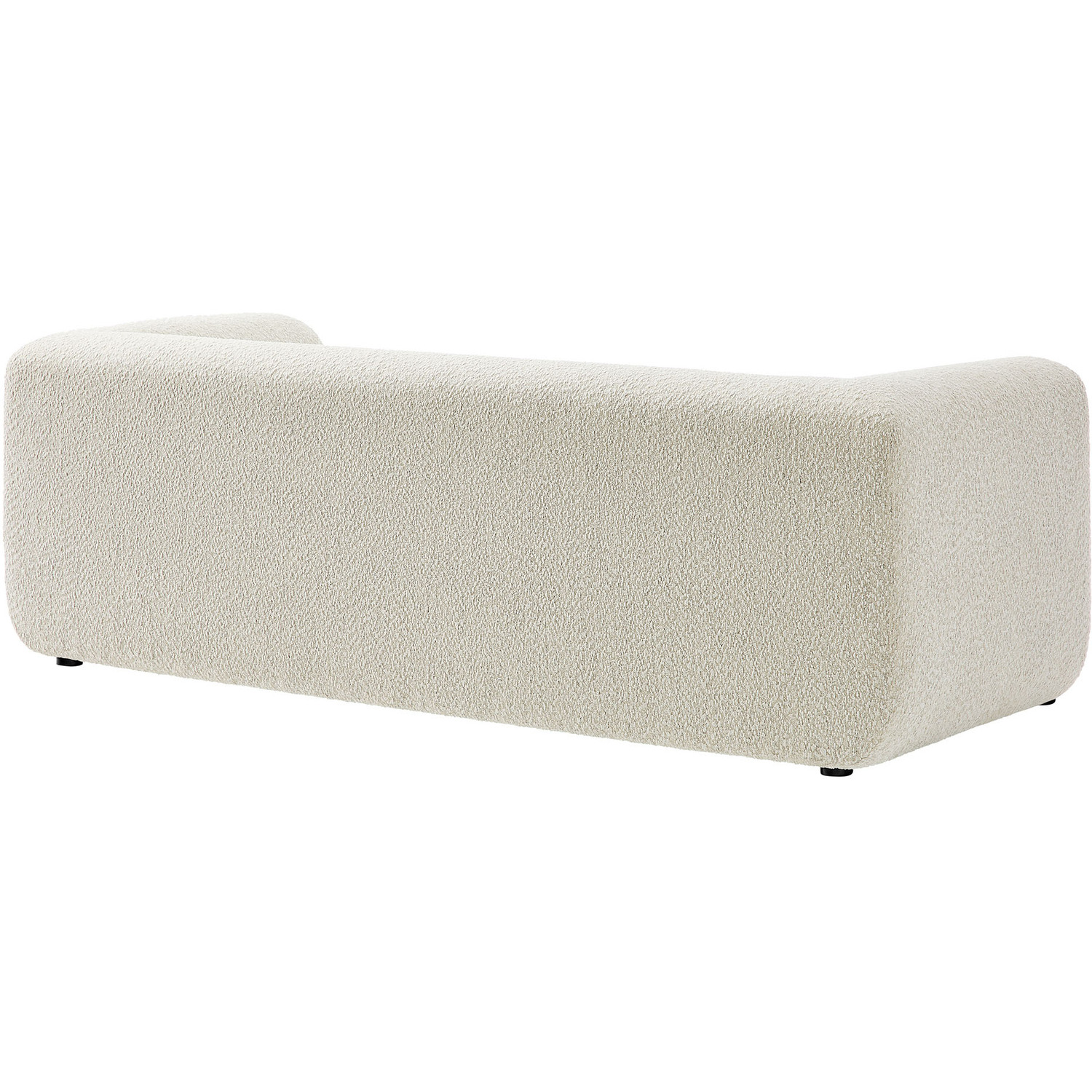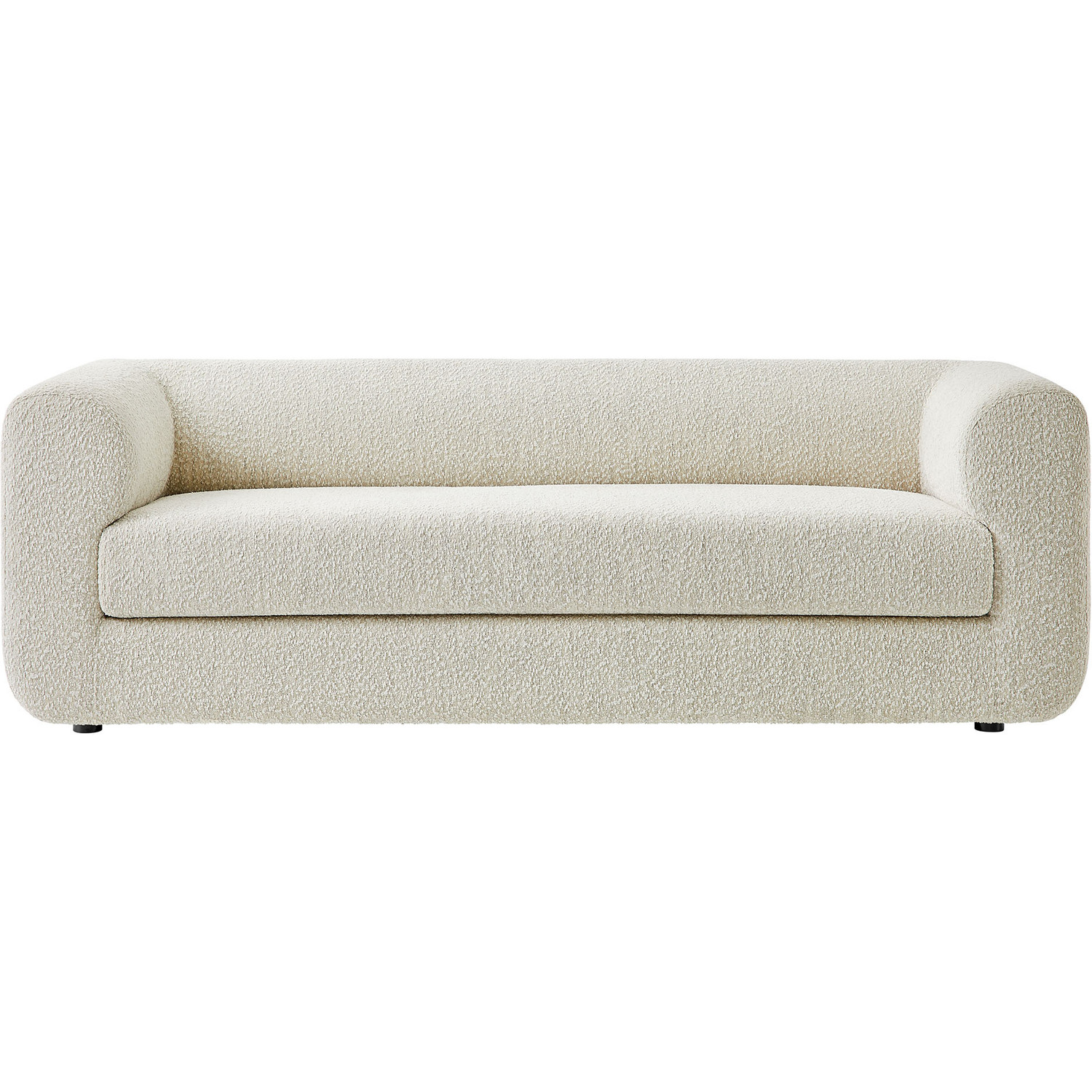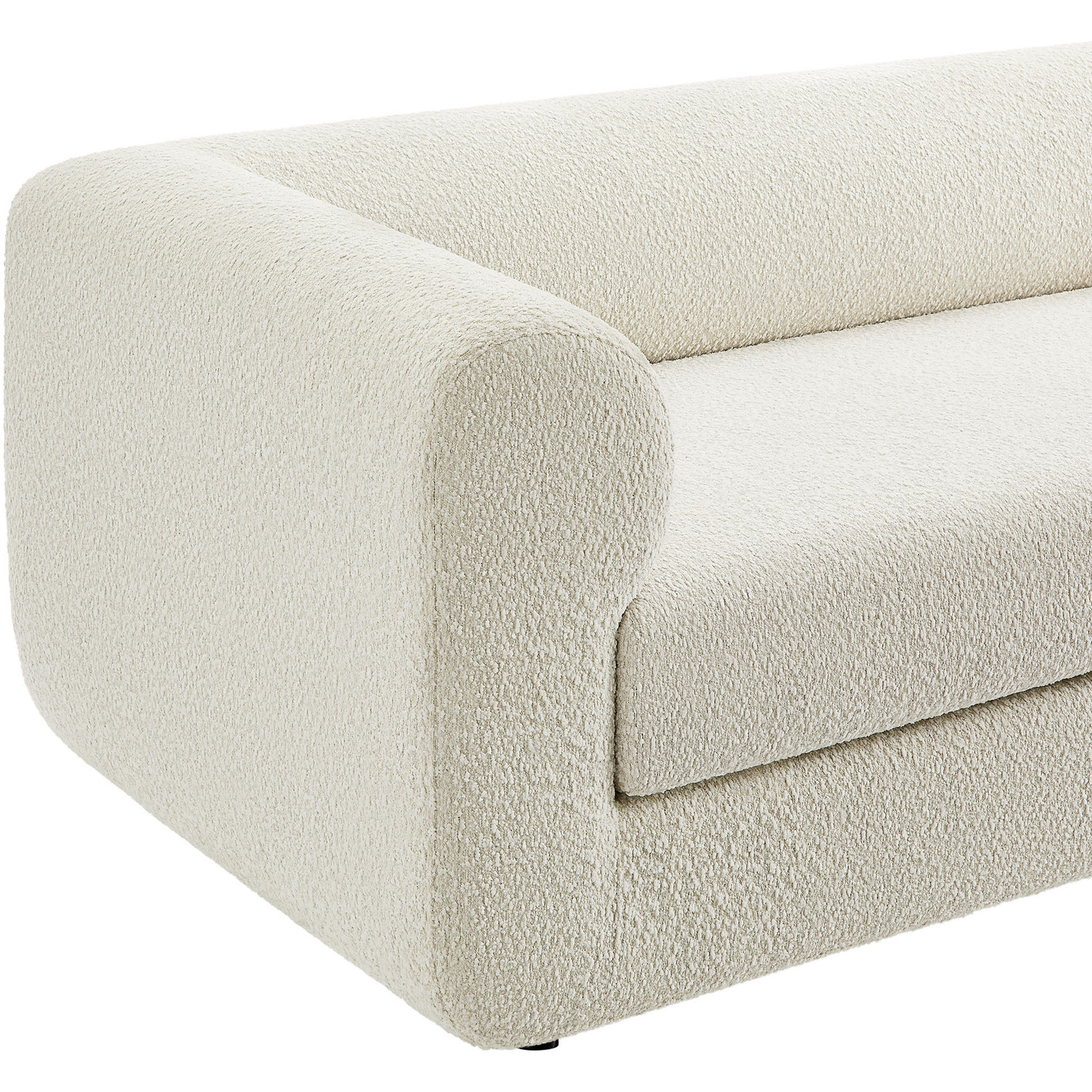 Sleek, sculptural, and effortlessly modern, the Leif Boucle Sofa makes a refined statement with its updated tuxedo silhouette and plush boucle fabric upholstery. Designed for both style and comfort, this 89-inch oversized boucle couch features a roll-arm frame that blends into the supportive backrest at the same height, giving it a structured yet inviting presence. A deep bench seat on this modern sofa offers ample space for lounging, while its foam padding and sinuous spring support provide lasting comfort. The low-profile sofa design rests on subtle solid wood legs, making this teddy sofa a chic focal point in living rooms, offices, or lounges. Fully assembled and ready to elevate your space. Weight Capacity: 800 lbs.Boucle Fabric Upholstery