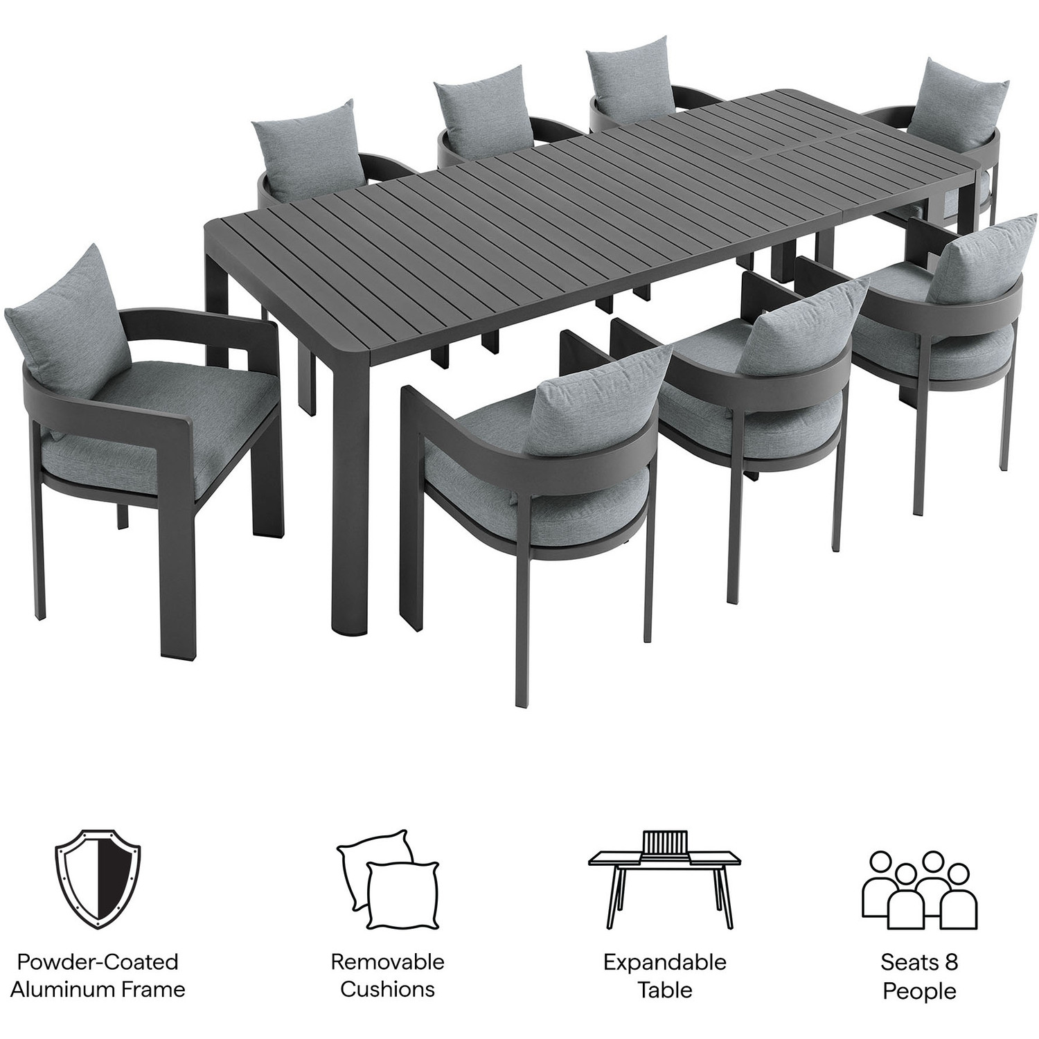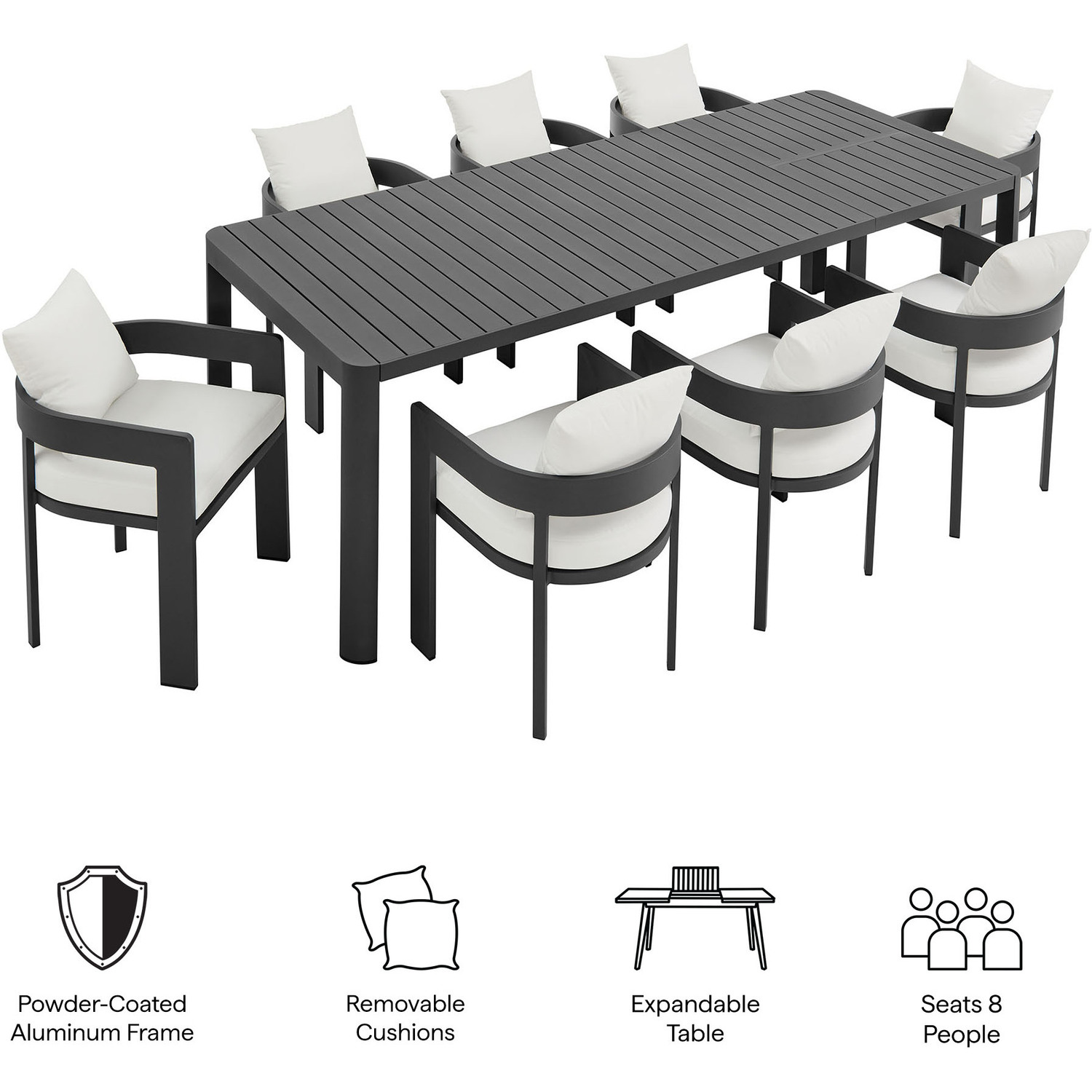 Modway Furniture Tahoe 9-Piece Outdoor Patio Aluminum Dining Set With Extendable Table by Modway, 889654181880, EEI-7295