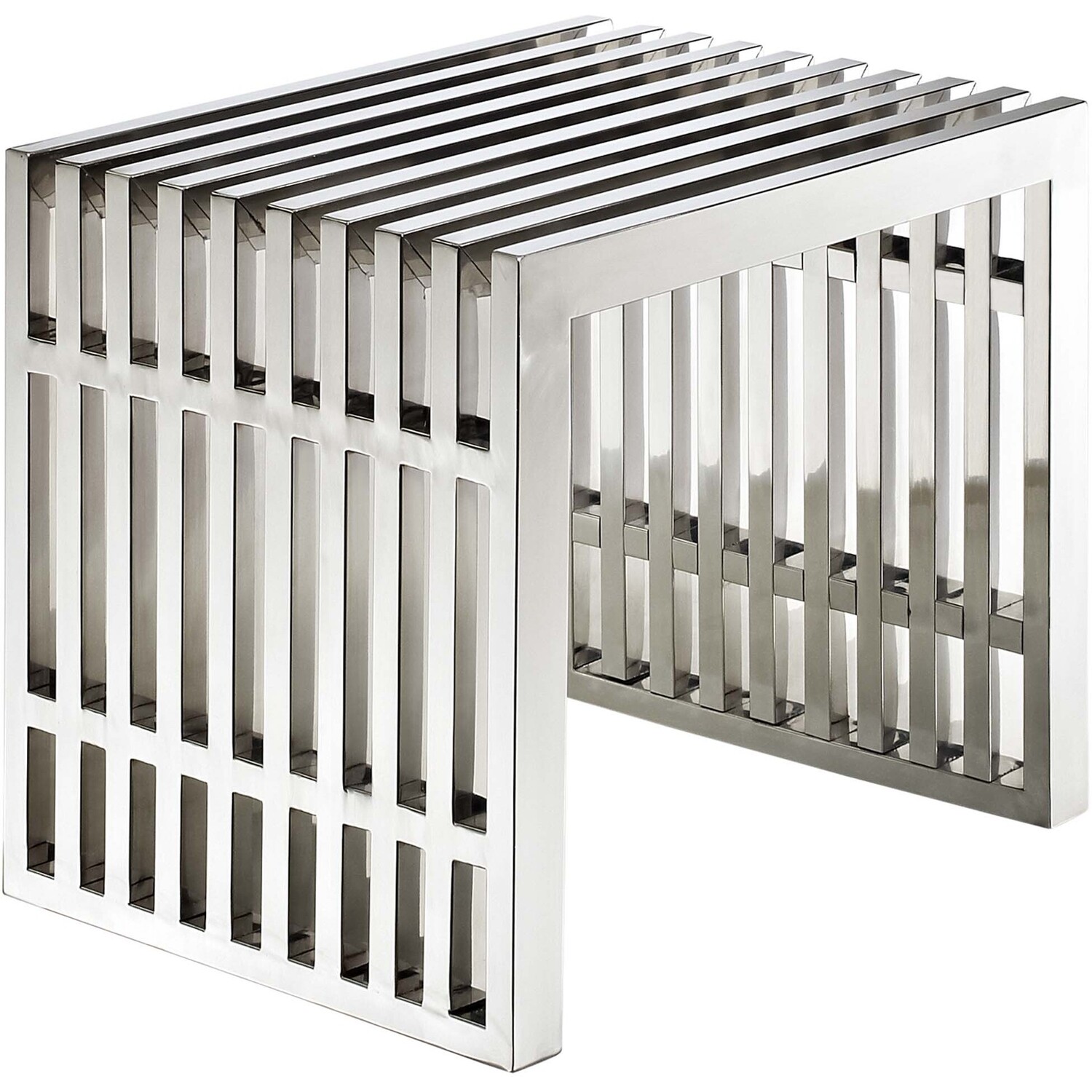 Silver rivers of laughter race back and forth in this high energy modern piece. Gridiron's sleek stainless steel bench contains a message of transformation and metamorphosis. Exuberance abounds as the strategic placement of this piece will radiate a happy atmosphere.Short Bench: Stainless Steel
