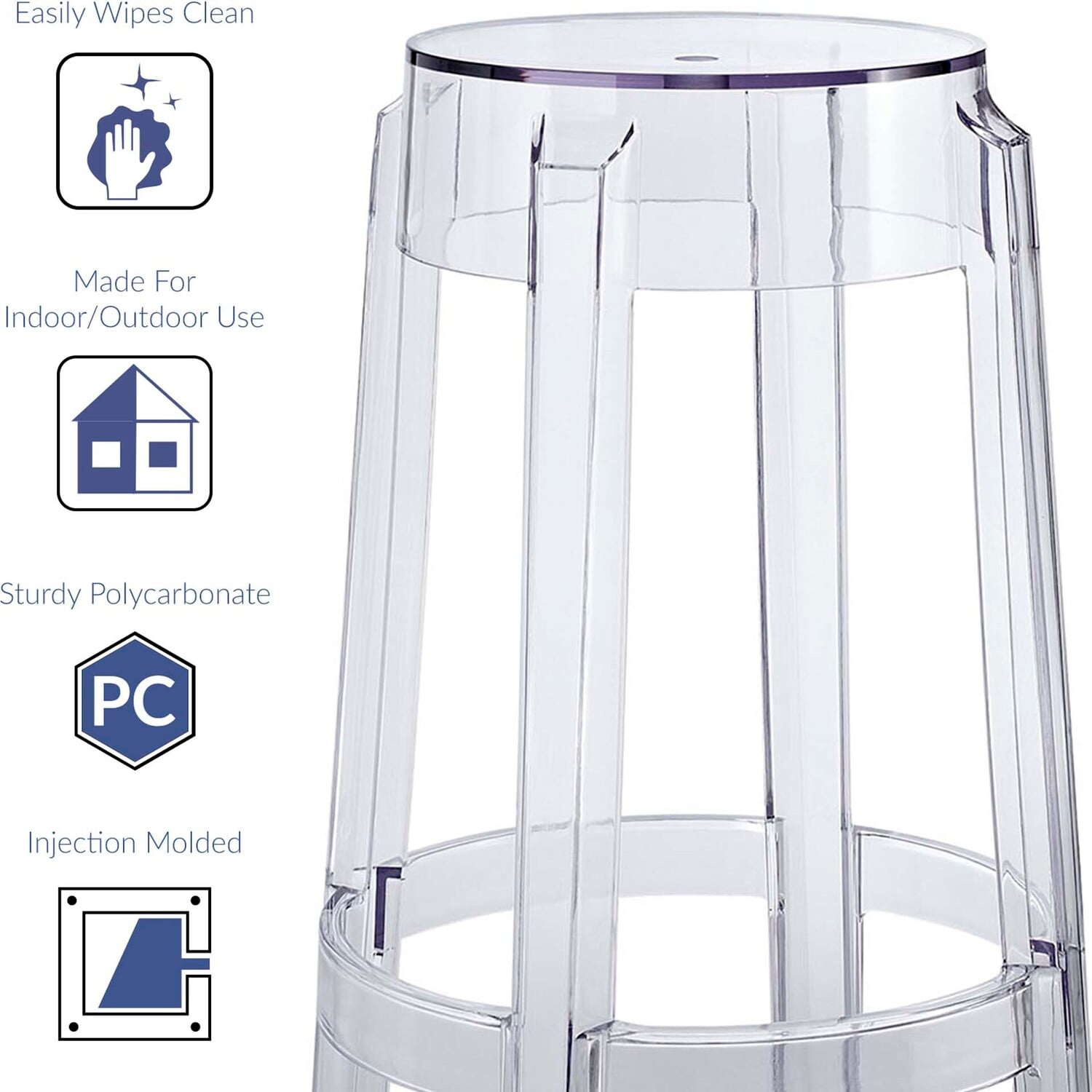 The silhouette-inspired design of this counter stool is a sure attention grabber that coordinates with any color scheme. Constructed from transparent acrylic, this stunner includes non-marking feet that protects sensitive floors and stabilizes the stool.Transparent Acrylic Construction