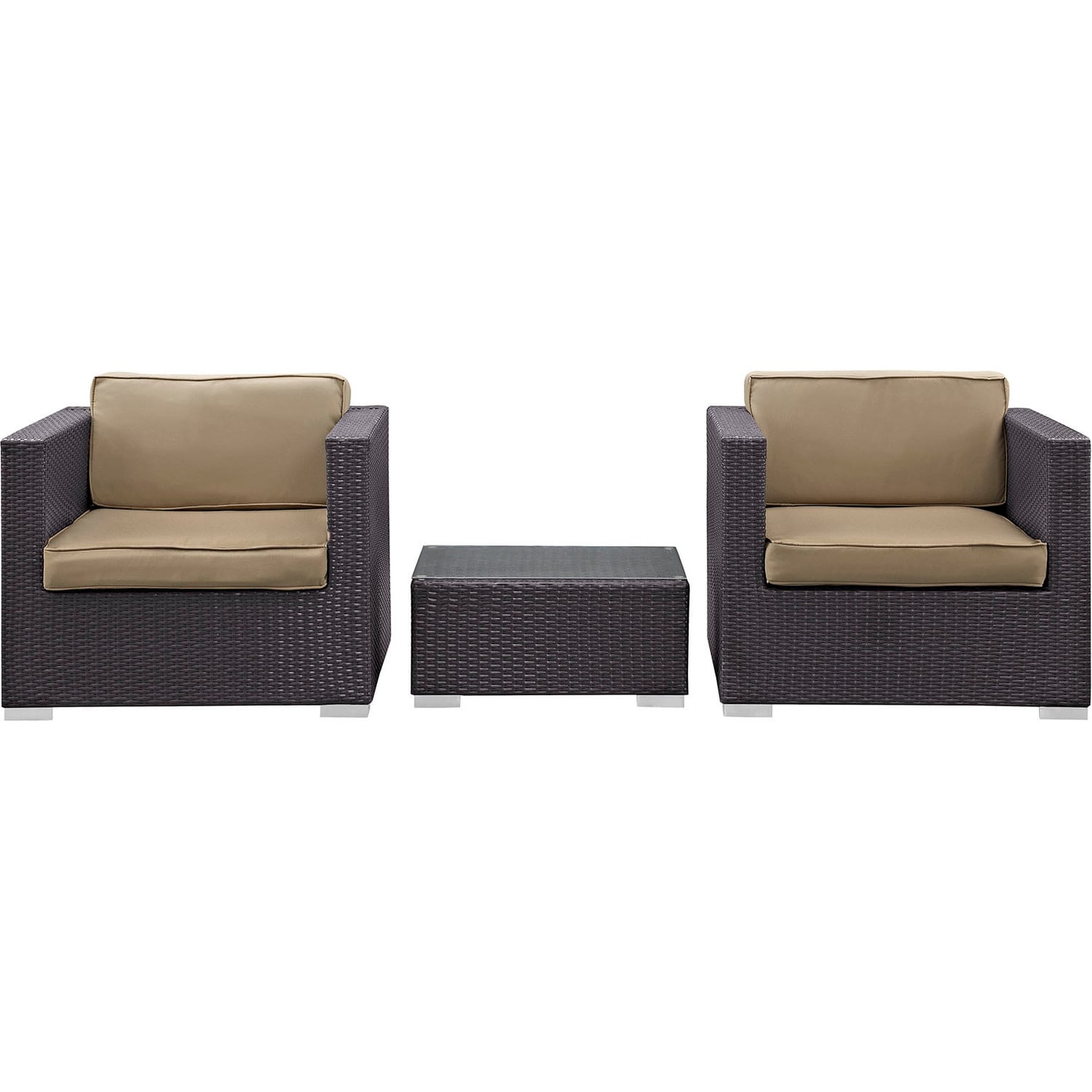 Enter your personal zone for two with the Burrow outdoor rattan patio set. Easily interchangeable to match the finer needs of your gatherings, Burrow delivers a confidental sphere for formal meetings or personal get-togethers. A tempered glass topped table is perfectly sized for electronic devices or fine dining for twoSynthetic Rattan Weave