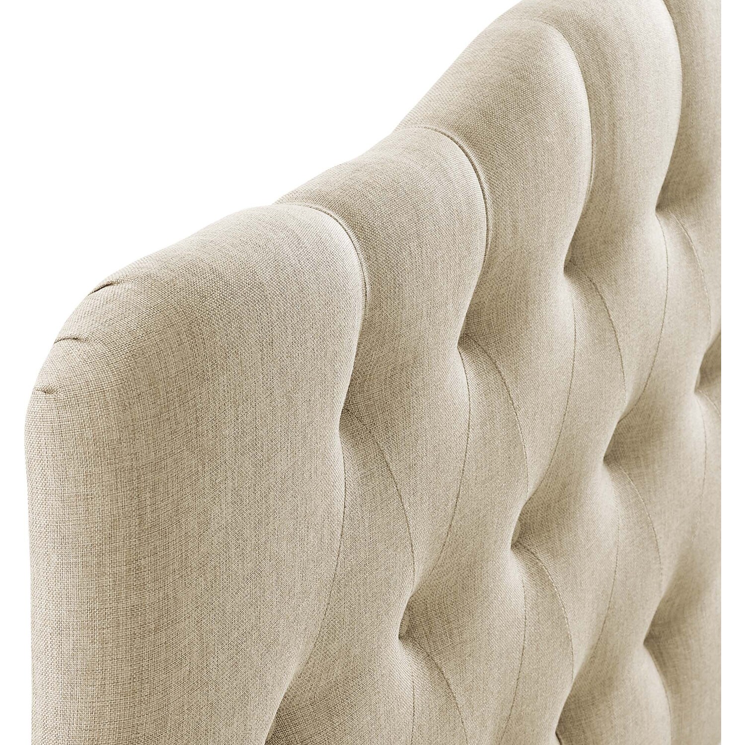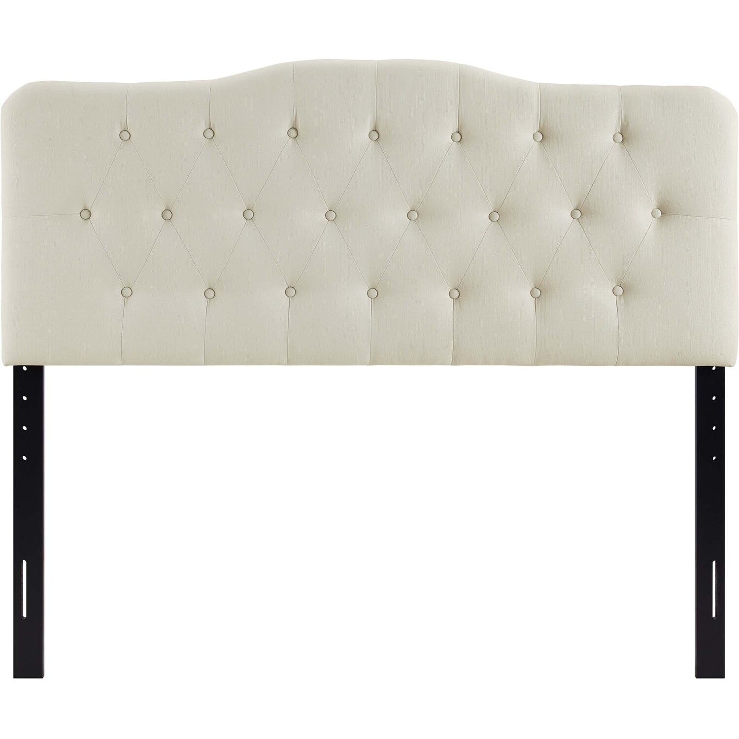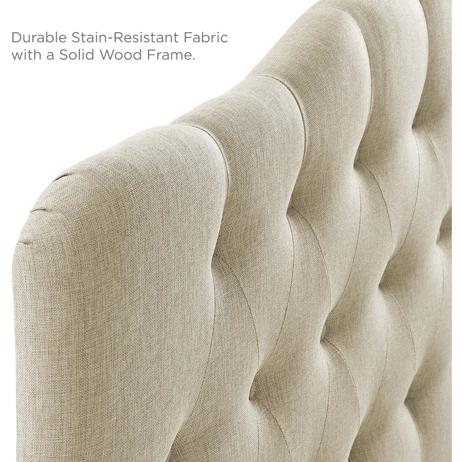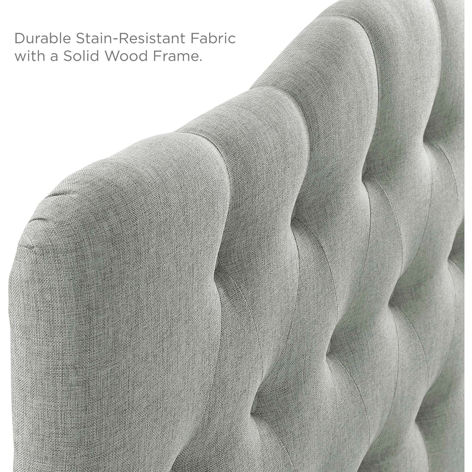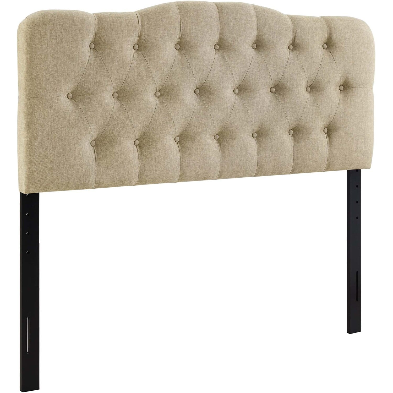 Instill soft tones and a meaningful design with the Modway Annabel Button Tufted Linen Fabric Upholstered Queen Headboard. Deep inset buttons adorn this magnificent centerpiece for your bedroom décor. Annabel Queen Headboard is made from fiberboard, plywood, and fine linen fabric upholstery for a construction that is both lightweight and long-lasting. Carefully crafted with flowing contours and a richly rewarding design, this striking headboard for queen beds transforms your sleeping space decor.Elegantly tufted button headboard