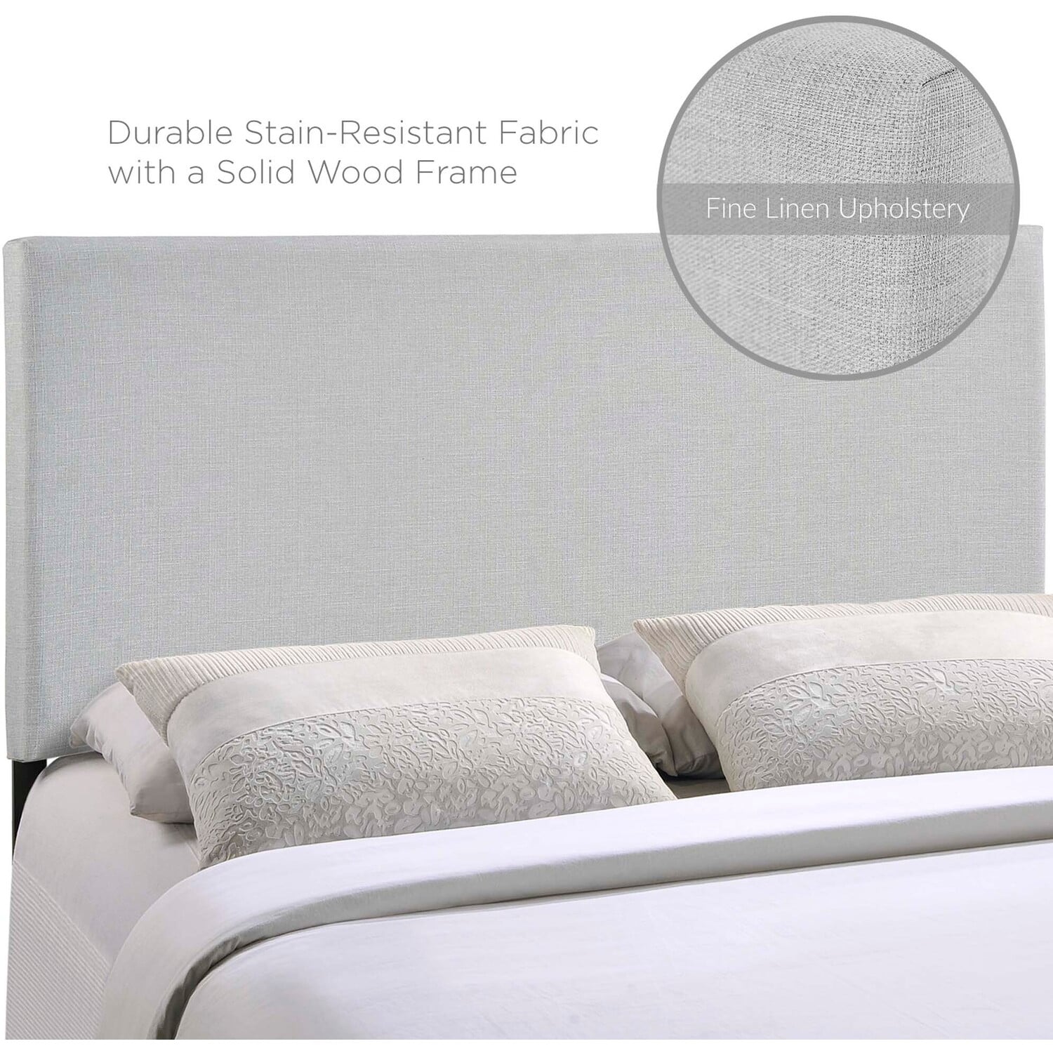Enhance your bed of choice with a spaciously designed Modway Region Linen Fabric Upholstered Queen Headboard. Region Queen Headboard captures the expansive moments of restful nights with an elegance that doesn’t detract from the simplicity of the design. Made of particleboard with solid wood poles and fine linen fabric upholstery, rejoice with a contemporary design that admirably complements your contemporary décor and most queen beds.Contemporary headboard