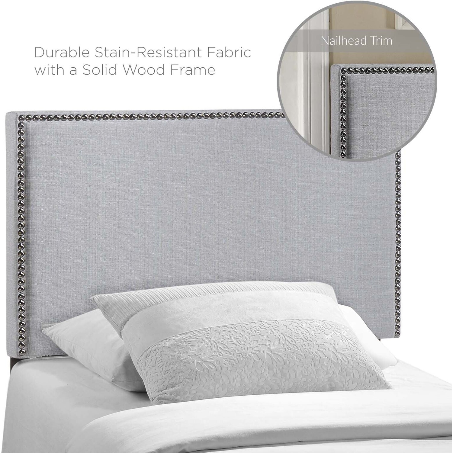 Enhance your bed of choice with a spaciously designed Modway Region Linen Fabric Upholstered Twin Headboard. Region Twin Headboard captures the expansive moments of restful nights with an elegance that doesn’t detract from the simplicity of the design. Made of particleboard with solid wood poles and fine linen fabric upholstery, and stylish nailhead trim, rejoice with a contemporary design that admirably complements your contemporary décor and most twin beds.Contemporary headboard