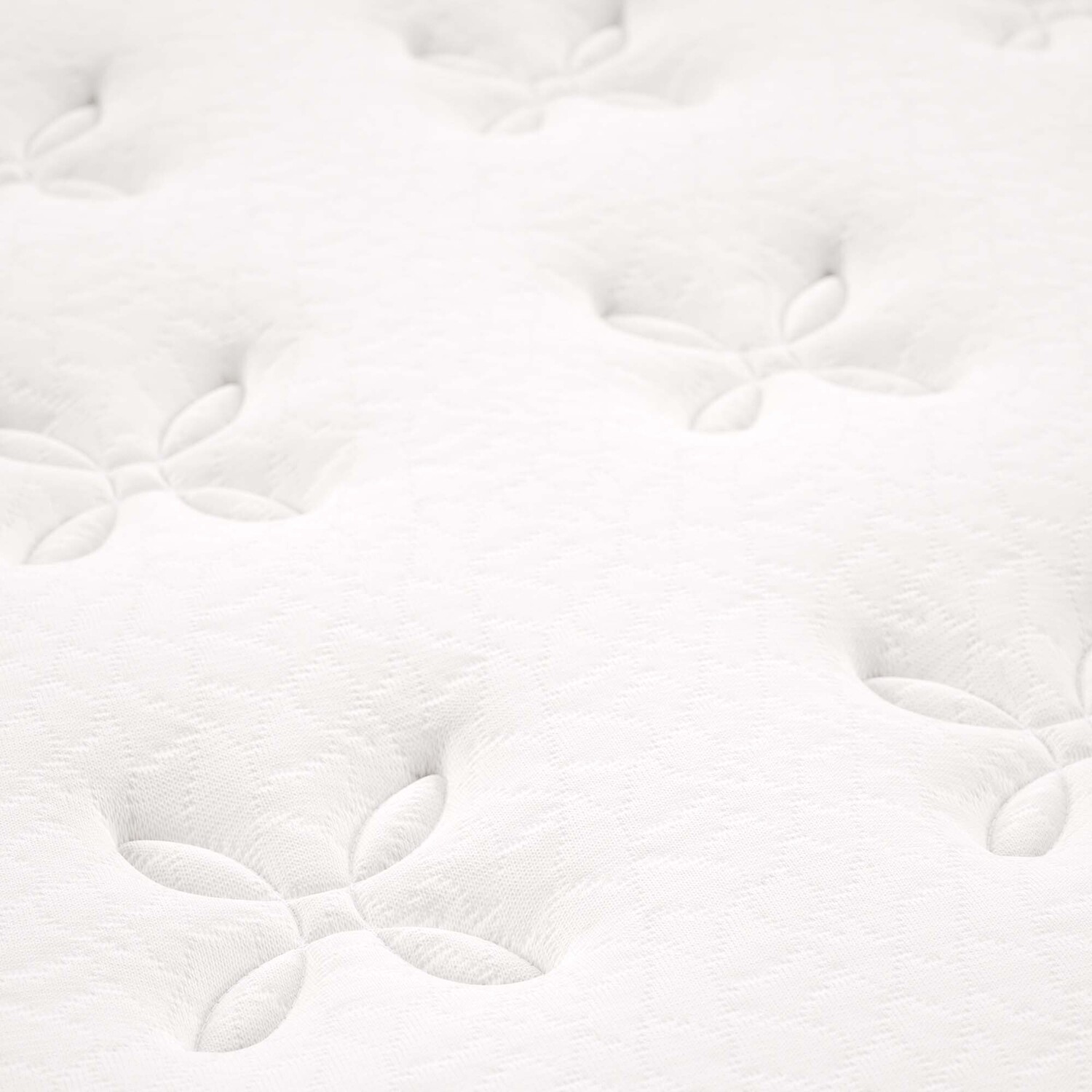 Enjoy rejuvenating sleep with the Jenna 10” Innerspring Mattress. Jenna features individually wrapped pocket coils that isolate motion between sleeping partners and provide pressure relief and spinal alignment. Responsive to the needs of the side, back, and stomach sleeping styles, Jenna’s 8.5” tall coils come padded underneath a layer of responsive foam and breathable foam for maximum comfort. Complete with a quilted pillow-top cover, this hybrid mattress relieves pressure on hips, back, and shoulders, while delivering cooling airflow night after night. Jenna is a firm innerspring mattress that avoids the sag and sink of foam and air mattresses, and ships compressed and rolled into a box for easy delivery.Quilted Pillow-Top Cover