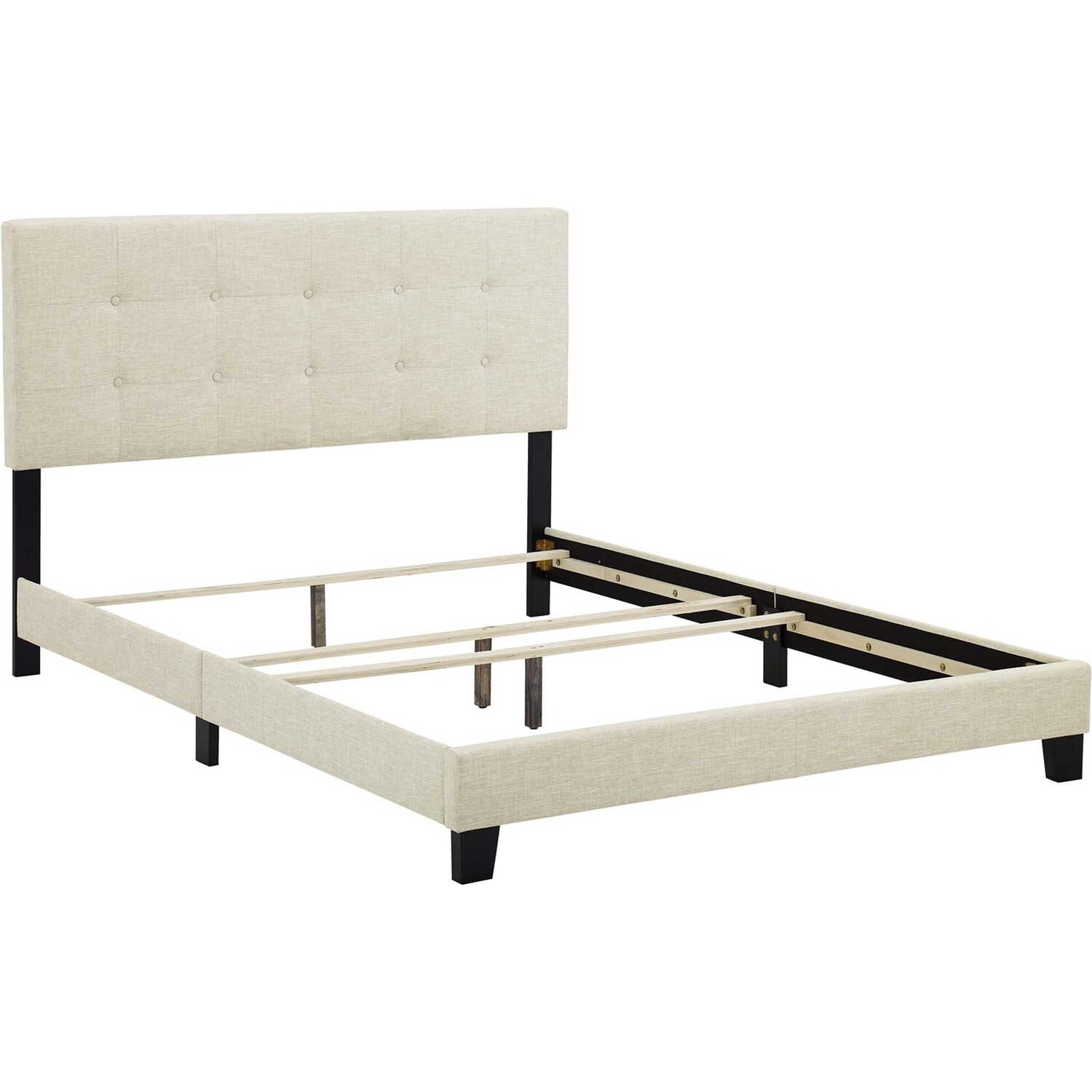 Inspire sweet dreams with a cozy king bed. Designed with chic elegance and contemporary style, Amira comes with a soft polyester fabric upholstered base, timeless button-tufted headboard, and wood bed frame and legs, with non-marking foot caps. Complete with a reinforced center beam for maximum stability, Amira accommodates memory foam, spring, latex, and hybrid mattresses. A sleek and sophisticated centerpiece to the master bedroom or guest suite, this modern bed effortlessly transforms your bedroom decor with its luxe look. Box spring required (not included). Bed Weight Capacity: 800 lbs.Platform Bed Frame With Headboard