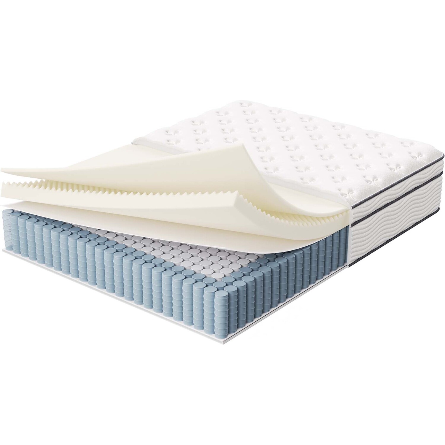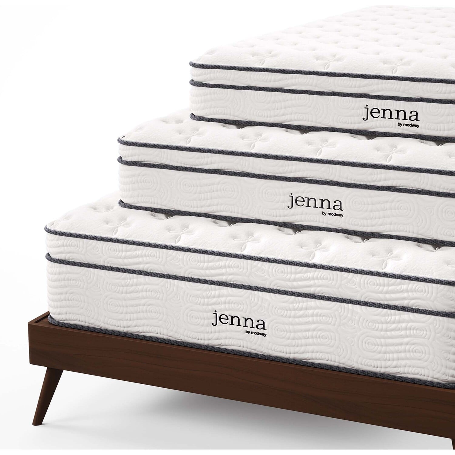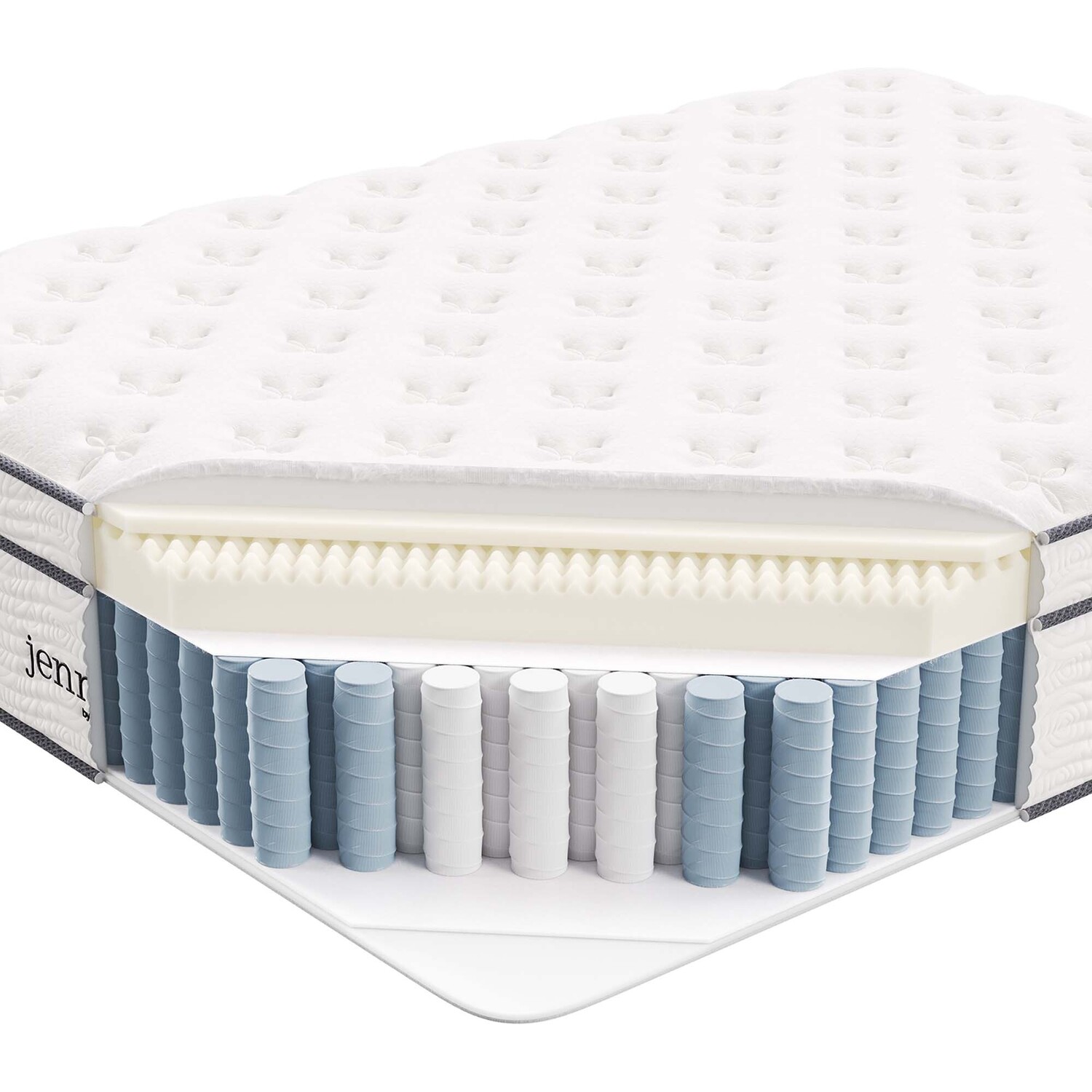 Enjoy rejuvenating sleep with the Jenna 14” Innerspring Mattress. Jenna features individually wrapped pocket coils that isolate motion between sleeping partners and provide pressure relief and spinal alignment. Responsive to the needs of the side, back, and stomach sleeping styles, Jenna’s 9.8” tall coils come padded underneath a layer of responsive foam and breathable foam for maximum comfort. Complete with a quilted pillow-top cover, this hybrid mattress relieves pressure on hips, back, and shoulders, while delivering cooling airflow night after night. Jenna is a firm innerspring mattress that avoids the sag and sink of foam and air mattresses, and ships compressed and rolled into a box for easy delivery.Quilted Pillow-Top Cover