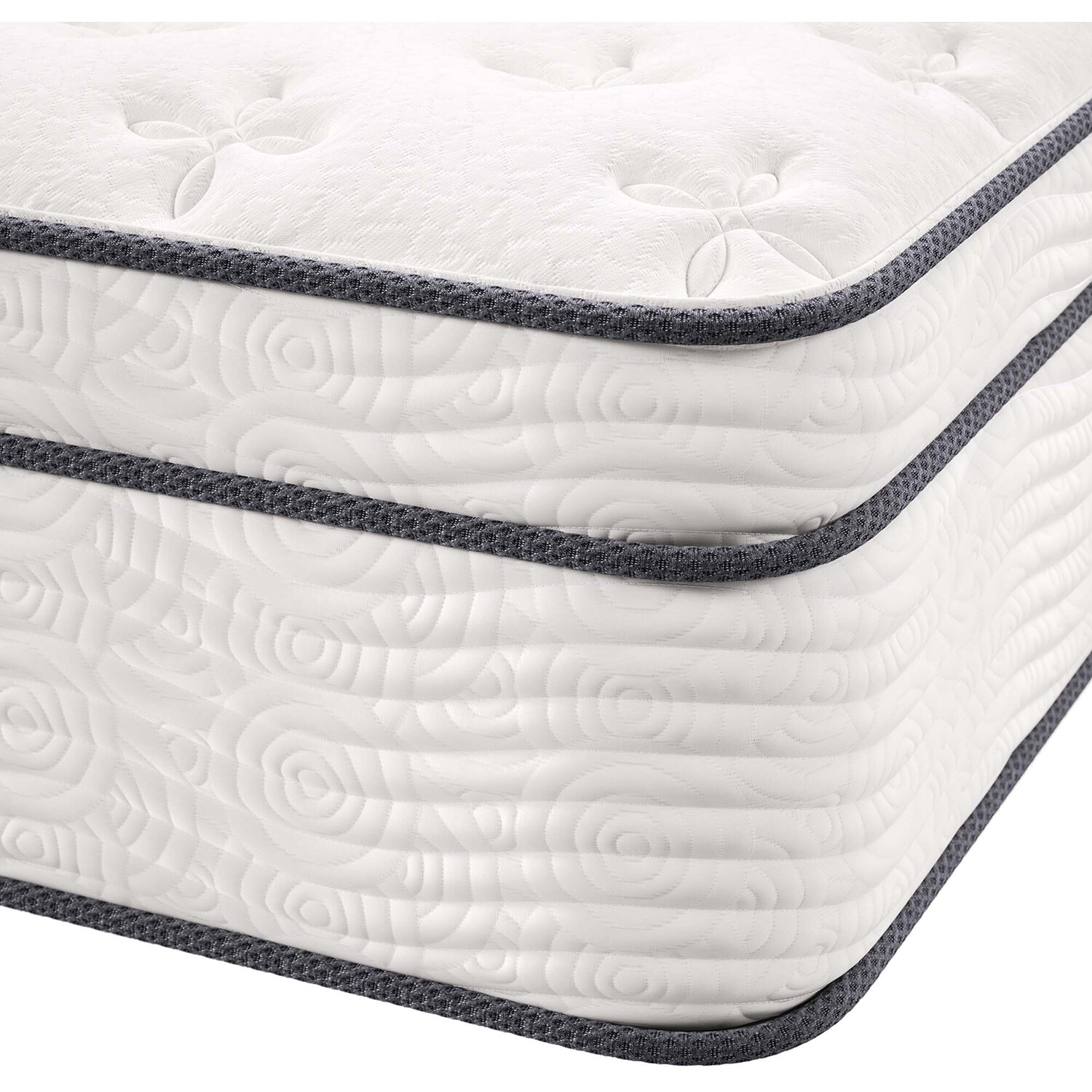 Enjoy rejuvenating sleep with the Jenna 14” Innerspring Mattress. Jenna features individually wrapped pocket coils that isolate motion between sleeping partners and provide pressure relief and spinal alignment. Responsive to the needs of the side, back, and stomach sleeping styles, Jenna’s 9.8” tall coils come padded underneath a layer of responsive foam and breathable foam for maximum comfort. Complete with a quilted pillow-top cover, this hybrid mattress relieves pressure on hips, back, and shoulders, while delivering cooling airflow night after night. Jenna is a firm innerspring mattress that avoids the sag and sink of foam and air mattresses, and ships compressed and rolled into a box for easy delivery.Quilted Pillow-Top Cover