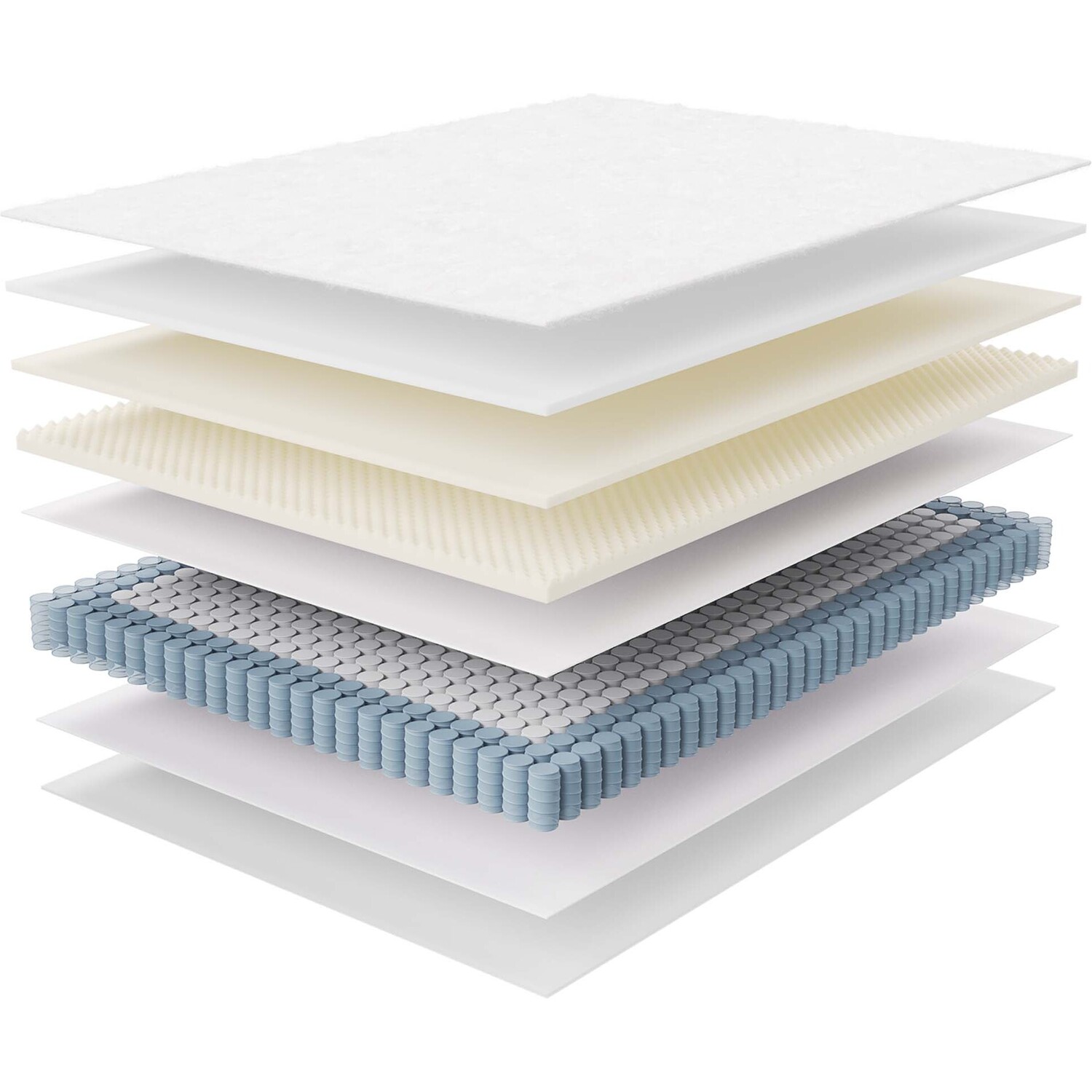 Enjoy rejuvenating sleep with the Jenna 8” Innerspring Mattress. Jenna features individually wrapped pocket coils that isolate motion between sleeping partners and provide pressure relief and spinal alignment. Responsive to the needs of the side, back, and stomach sleeping styles, Jenna’s 7” tall coils come padded underneath a layer of responsive foam and breathable foam for maximum comfort. Complete with a quilted pillow-top cover, this hybrid mattress relieves pressure on hips, back, and shoulders, while delivering cooling airflow night after night. Jenna is a firm innerspring mattress that avoids the sag and sink of foam and air mattresses, and ships compressed and rolled into a box for easy delivery.Quilted Pillow-Top Cover