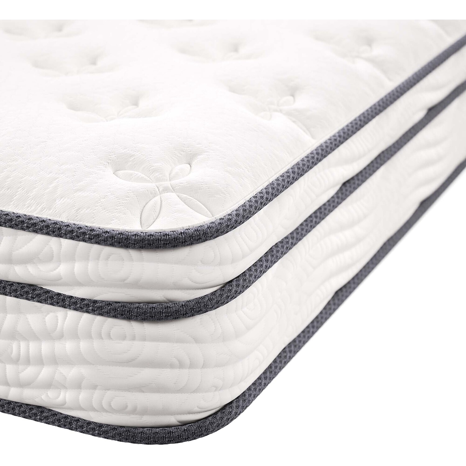 Enjoy rejuvenating sleep with the Jenna 8” Innerspring Mattress. Jenna features individually wrapped pocket coils that isolate motion between sleeping partners and provide pressure relief and spinal alignment. Responsive to the needs of the side, back, and stomach sleeping styles, Jenna’s 7” tall coils come padded underneath a layer of responsive foam and breathable foam for maximum comfort. Complete with a quilted pillow-top cover, this hybrid mattress relieves pressure on hips, back, and shoulders, while delivering cooling airflow night after night. Jenna is a firm innerspring mattress that avoids the sag and sink of foam and air mattresses, and ships compressed and rolled into a box for easy delivery.Quilted Pillow-Top Cover