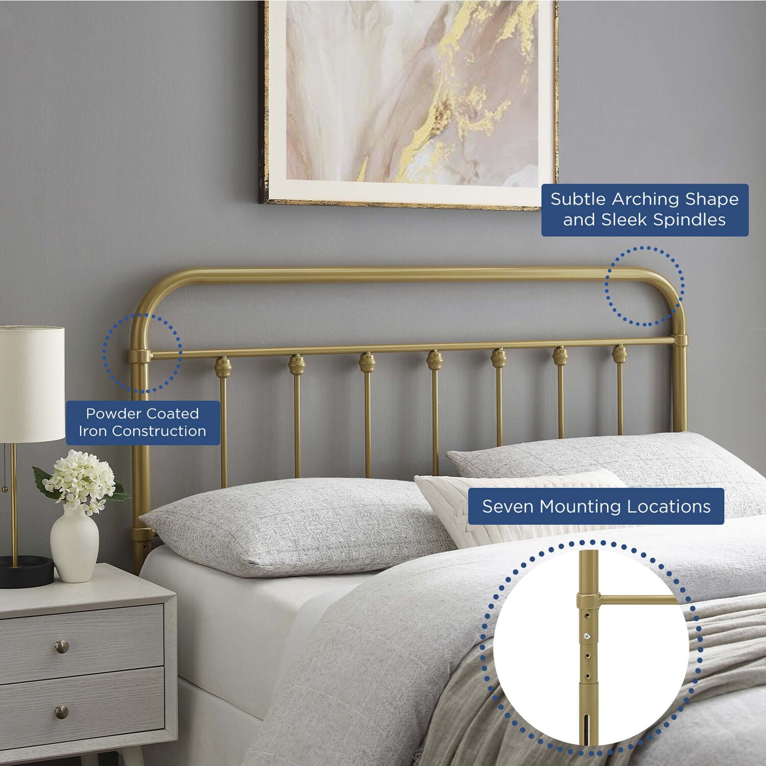 Bring in an energizing focal point to your kid's bedroom or guest room with the Sage Metal Twin Headboard. Inspired by the charm of modern farmhouse style, this metal headboard exudes vintage appeal and rustic grace. Create a neutral backdrop for bedding and sham styles of all types with Sage. Crafted with powder-coated iron for a sturdy, lasting construction, this height-adjustable headboard features seven mounting positions and fits most twin size bed frames. Assembly Required.Metal Twin Headboard