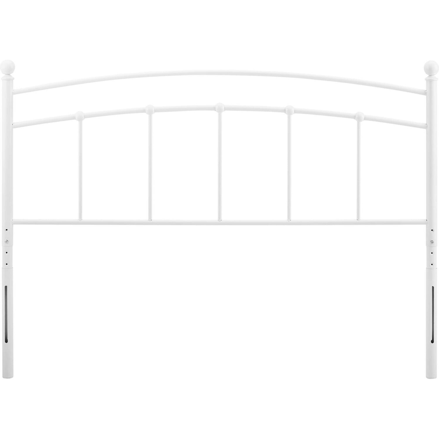 Introduce charming modern farmhouse style to a kid's bedroom, college dorm, or guest room with the Abigail Metal Twin Headboard. Bringing vintage modern appeal and rustic style to a space, this metal headboard creates a neutral backdrop for a variety of bedding choices. Featuring an arched shape, spindle detail, and finials, this twin size headboard is crafted with durable powder-coated iron for a lasting construction. This height adjustable headboard is complete with seven different mounting positions allowing it to fit most twin bed frames. Assembly Required.Metal Twin Headboard