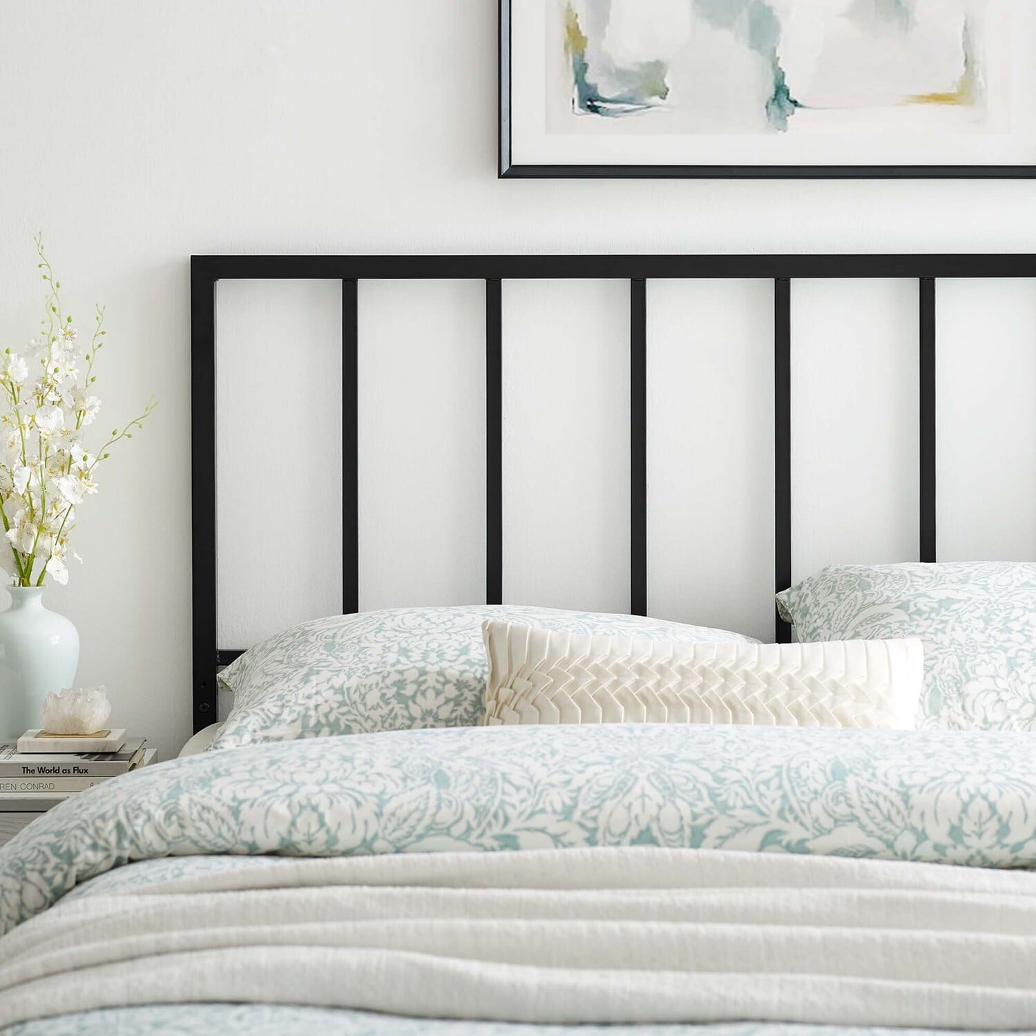 Elevate the look and feel of a teenager's bedroom or guest bedroom with the Tatum Metal Full Headboard. Featuring a streamlined silhouette with squared lines and spindle detail, this full size headboard is a timeless design with a contemporary feel. Durable iron metal with a powder coated finish makes up the frame of this headboard for a sturdy construction that lasts. Create an aesthetic backdrop for all kinds of bedding styles with this modern spindle headboard suitable for most full bed frames. Assembly required.Metal Full Headboard