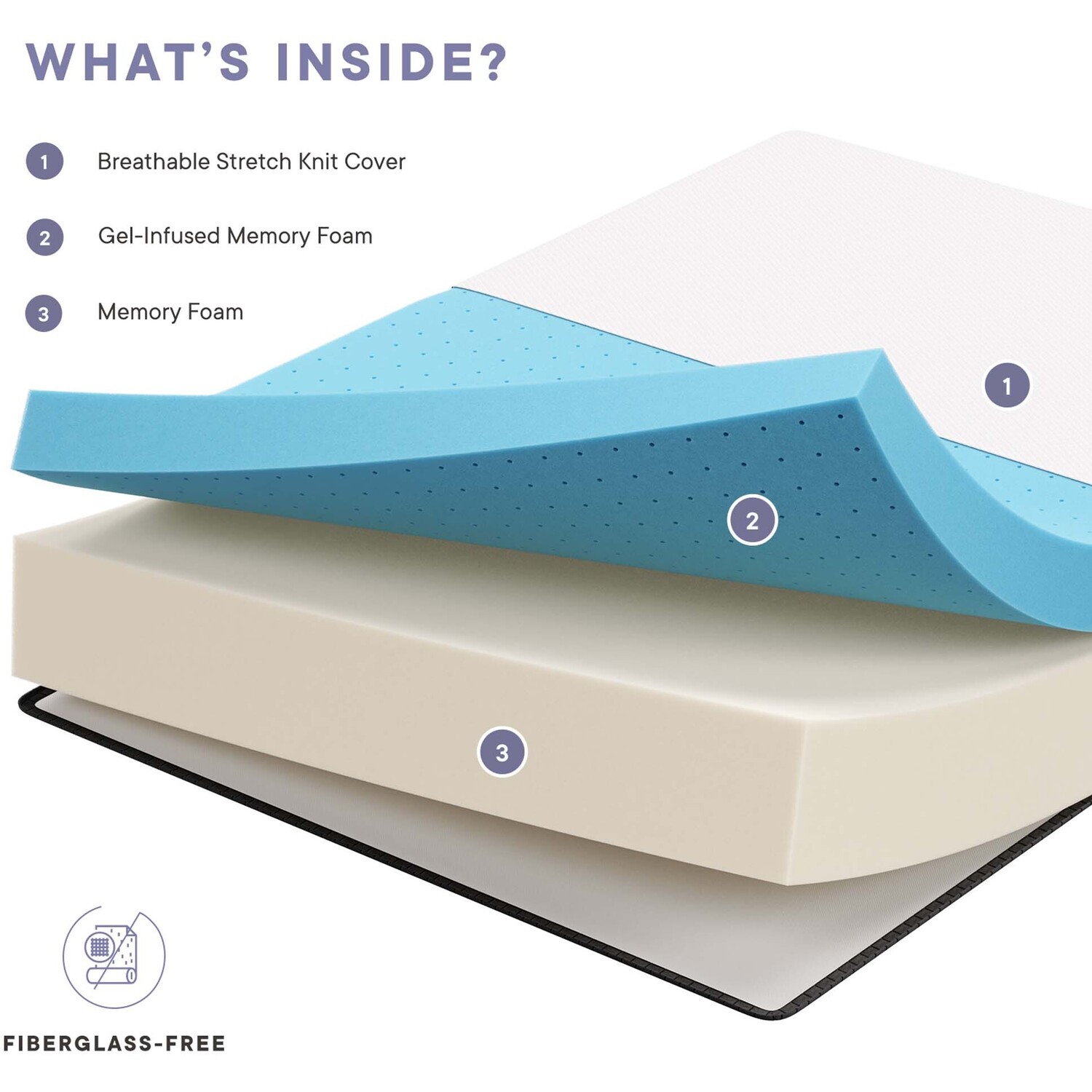 Indulge in deeper, more restorative sleep with the Aveline 14” Twin Mattress. Topped with breathable gel-infused memory foam to keep your body climate steady and cool, this mattress dissipates body heat with abundant ventilation while quickly conforming to your weight and position for ultimate comfort. Sleep peacefully with an open-cell memory foam mattress that relieves pressure points and delivers welcome relief from the aches and pains of traditional mattresses. Aveline is CertiPUR-US® certified by accredited independent testing laboratories, so you can be confident that the memory foam is made without fiberglass, formaldehyde, ozone depleters, mercury, and other heavy metals including PBDEs, TDCPP or TCEP ("Tris") flame retardants, and is low on VOC. The mattress ships directly to your doorstep. It takes 2 to 4 hours for the mattress to expand most of the way and a day to expand fully. Includes a removable stretch knit diamond patterned cover. Box spring or foundation is optional. Slatted bases should be less than 3" apart.5" Cooling Gel-Infused Memory Foam