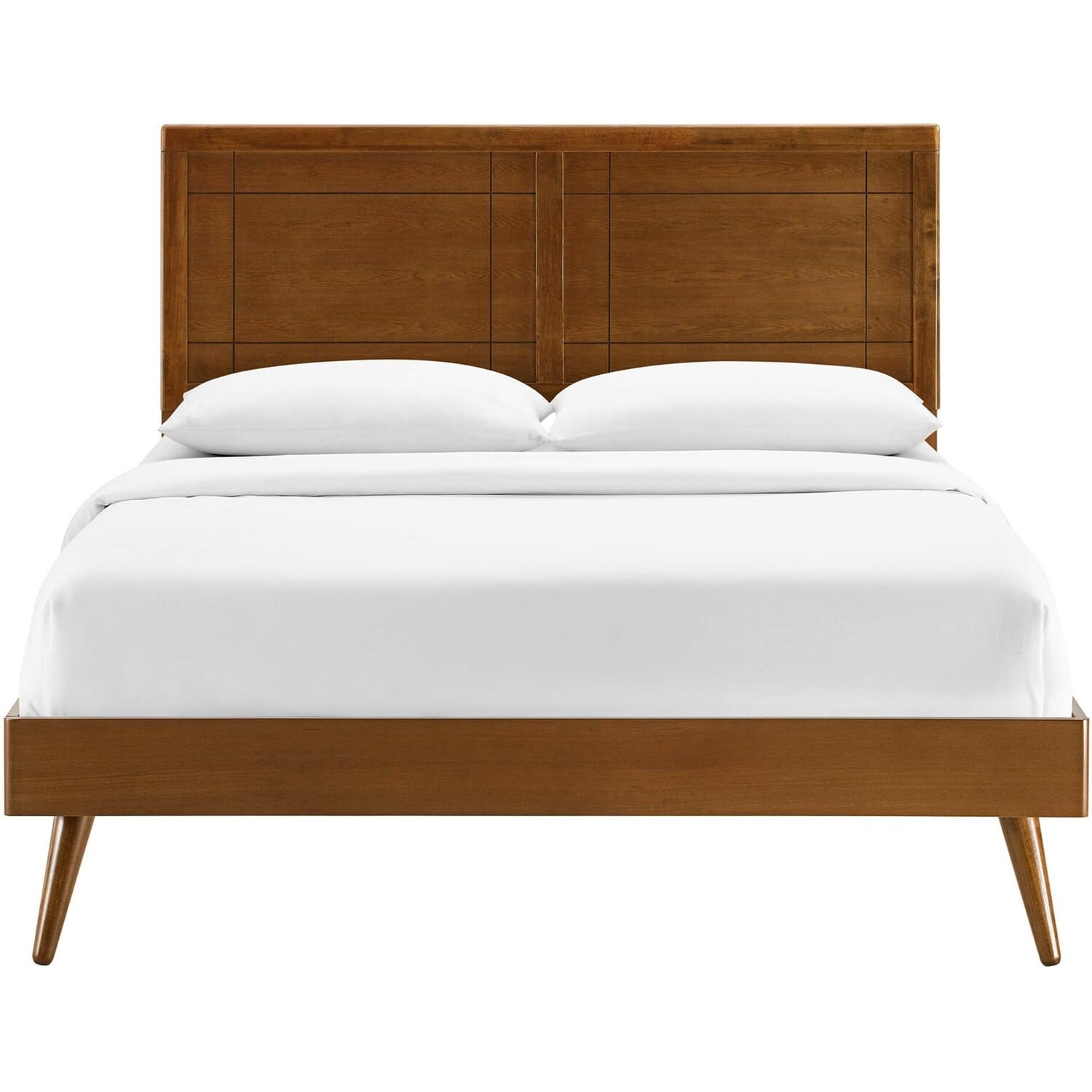 Incorporate modern style and comfortable sleep in your master bedroom or guest room with the retro detail and organic aesthetics of the Marlee Wood Twin Platform Bed. Inspired by mid-century design, the twin headboard of this wood bed features a beautiful window pane design that offers a traditional look. This platform bed frame is a sturdy addition to the bedroom with a durable wood, MDF, and veneer construction and splayed rubberwood legs. Eliminating the need for a box spring, this twin bed is complete with a wood slat support system, reinforced center beam, and supporting legs that make it a lasting mattress foundation for memory foam, latex, innerspring, and hybrid mattresses. Assembly required. Twin Bed Frame Weight Capacity: 601 lbs.Twin Platform Bed Frame