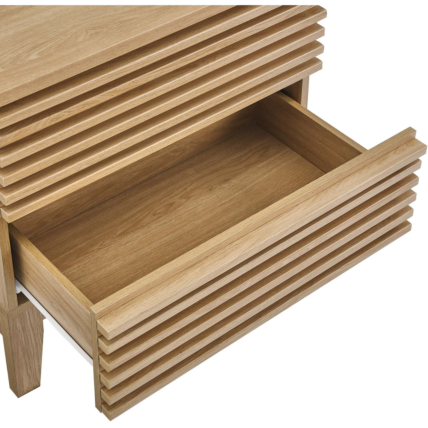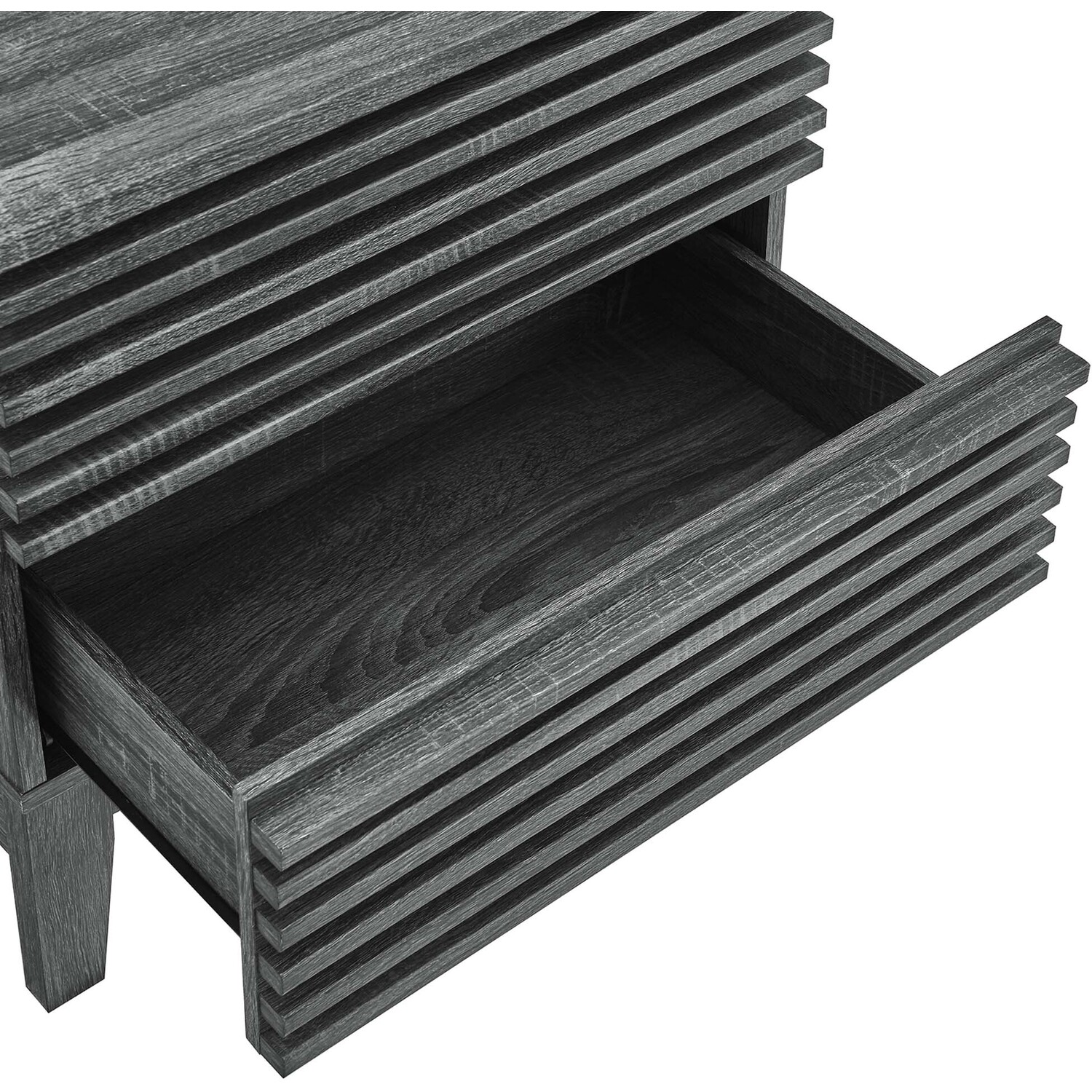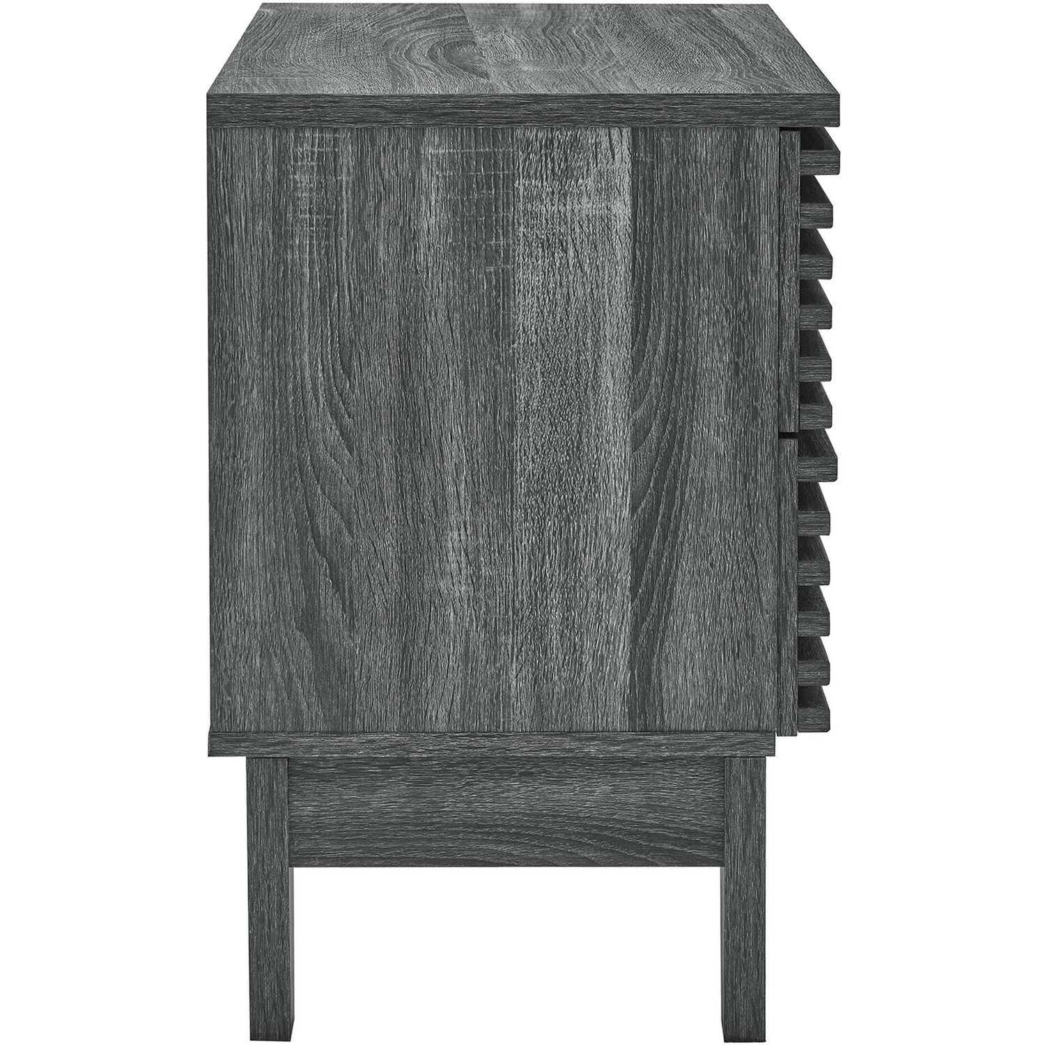 Tap into mid-century aesthetics with the Render Nightstand. With dual usage as an end table in the living room, this nightstand features a durable particleboard frame with a smooth wood grain laminate, four tapered wood legs, and full-extension glide drawers. Boasting a mid-century modern style this accent table features a solid construction with a pleasing look and practical functionality that's perfect for the bedroom. Two full-extension drawers offer ample storage space to keep your bedside essentials neat and organized.Mid-Century Bedside Table